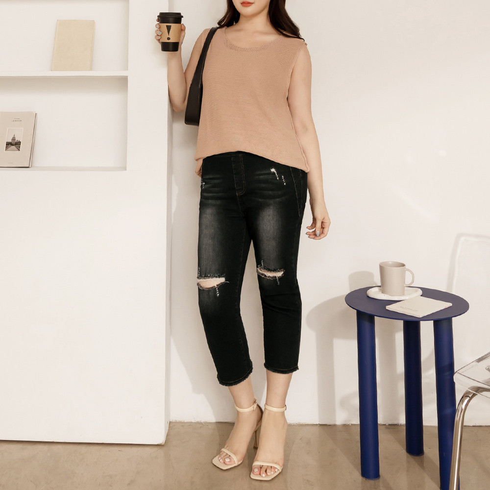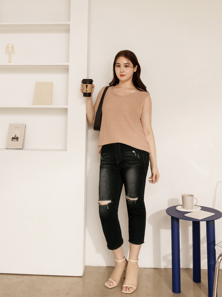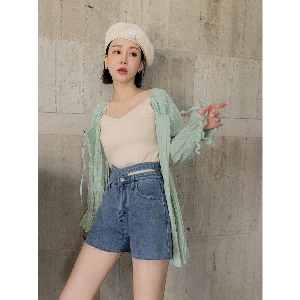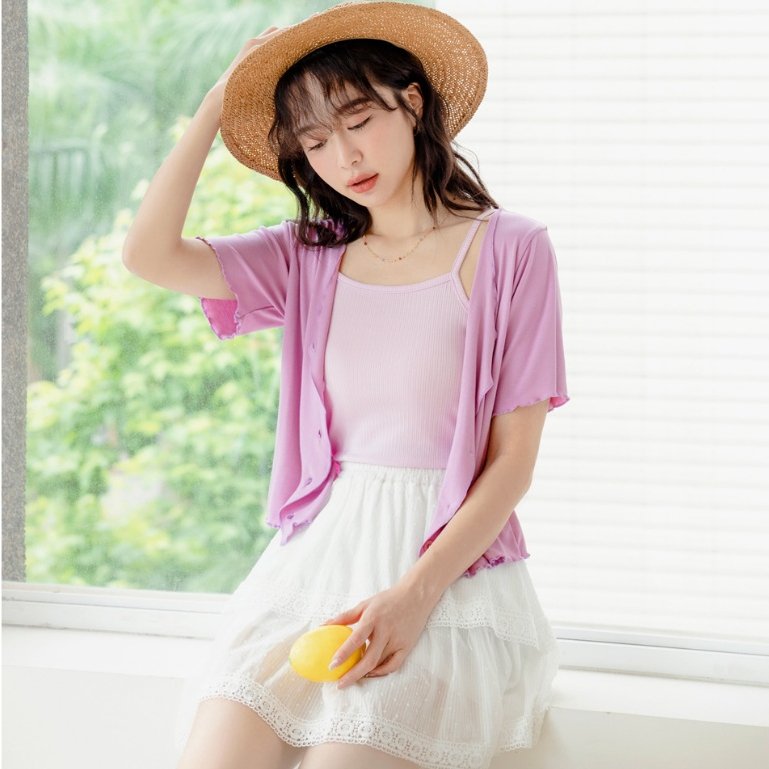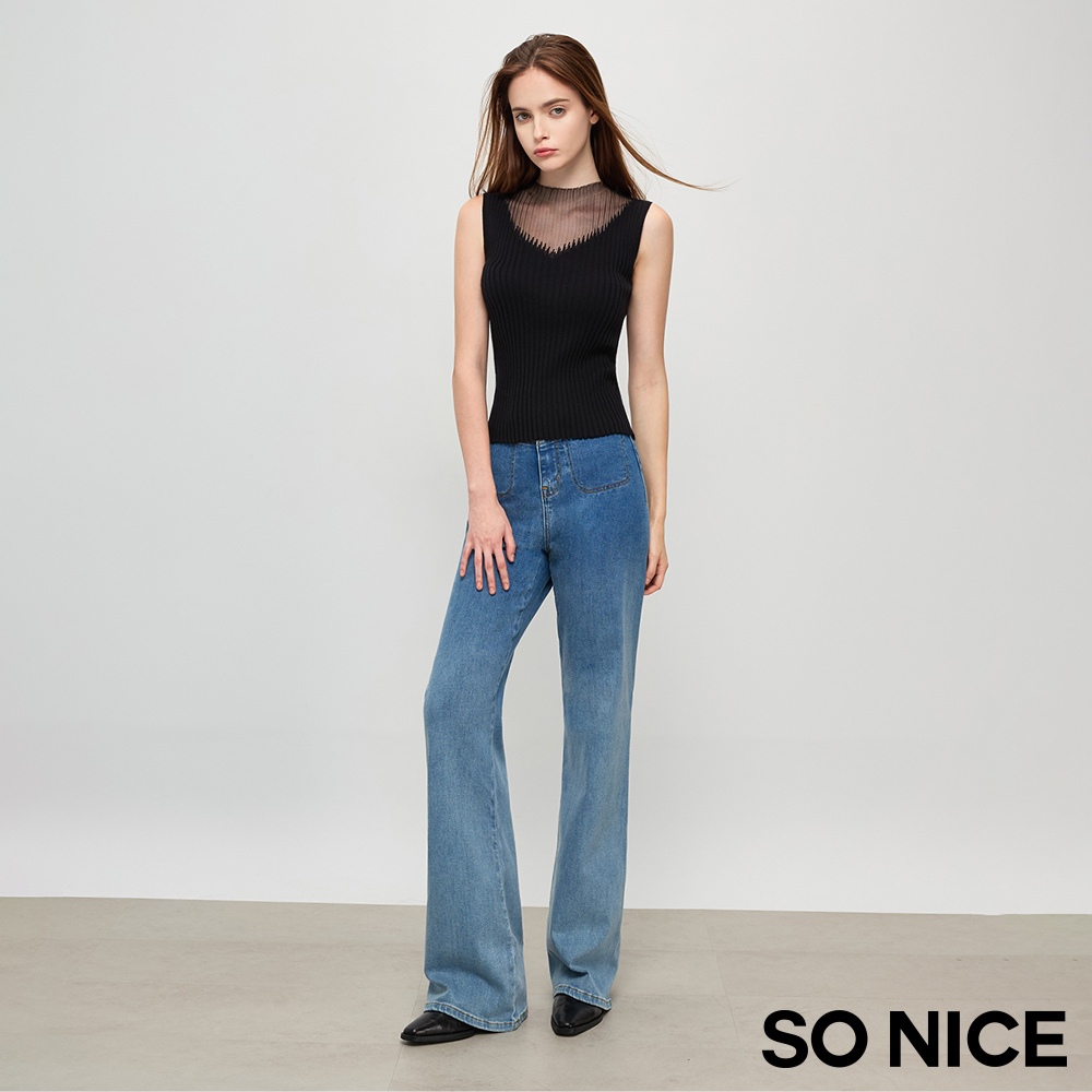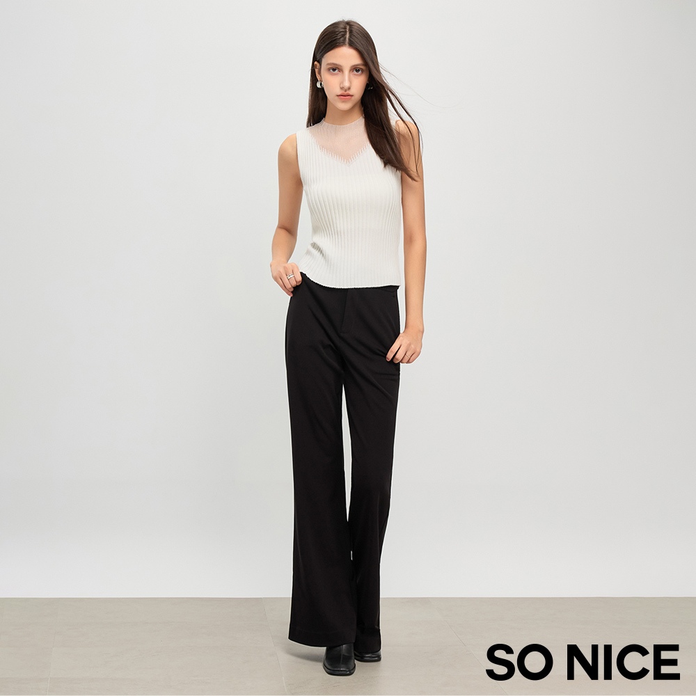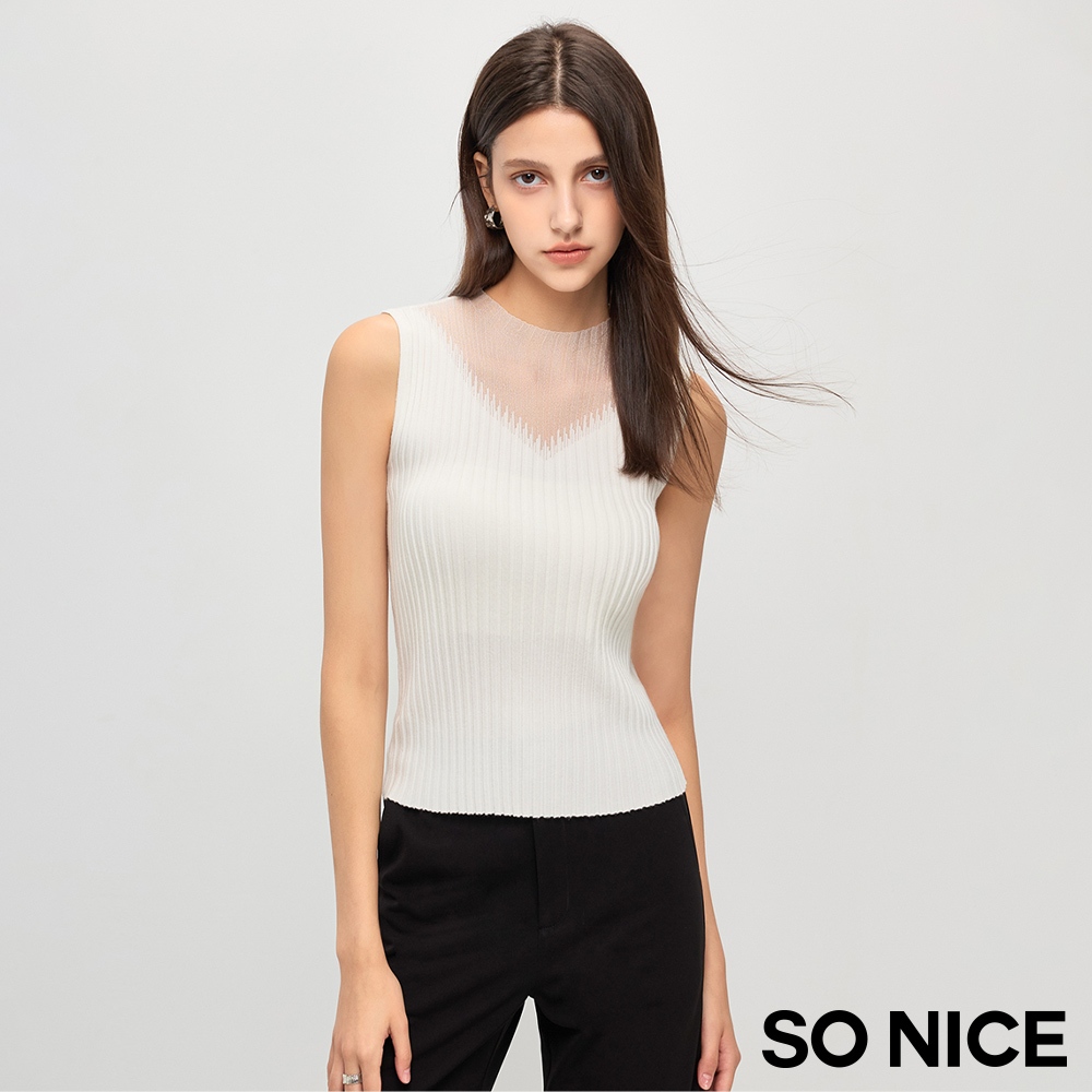 SO NICE 火山領透視網紗拼接柔軟針織背心|白/黑/淺紫|都會時尚女裝 【93530015】