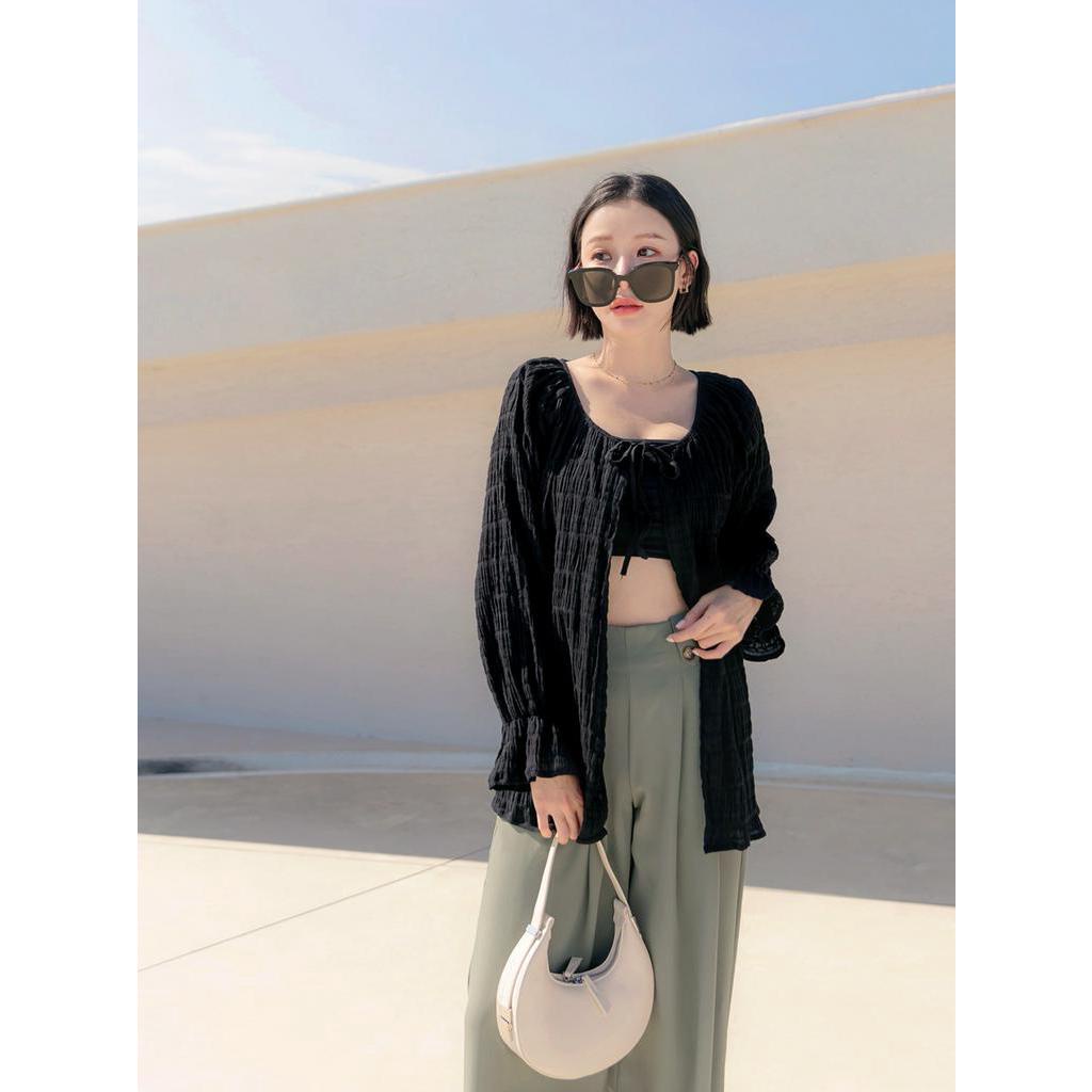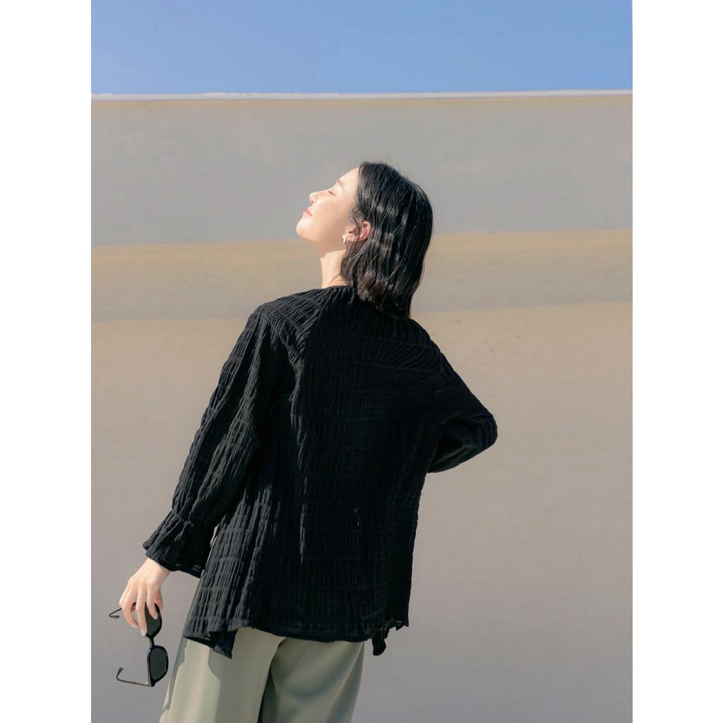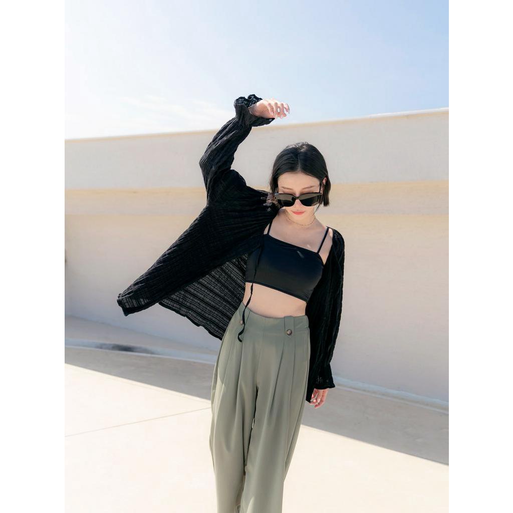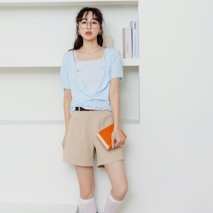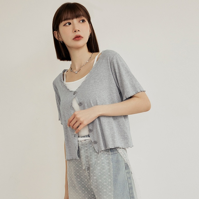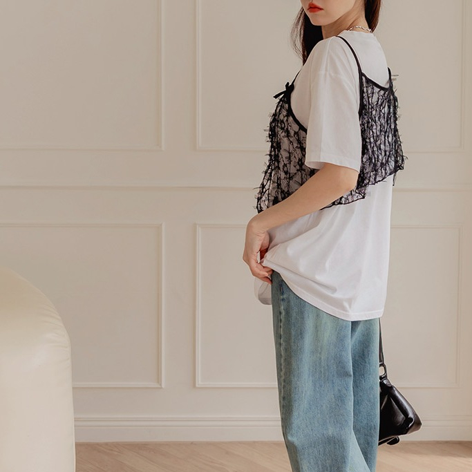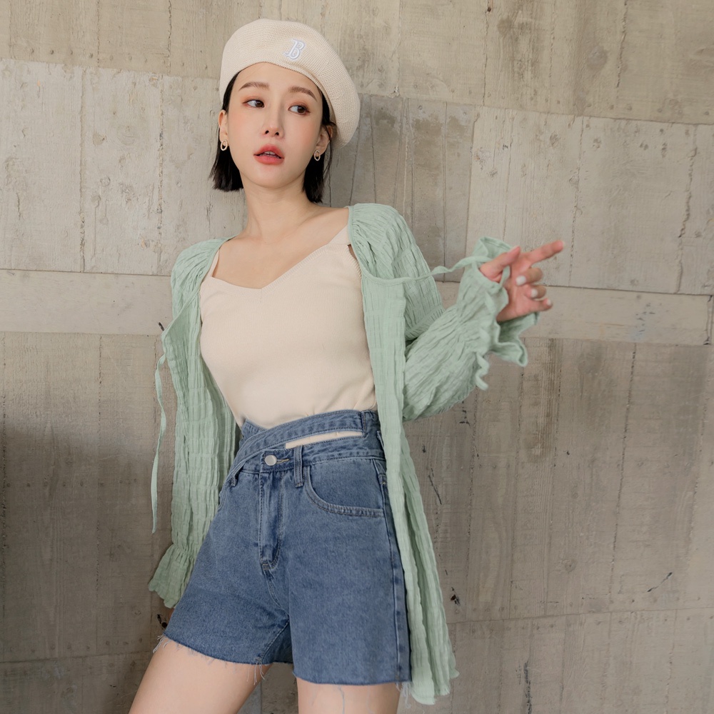 SO NICE 火山領透視網紗拼接柔軟針織背心|白/黑/淺紫|都會時尚女裝 【93530015】