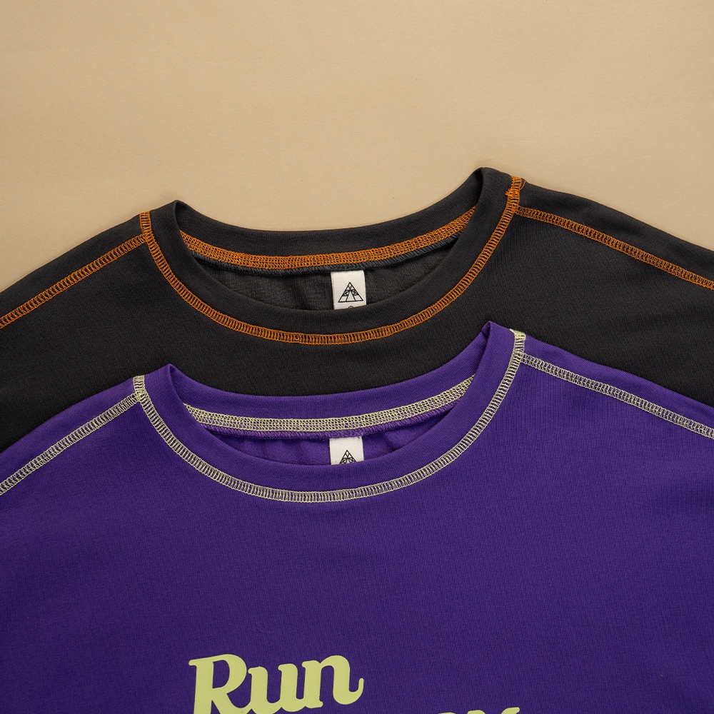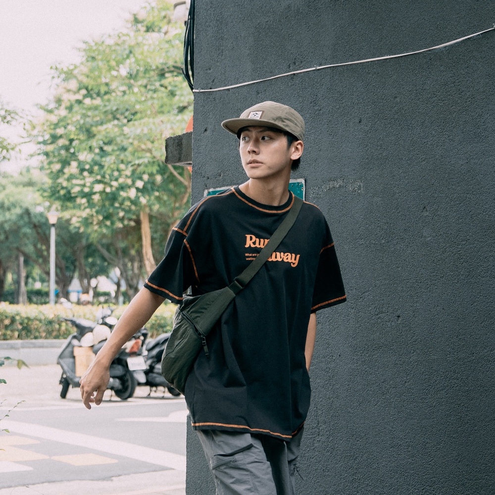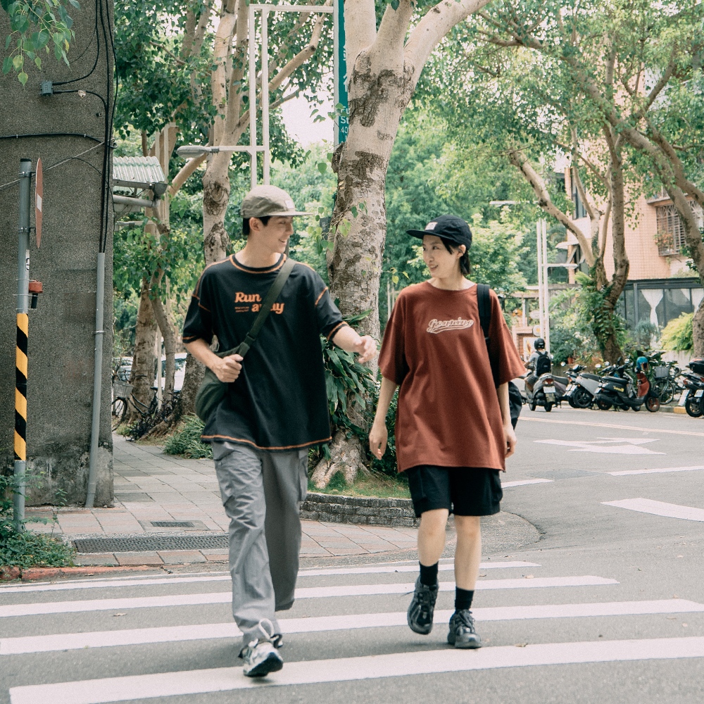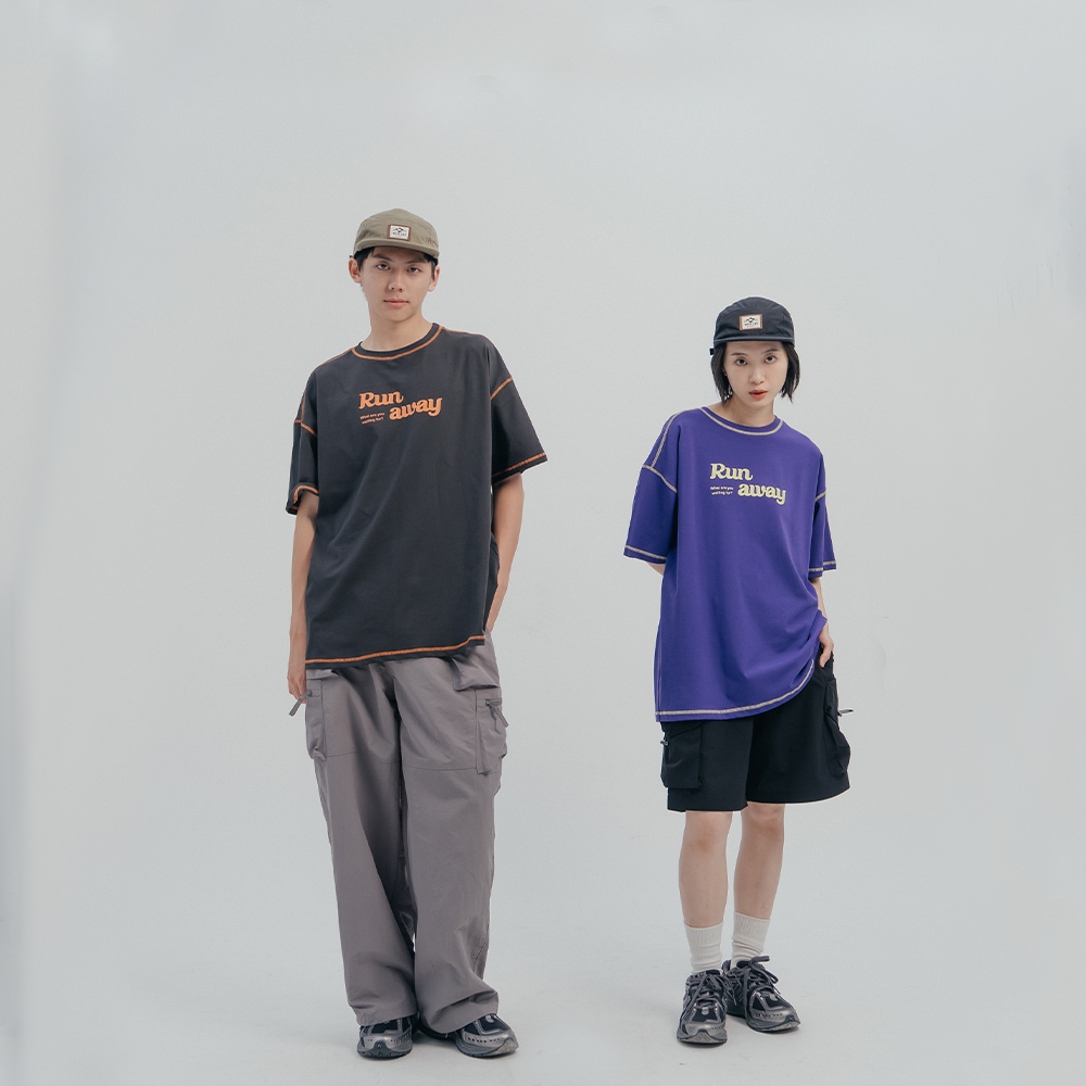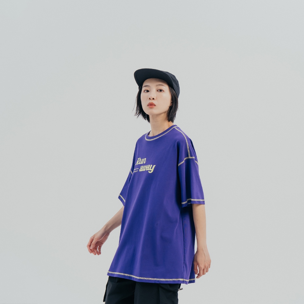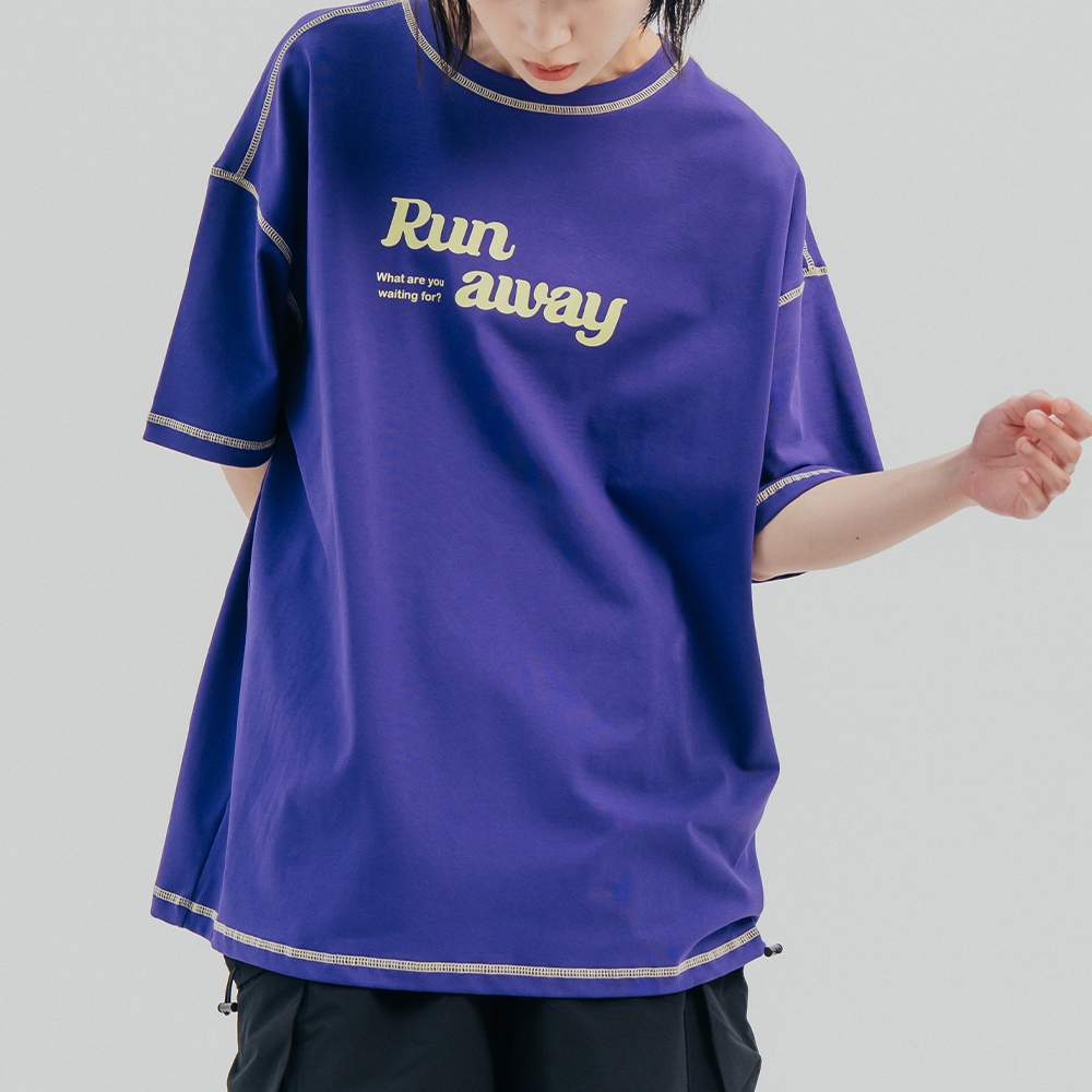 QUEENSHOP_ S 情侶裝 戶外 短袖 Run away撞色造型寬版上衣 兩色售 1/2現+預 【01190223灰1|灰2|紫1|紫2T-shirtsQUEENSHOP