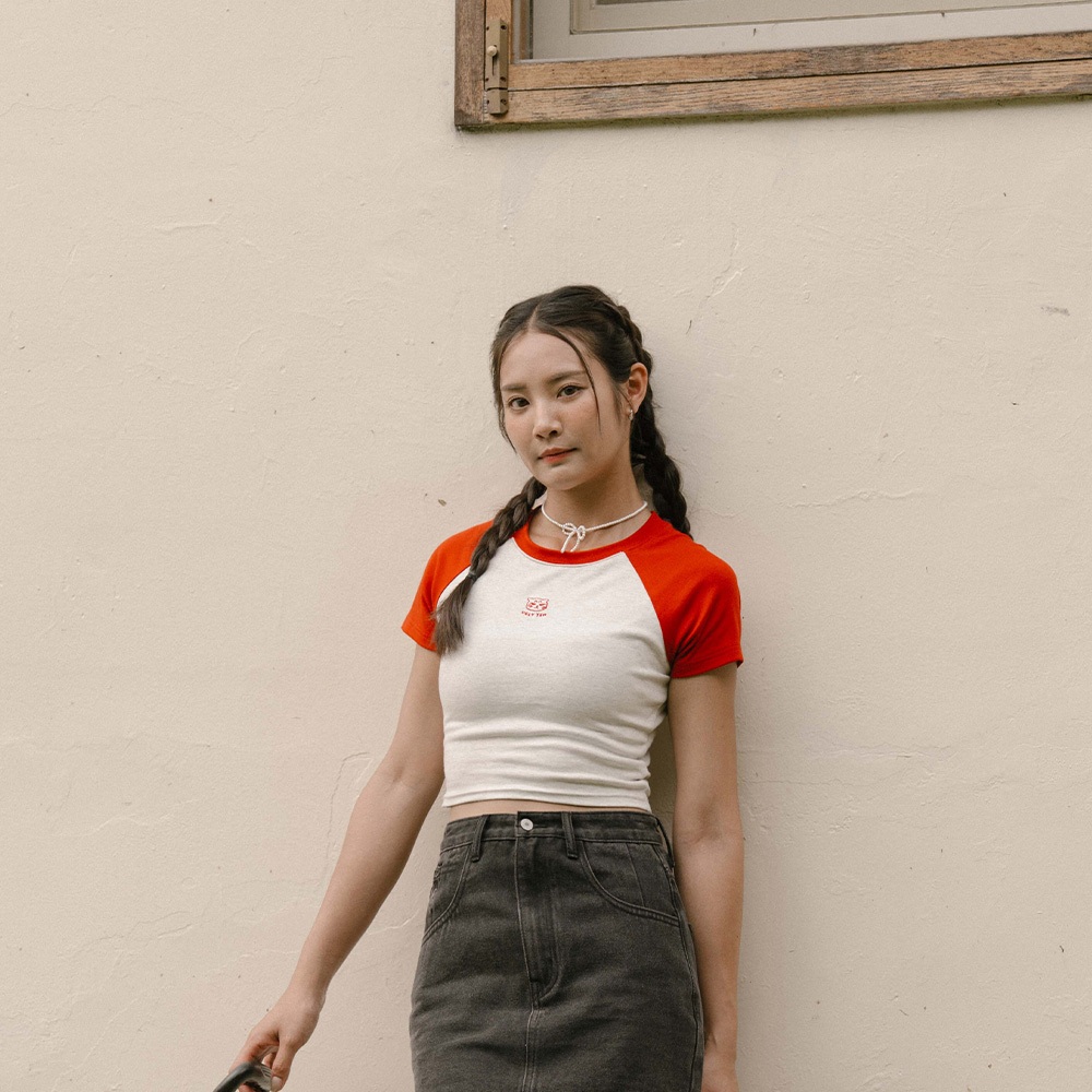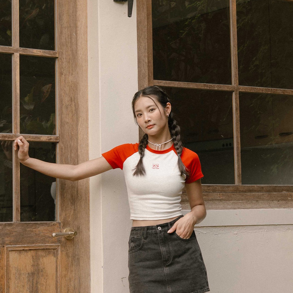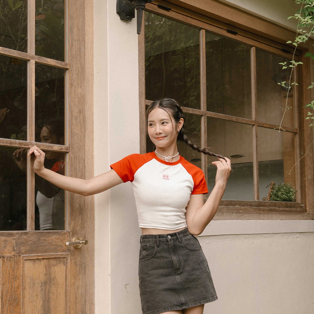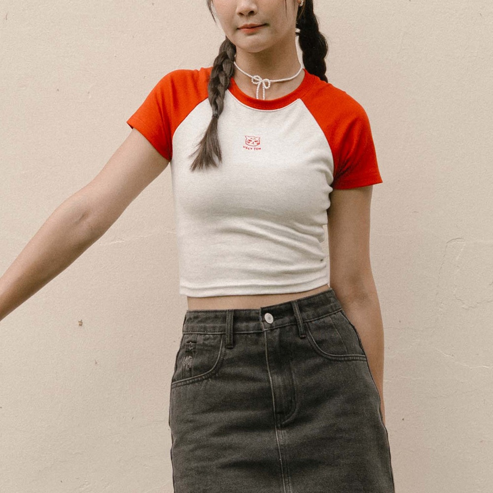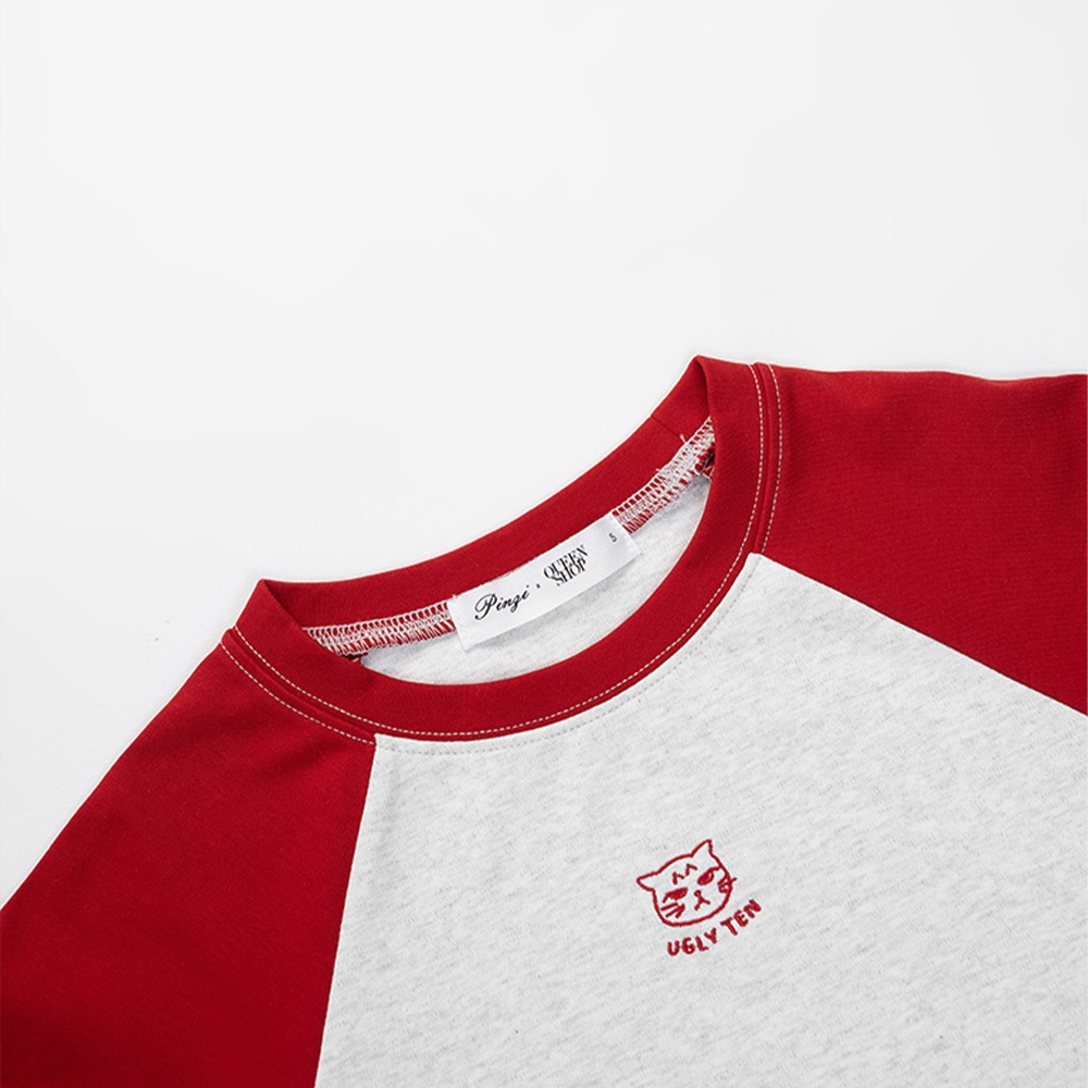 QUEENSHOP_ S 品子聯名 刺繡小圖撞色短版上衣-紅S/M/L 現+預 【01099148】紅S|紅M|紅LT-shirtsQUEENSHOP