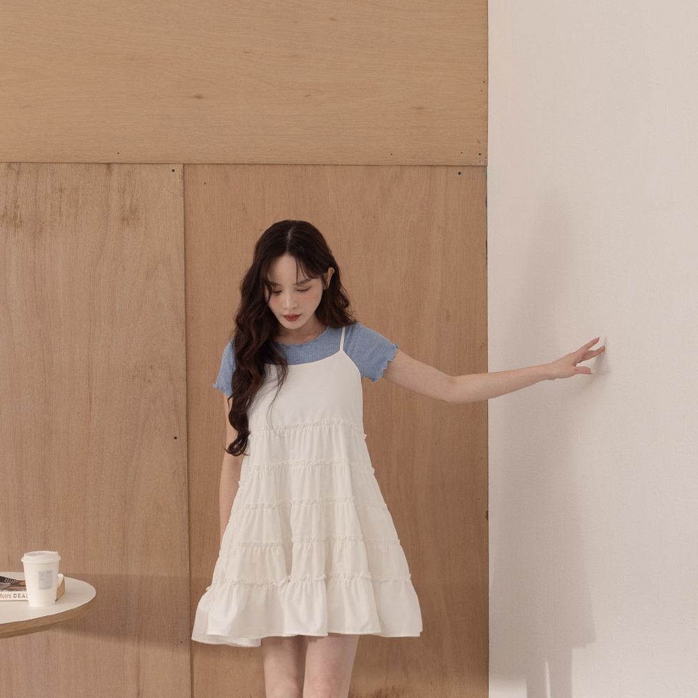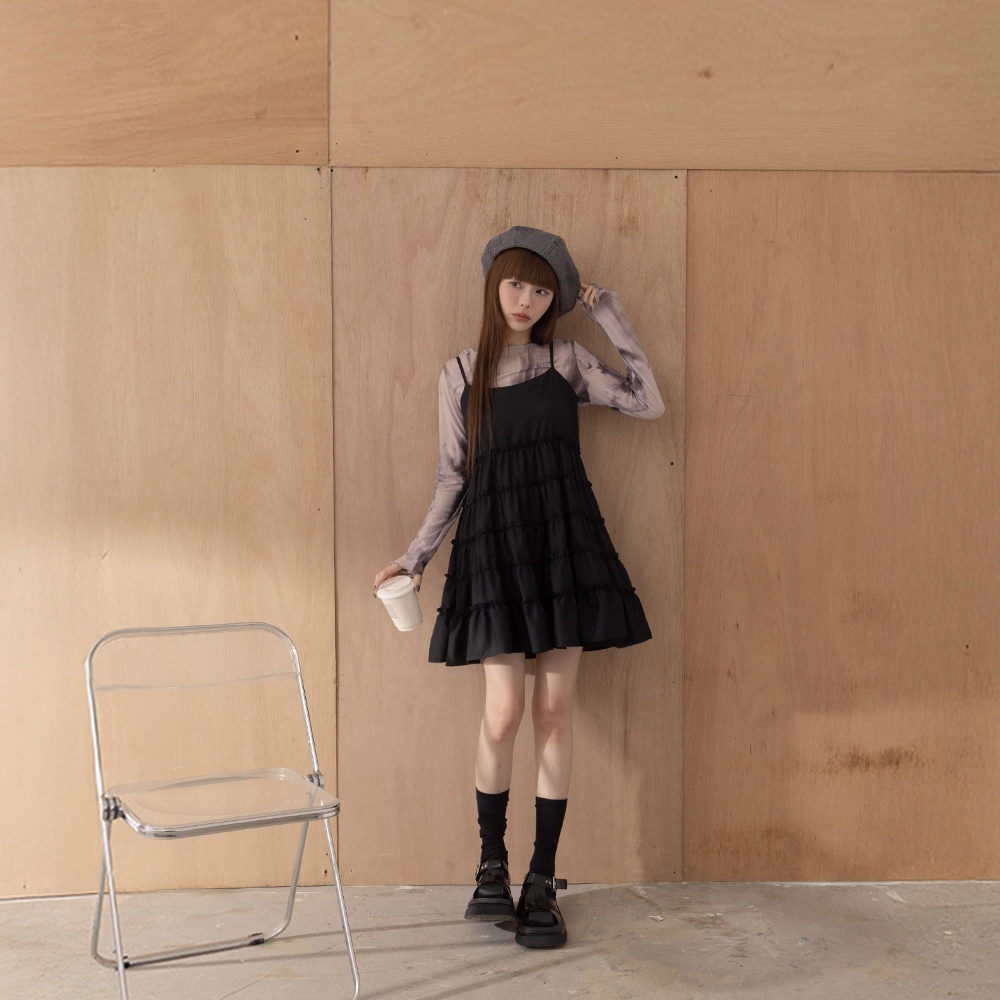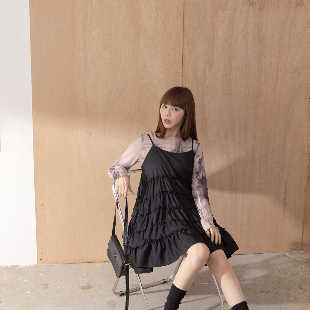 QUEENSHOP_ S 女裝 多層蛋糕剪接細肩短洋裝 兩色售 現+預 【01087034】黑|米白QUEENSHOP