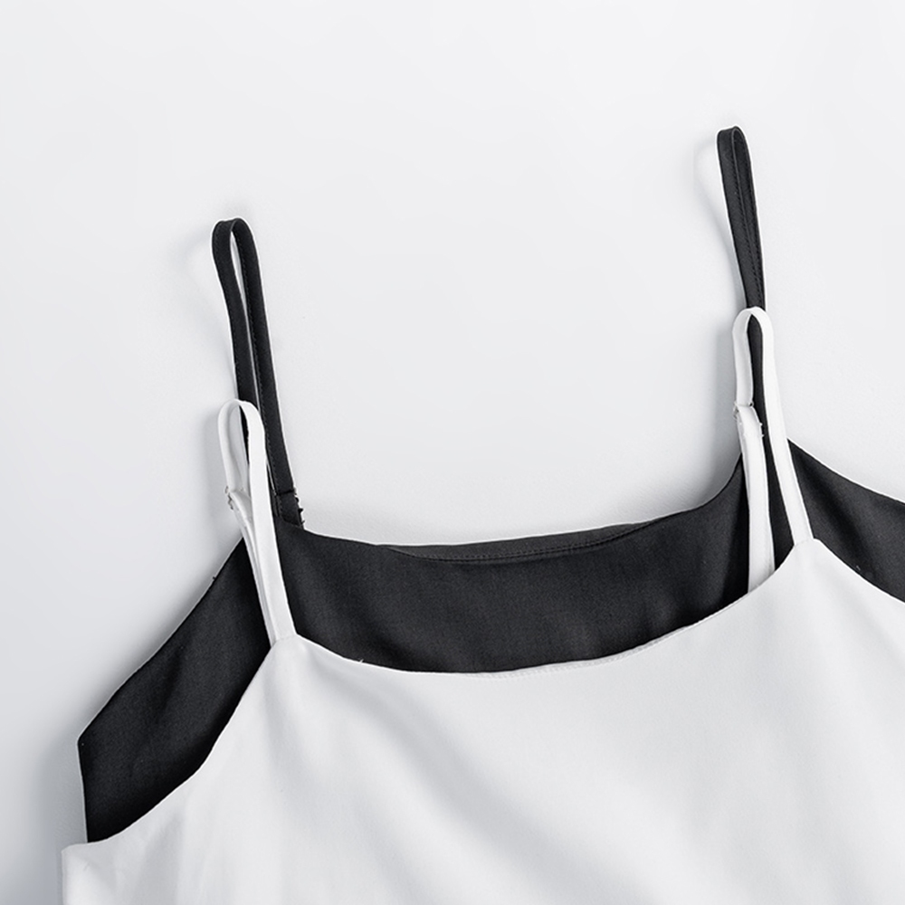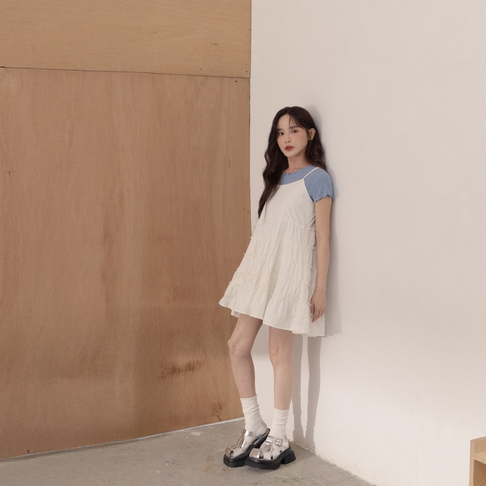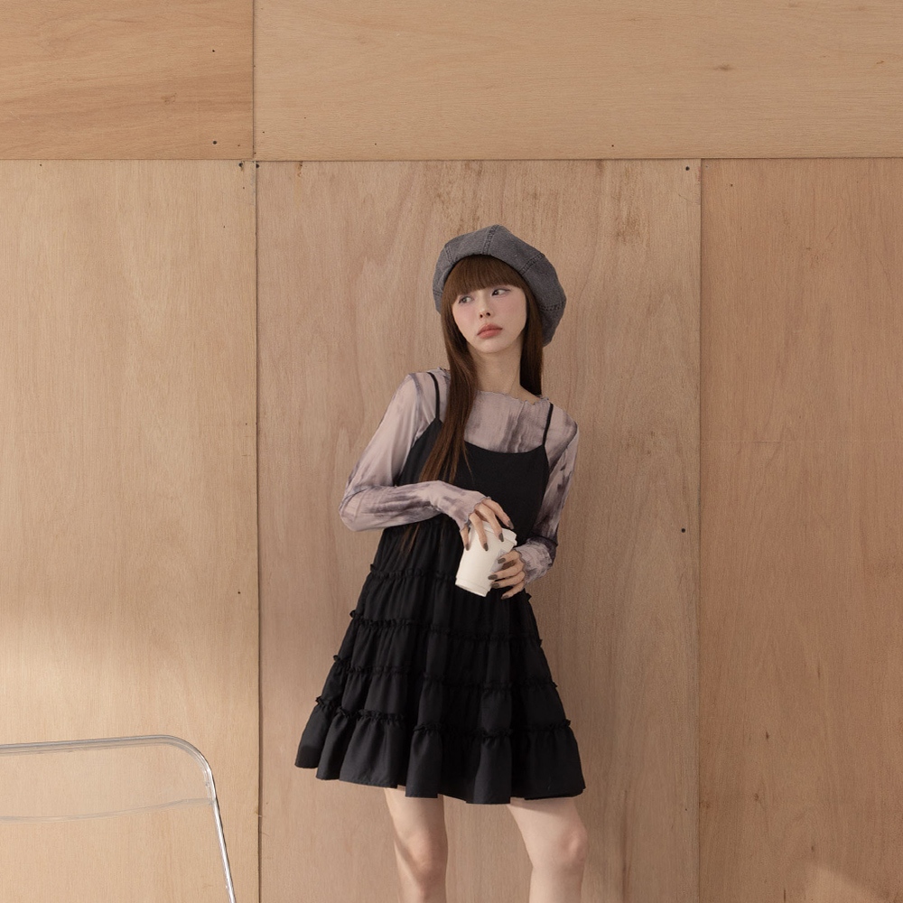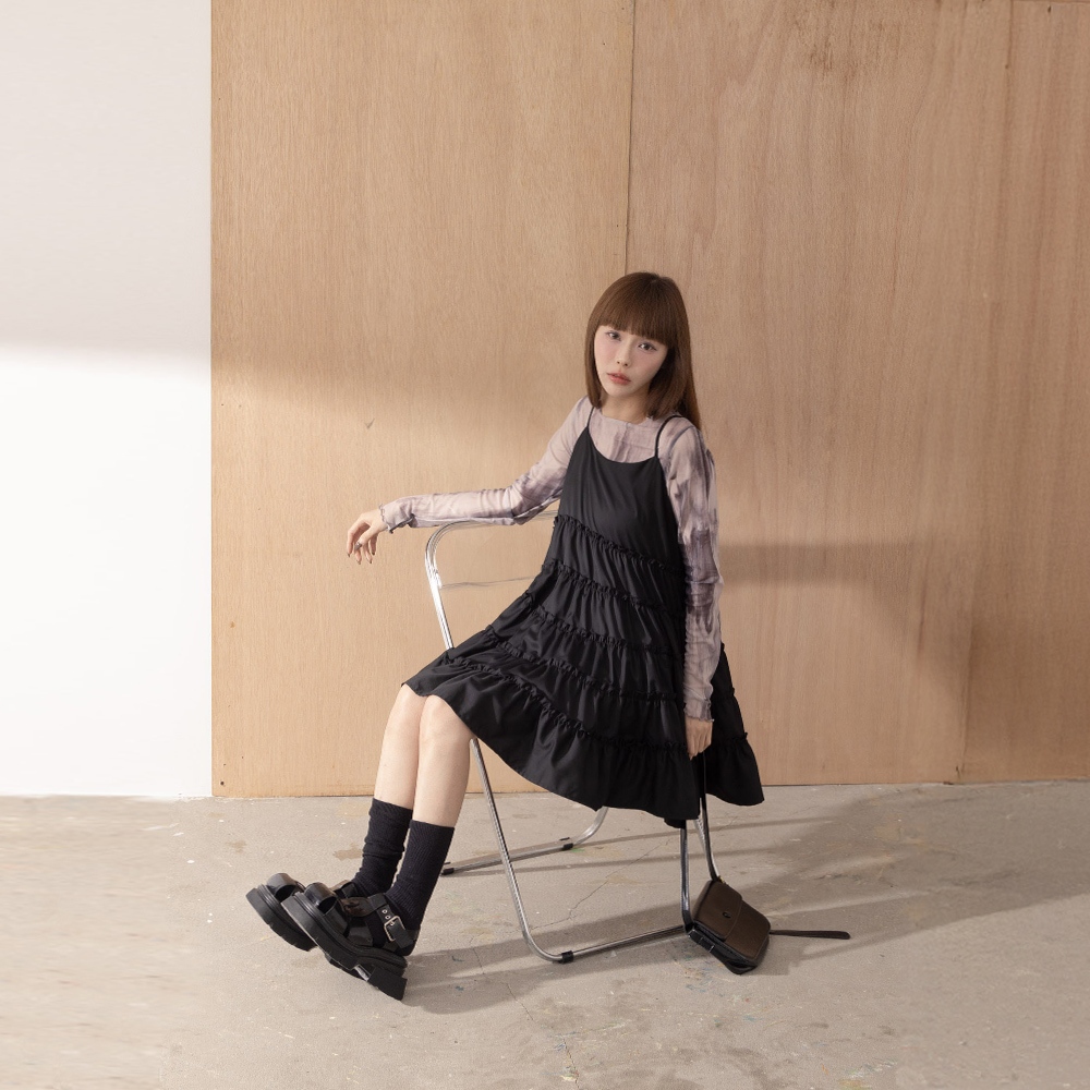 QUEENSHOP_ S 女裝 多層蛋糕剪接細肩短洋裝 兩色售 現+預 【01087034】黑|米白QUEENSHOP