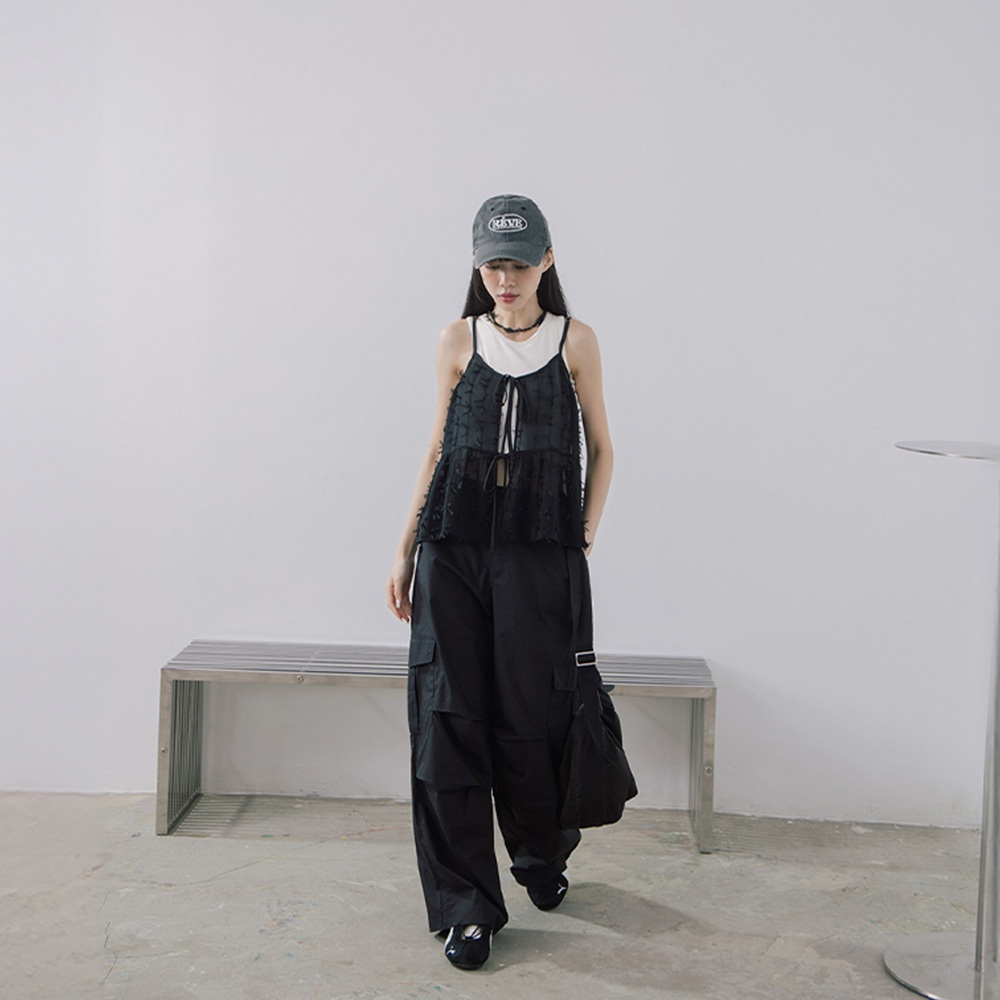 QUEENSHOP_ S 女裝 立體羽毛蝴蝶結綁帶罩衫背心 兩色售 現+預 【01098808】黑|白Tanks & CamisolesQUEENSHOP