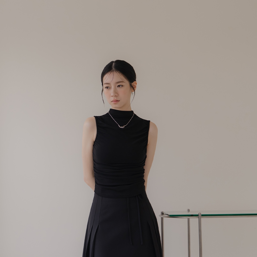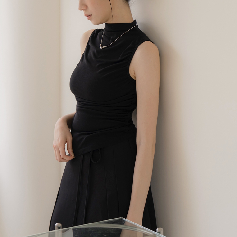 QUEENSHOP_ S 女裝 素面酒瓶領側抓皺背心-黑 現+預 【01098945】