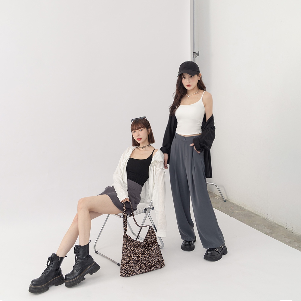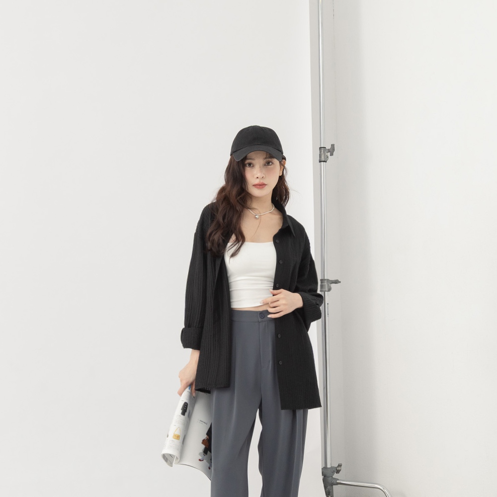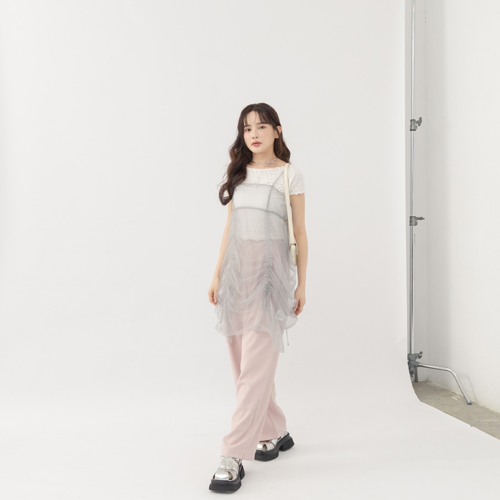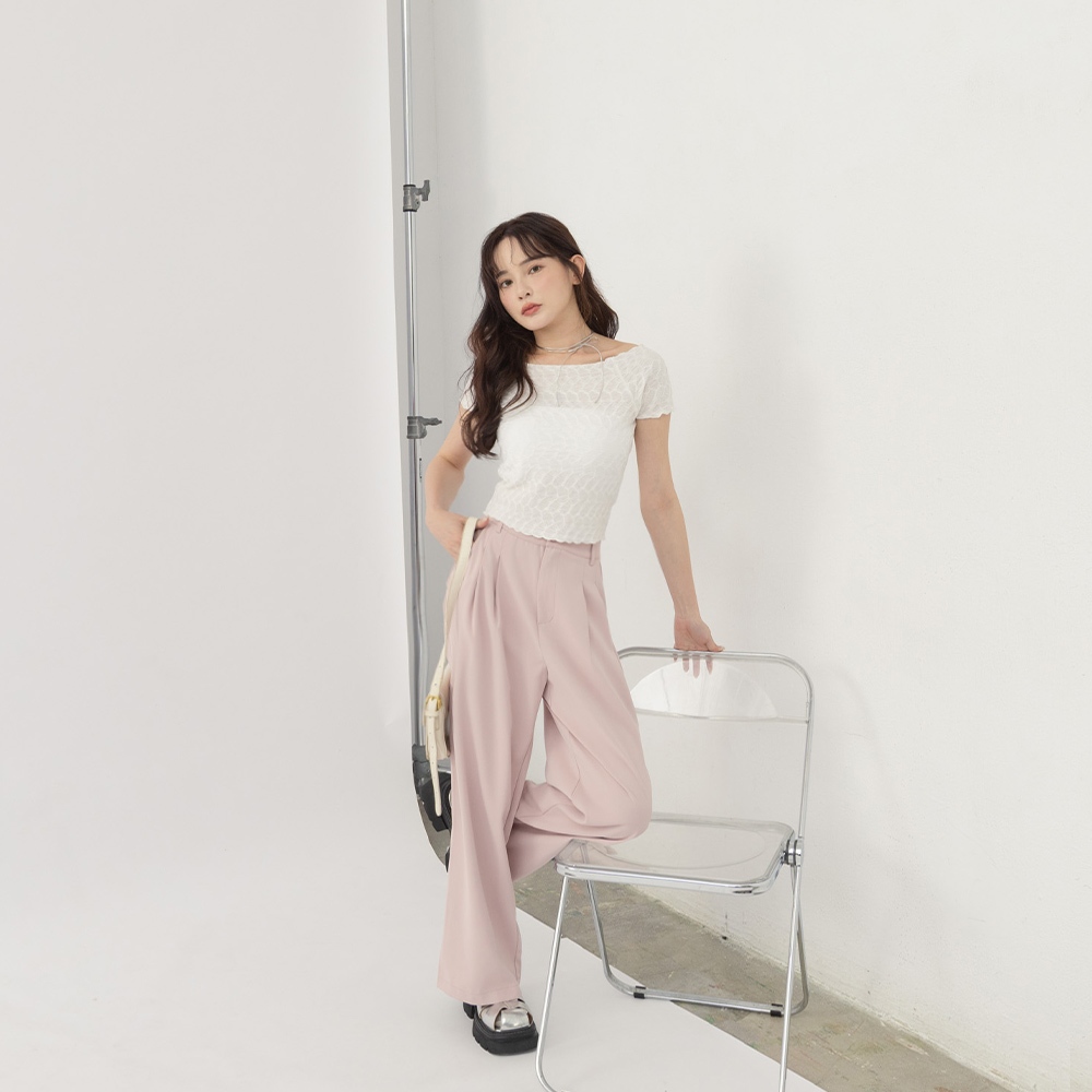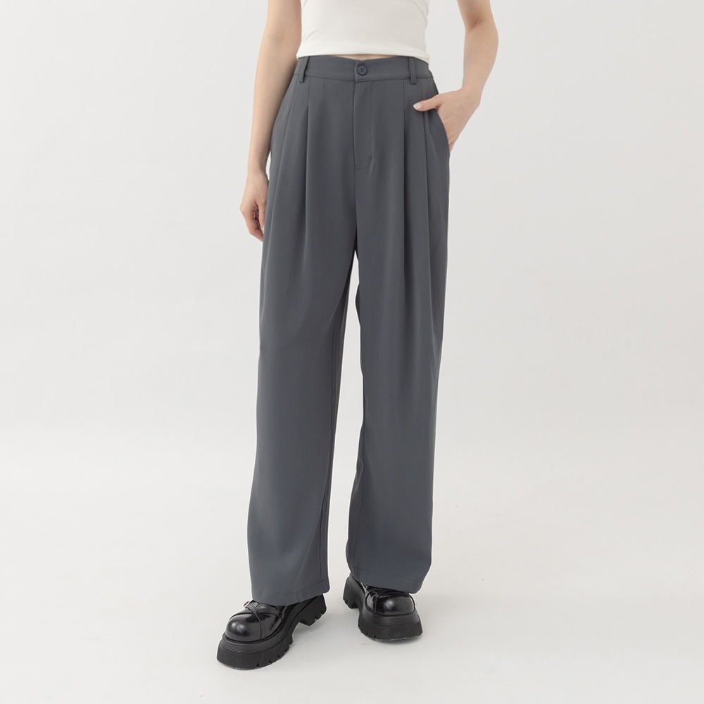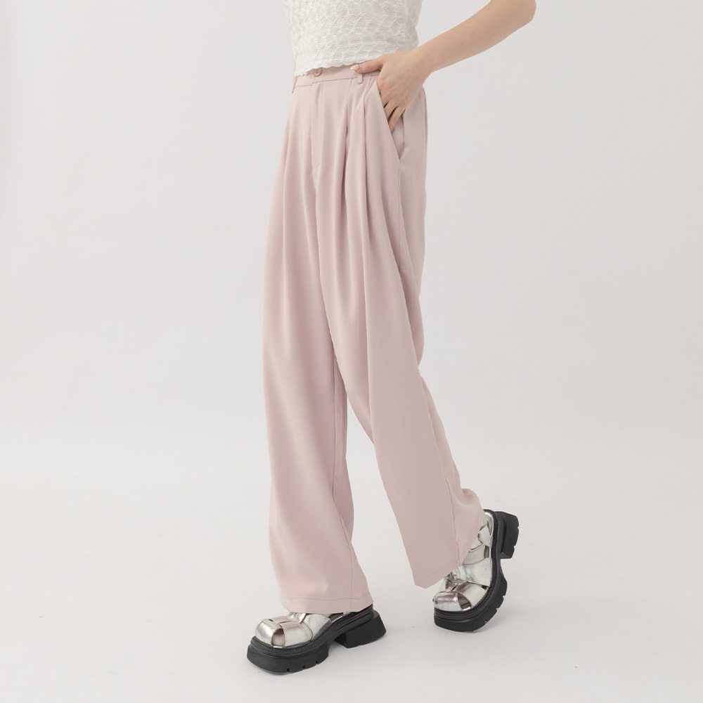 QUEENSHOP_ S 女裝 休閒打褶直筒西裝長褲 兩色售 S/M 現+預 【04030504】灰S|灰M|粉S|粉MPantsQUEENSHOP