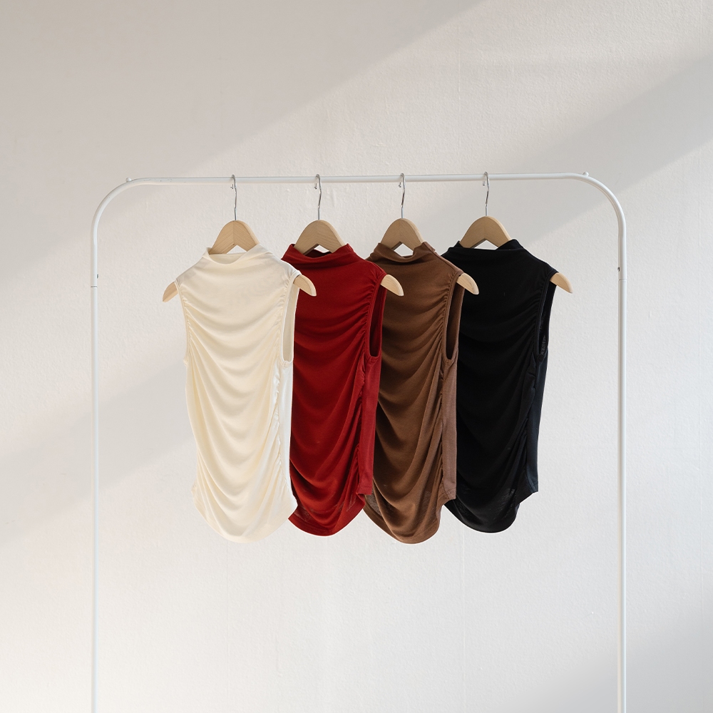 QUEENSHOP_ S 女裝 素面酒瓶領側抓皺背心-黑 現+預 【01098945】黑OthersQUEENSHOP