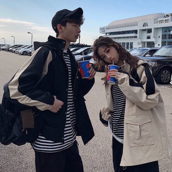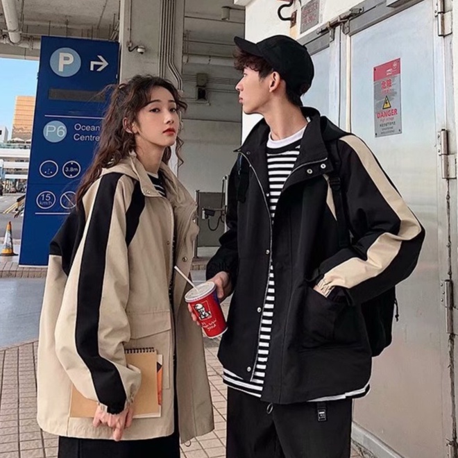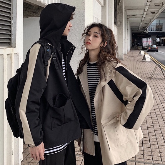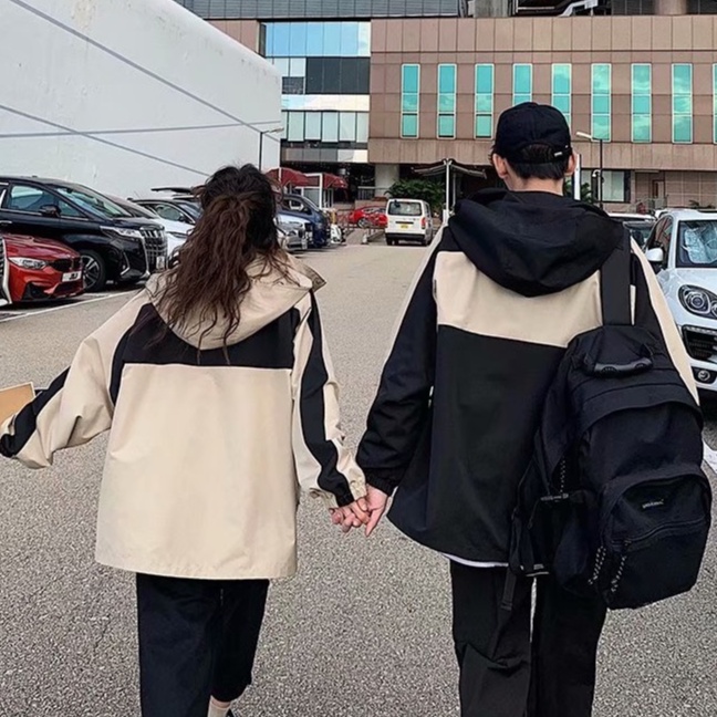 【ohi】男女同款情侶夾克 女外套 拼接連帽夾克 休閒外套女 寬鬆百搭休閒夾克衫 立領防風棒球服(BC7089卡其,M|卡其,L|卡其,XL|卡其,2XL|黑色,M|黑色,L|黑色,XL|黑色,2XLJacketsOHI衣著