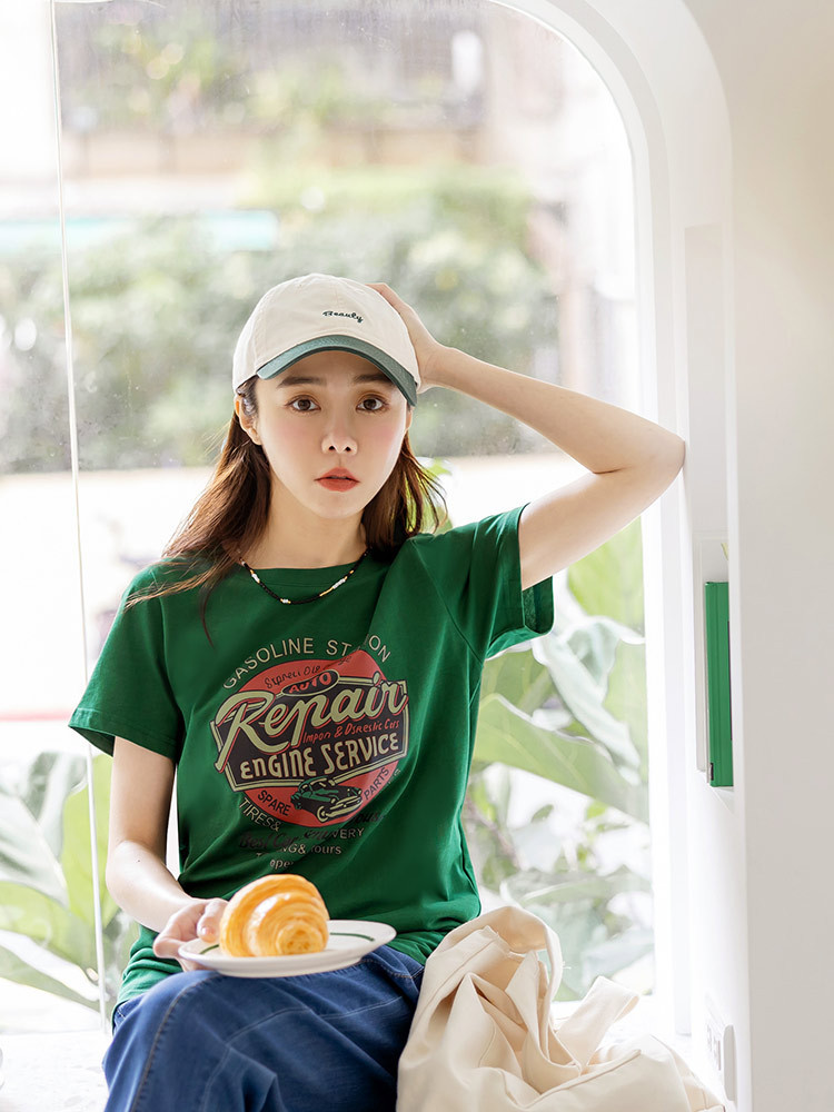 OB嚴選 親膚純棉美式復古印花T上衣 《AB19456》大尺碼/女裝/現貨鐵灰,S|鐵灰,M|鐵灰,L|鐵灰,XL|鐵灰,2L|鐵灰,3L|綠,S|綠,M|綠,L|綠,XL|綠,2L|綠,3LT-shirtsOB嚴選官方旗艦店