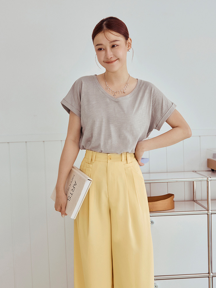 OB嚴選 親膚棉質腰打褶開衩短袖上衣 《AB20420》卡其杏,S|卡其杏,M|卡其杏,L|卡其杏,XL|卡其杏,2L|卡其杏,3L|粉紫,S|粉紫,M|粉紫,L|粉紫,XL|粉紫,2L|粉紫,3LT-shirtsOB嚴選官方旗艦店