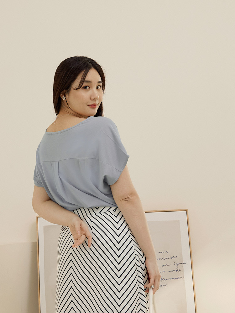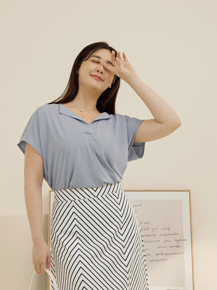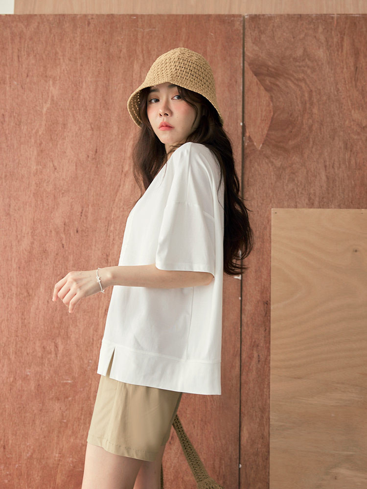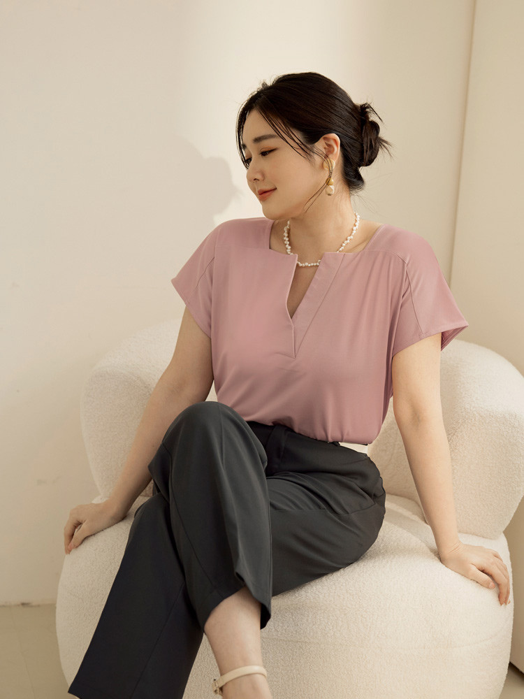 OB嚴選 雲朵自訂款-涼感.冰絲防曬原紗V領連袖上衣 《AB19320》霧藍,XL|霧藍,2L|霧藍,3L|灰粉,XL|灰粉,2L|灰粉,3L|黑,XL|黑,2L|黑,3LT-shirtsOB嚴選官方旗艦店