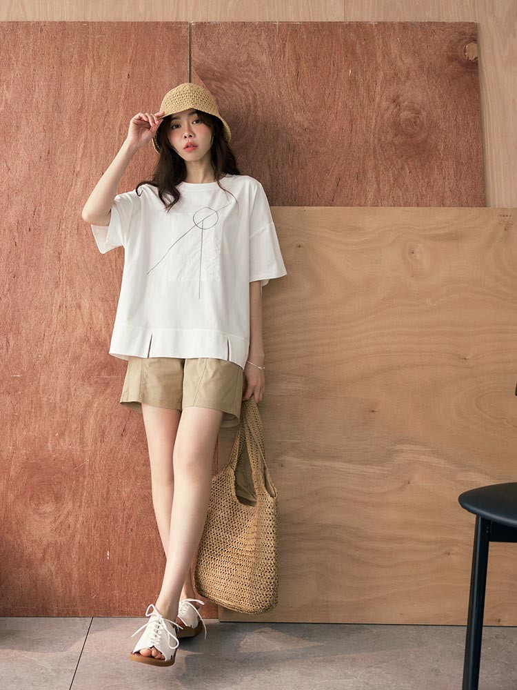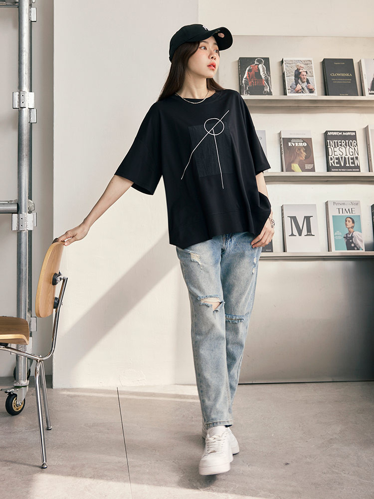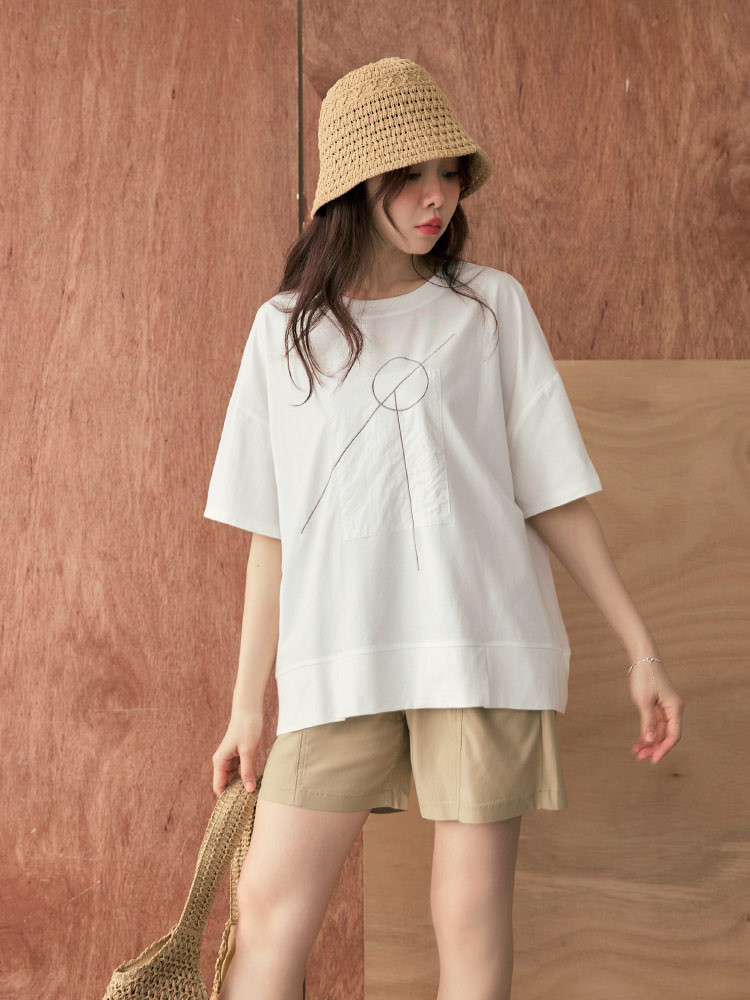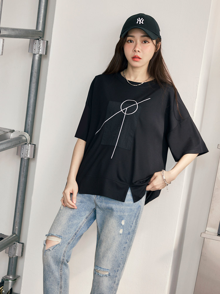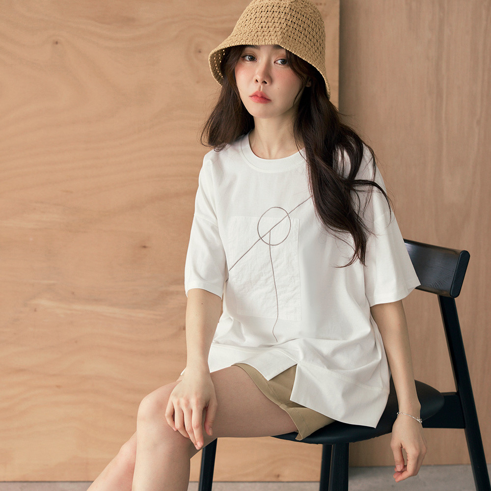 OB嚴選 幾何印花拼接寬鬆短袖上衣 《AB20300》白,F|白,3L|黑,F|黑,3LT-shirtsOB嚴選官方旗艦店