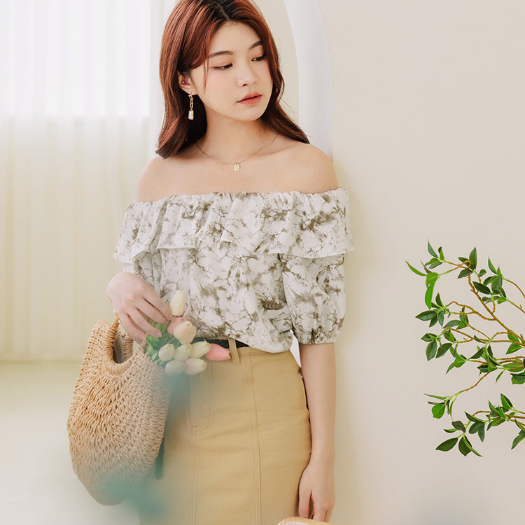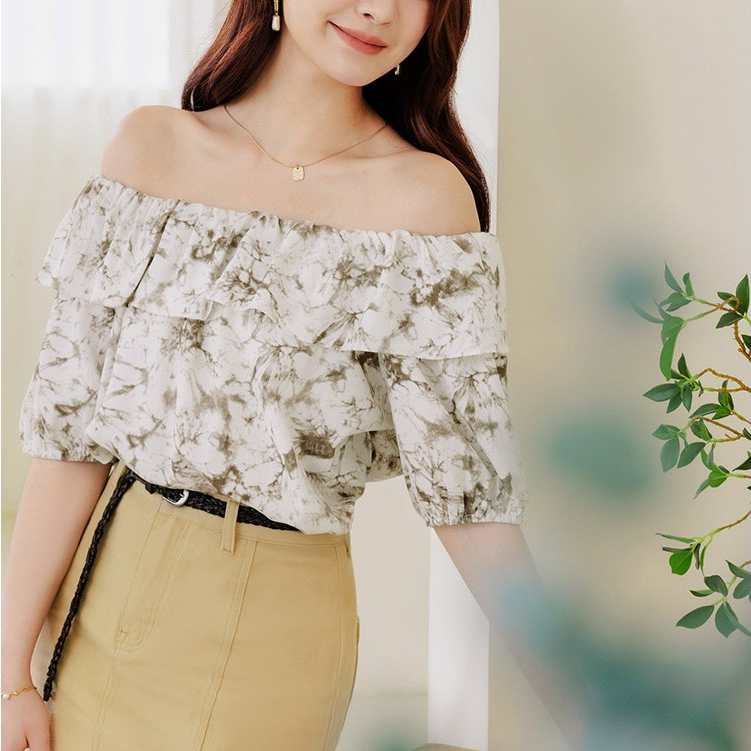 OB嚴選 暈染印花兩穿一字領腰鬆緊短版上衣 《AB19385》大尺碼/現貨/女裝灰藍,S|灰藍,M|灰藍,L|灰藍,XL|灰藍,2L|咖啡,S|咖啡,M|咖啡,L|咖啡,XL|咖啡,2LOthersOB嚴選官方旗艦店