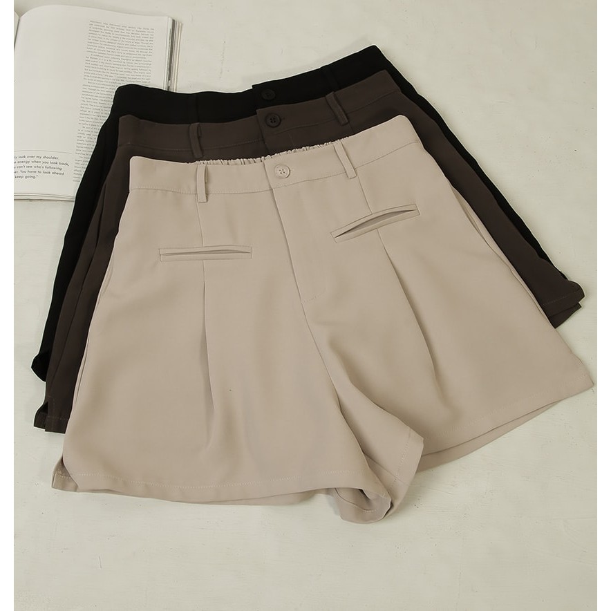 【PolyLulu】 MISS.百搭不易皺A字打褶後鬆緊西裝短褲 中大尺碼褲子 杏色