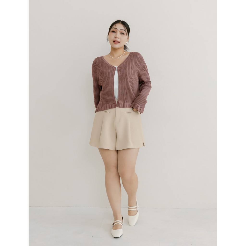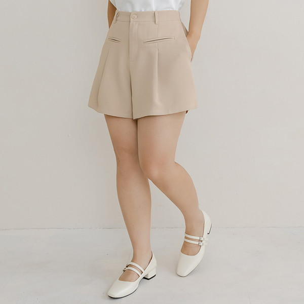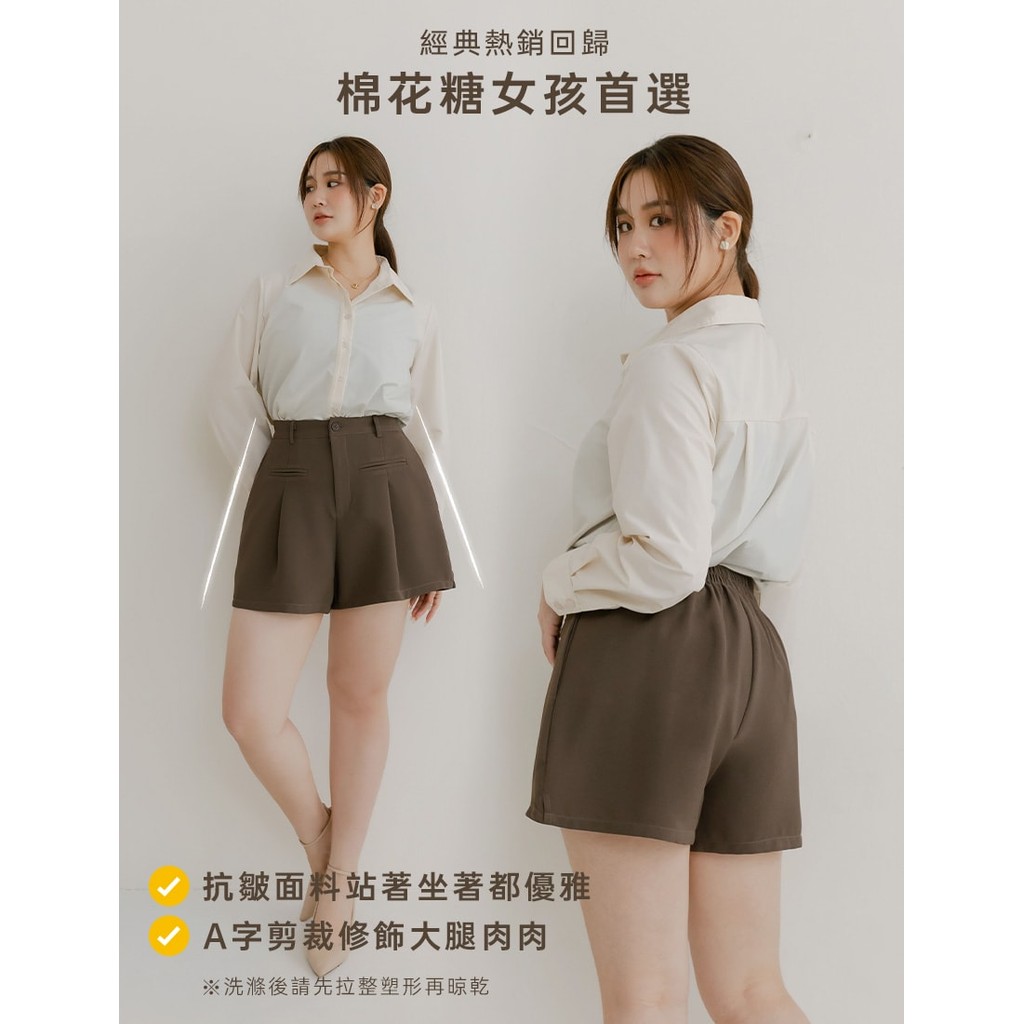 【PolyLulu】 MISS.百搭不易皺A字打褶後鬆緊西裝短褲 中大尺碼褲子 杏色L|XL|2XL|3XLShortsPOLY LULU丨BEAUTY HAS NO SIZE 中大尺碼女裝