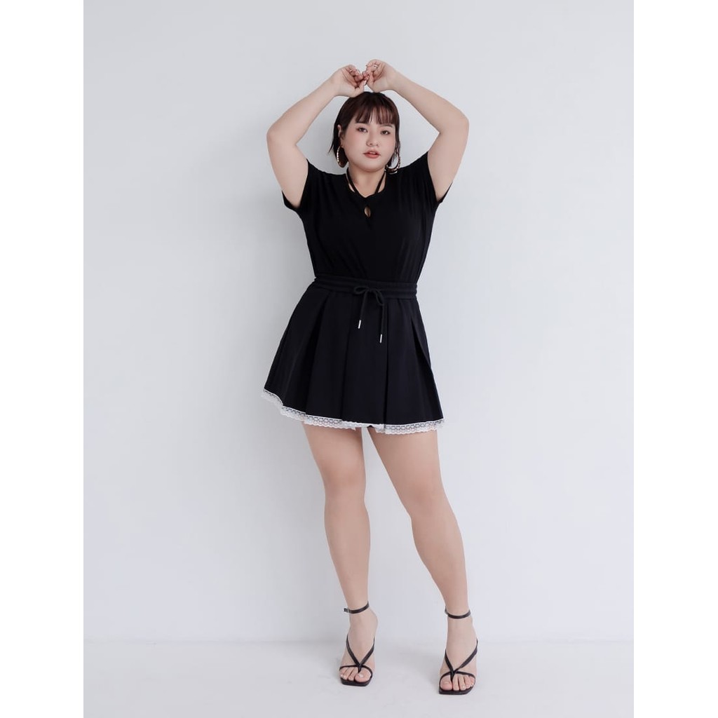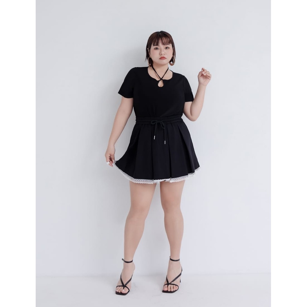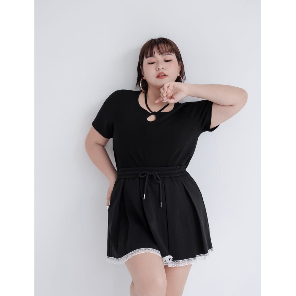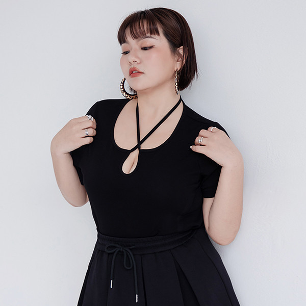 【PolyLulu】 雲朵棉U領鏤空綁帶上衣 MUA! 中大尺碼上衣 黑色L|XL|2XL|3XLOthersPOLY LULU丨BEAUTY HAS NO SIZE 中大尺碼女裝