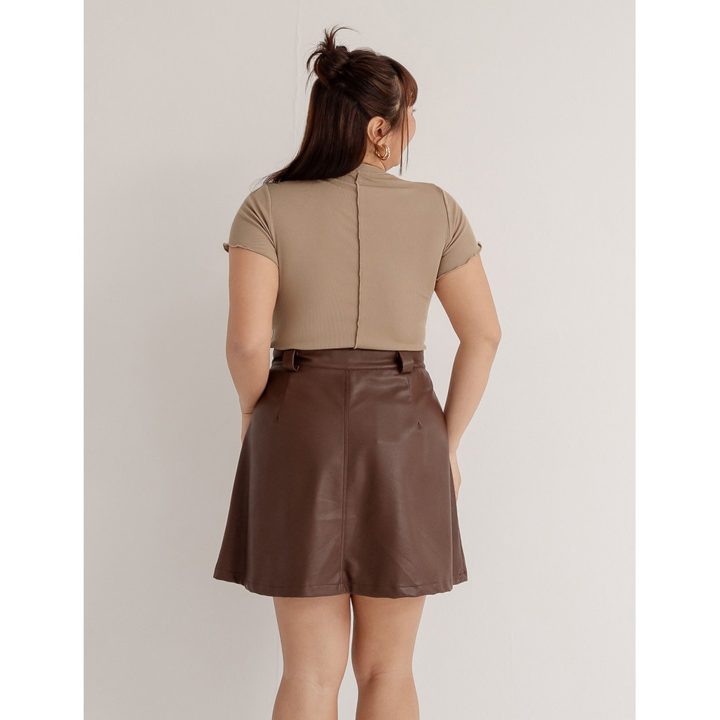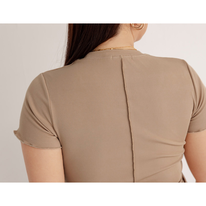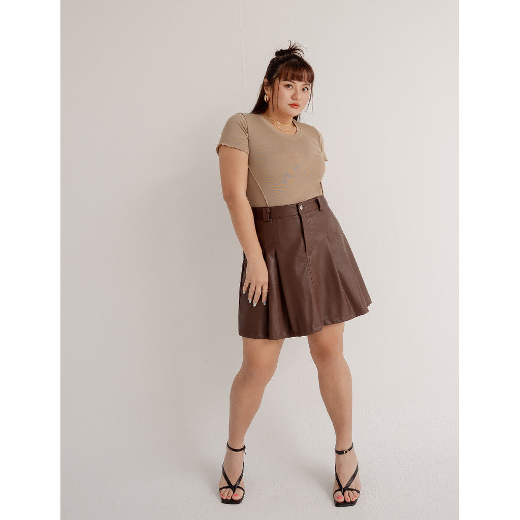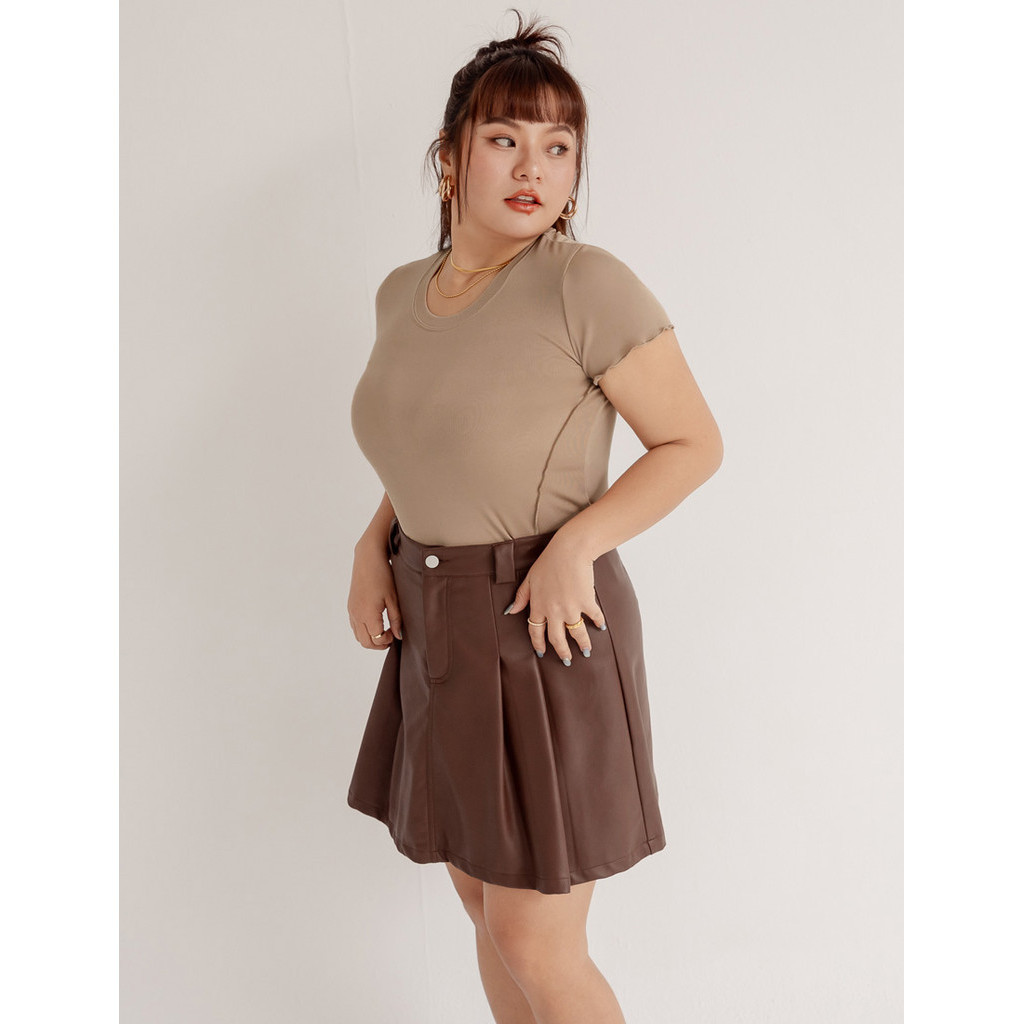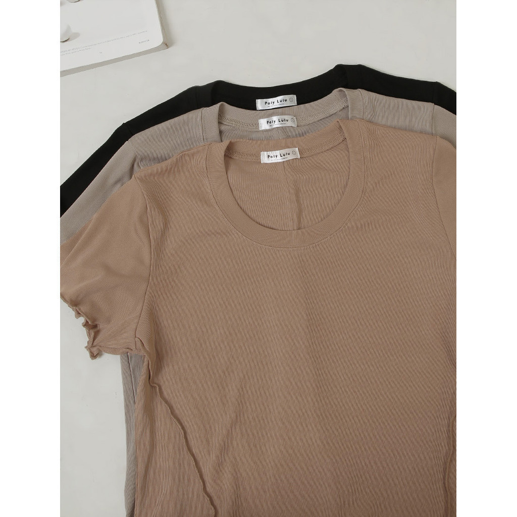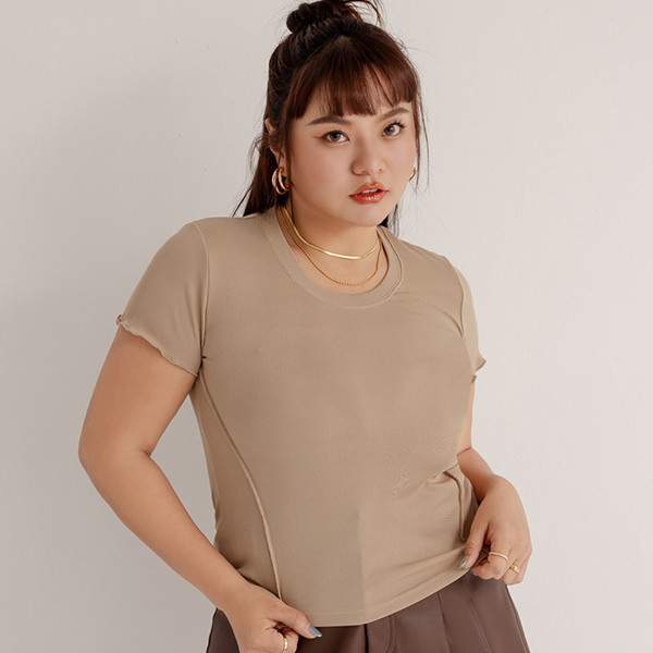 【PolyLulu】 MUA!魚骨坑條木耳邊彈性短袖上衣 中大尺碼上衣 棕色L|XL|2XL|3XLOthersPOLY LULU丨BEAUTY HAS NO SIZE 中大尺碼女裝