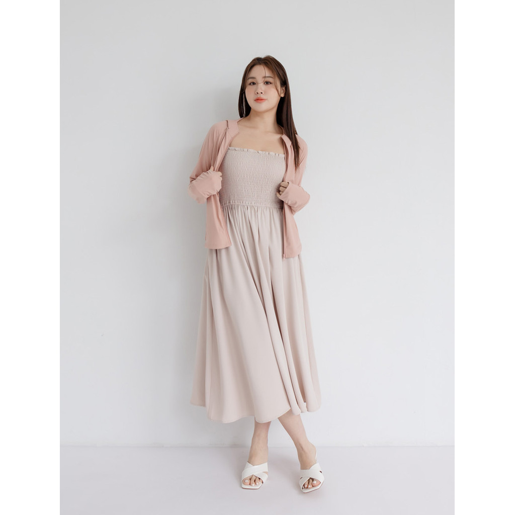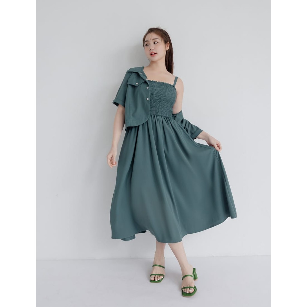 【PolyLulu】 可調式鬆緊吊帶斜紋洋裝 中大尺碼洋裝