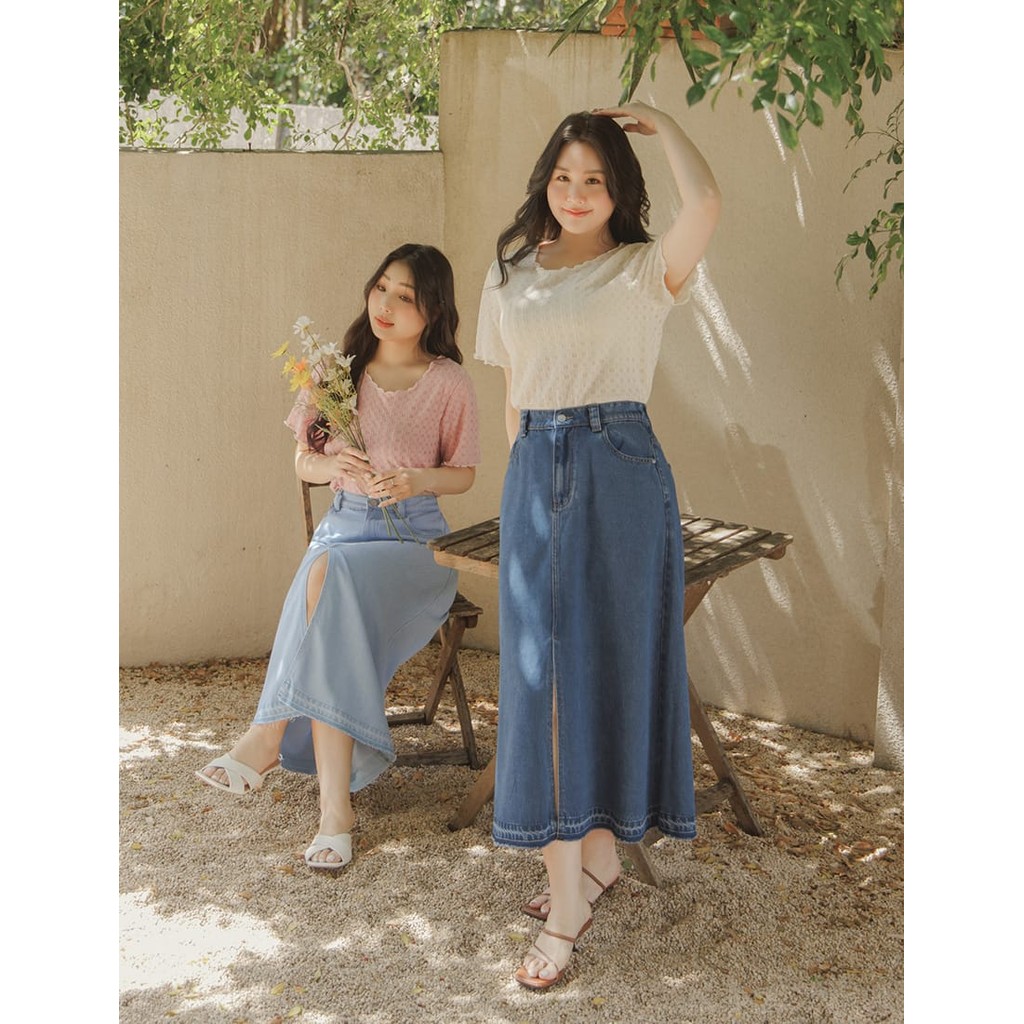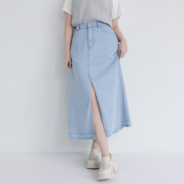 【PolyLulu】 萊賽爾涼感開衩牛仔長裙 中大尺碼裙子 淺藍色XL|2XL|3XL|4XL|LPOLY LULU丨BEAUTY HAS NO SIZE 中大尺碼女裝