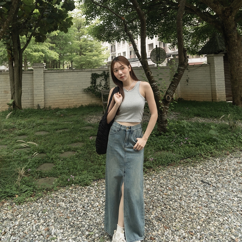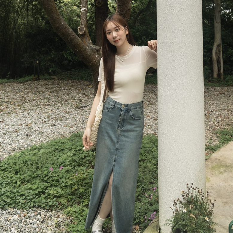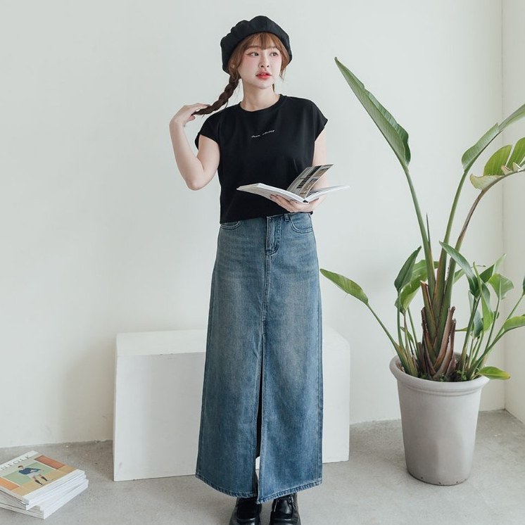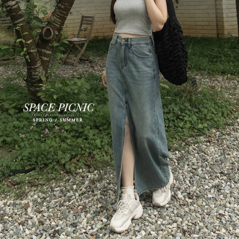 Space Picnic|前開衩牛仔長裙-1色【C24041020】淺藍,S|淺藍,M|淺藍,L|淺藍,XL|深藍,S|深藍,M|深藍,L|深藍,XLSpace Picnic