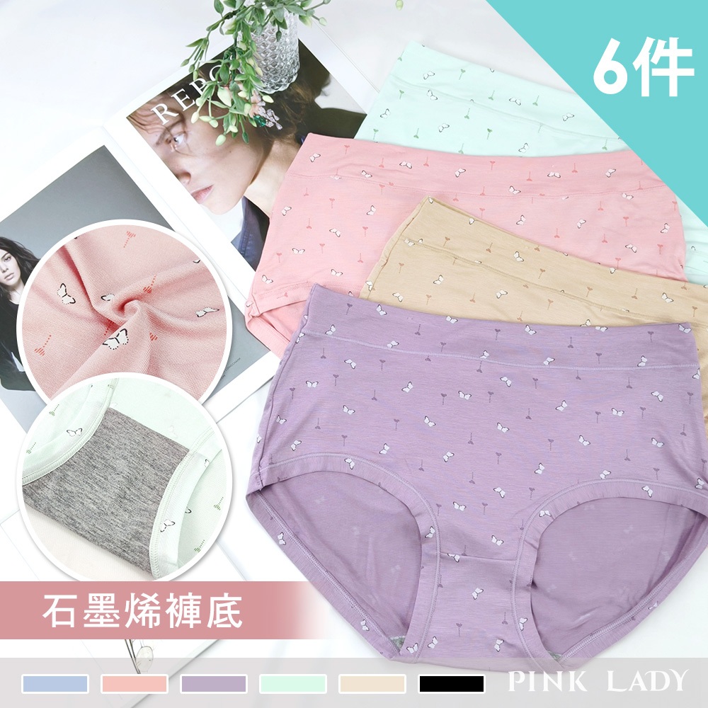 Pink Lady 蝶舞戀曲 石墨烯褲底 中高腰內褲 棉質內褲 三角內褲 小資首選 少女內褲 學生內褲 99096件組(隨機出貨不挑色),Free Size(L~XL適穿)PantiesPINK LADY內睡衣.Since 1995