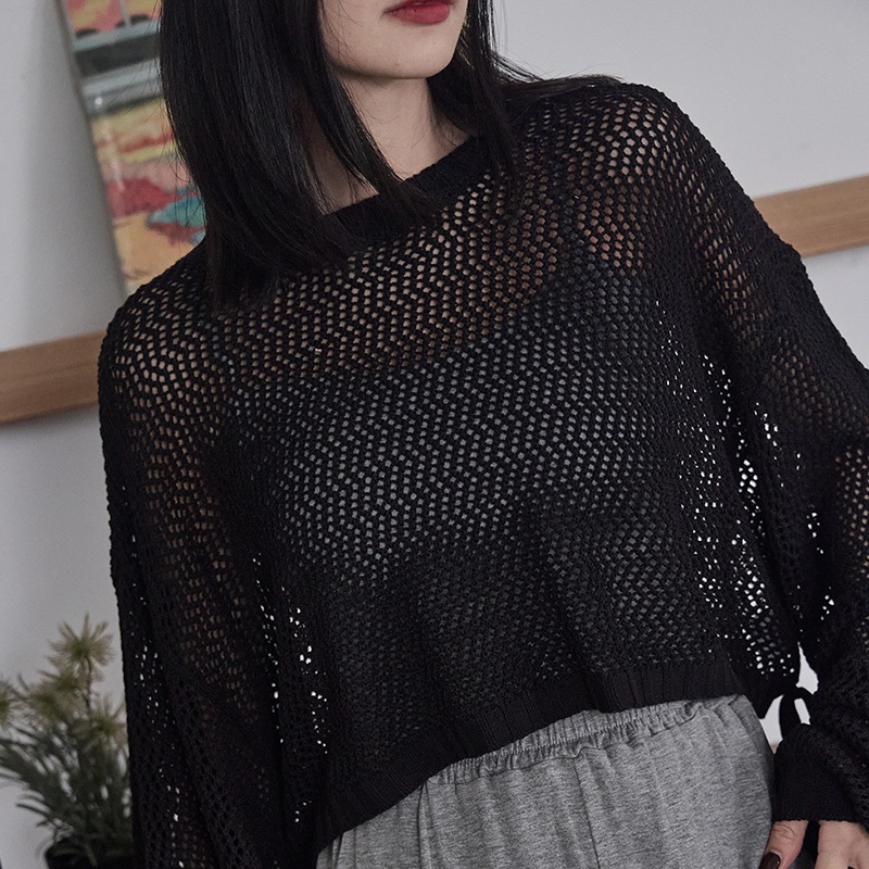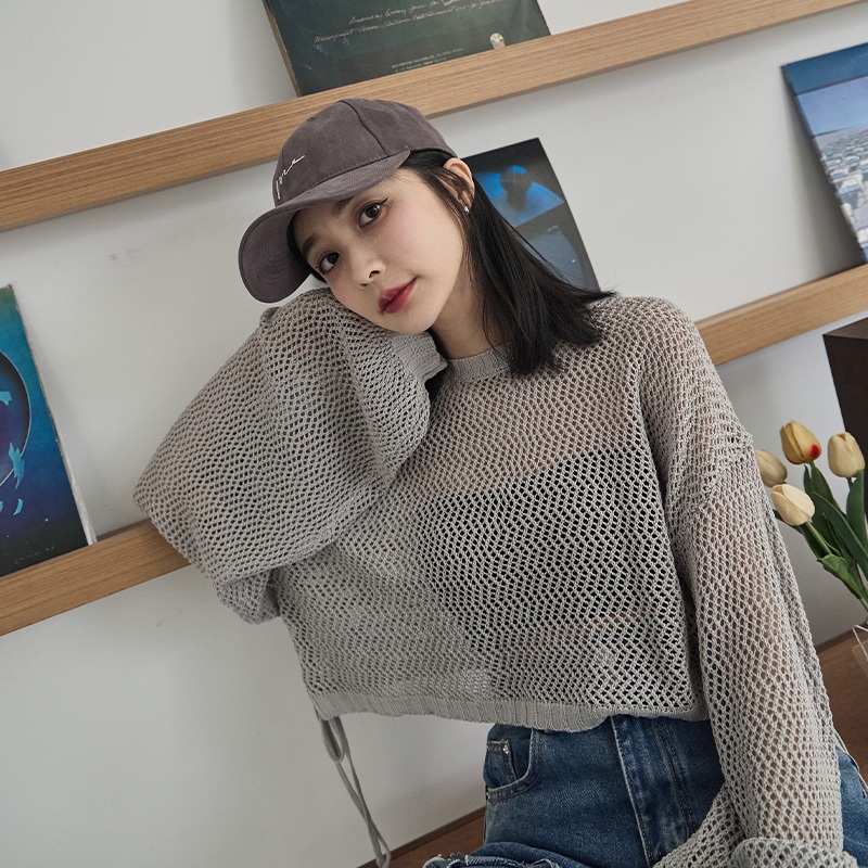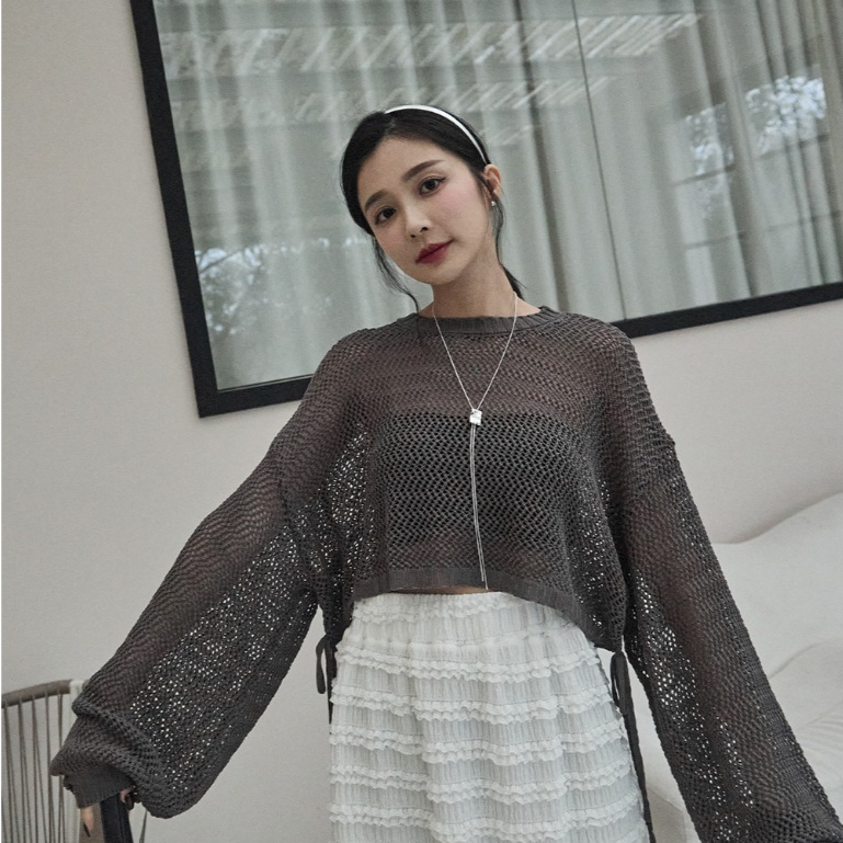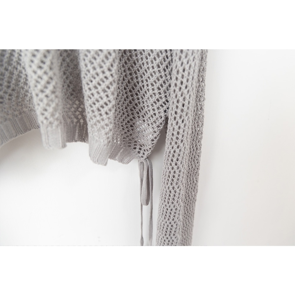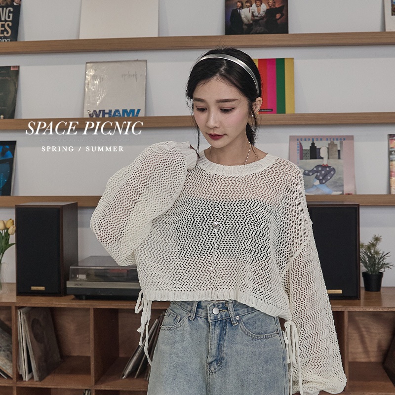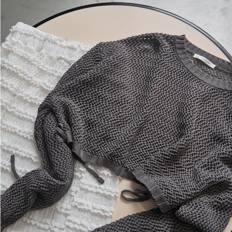 Space Picnic|簍空側綁帶針織上衣-4色【2501159】白|黑|灰咖|銀灰Space Picnic