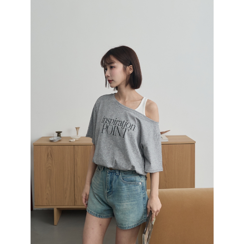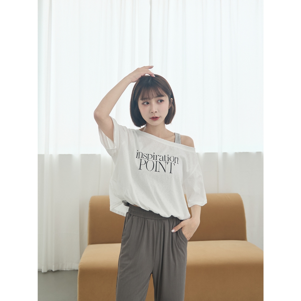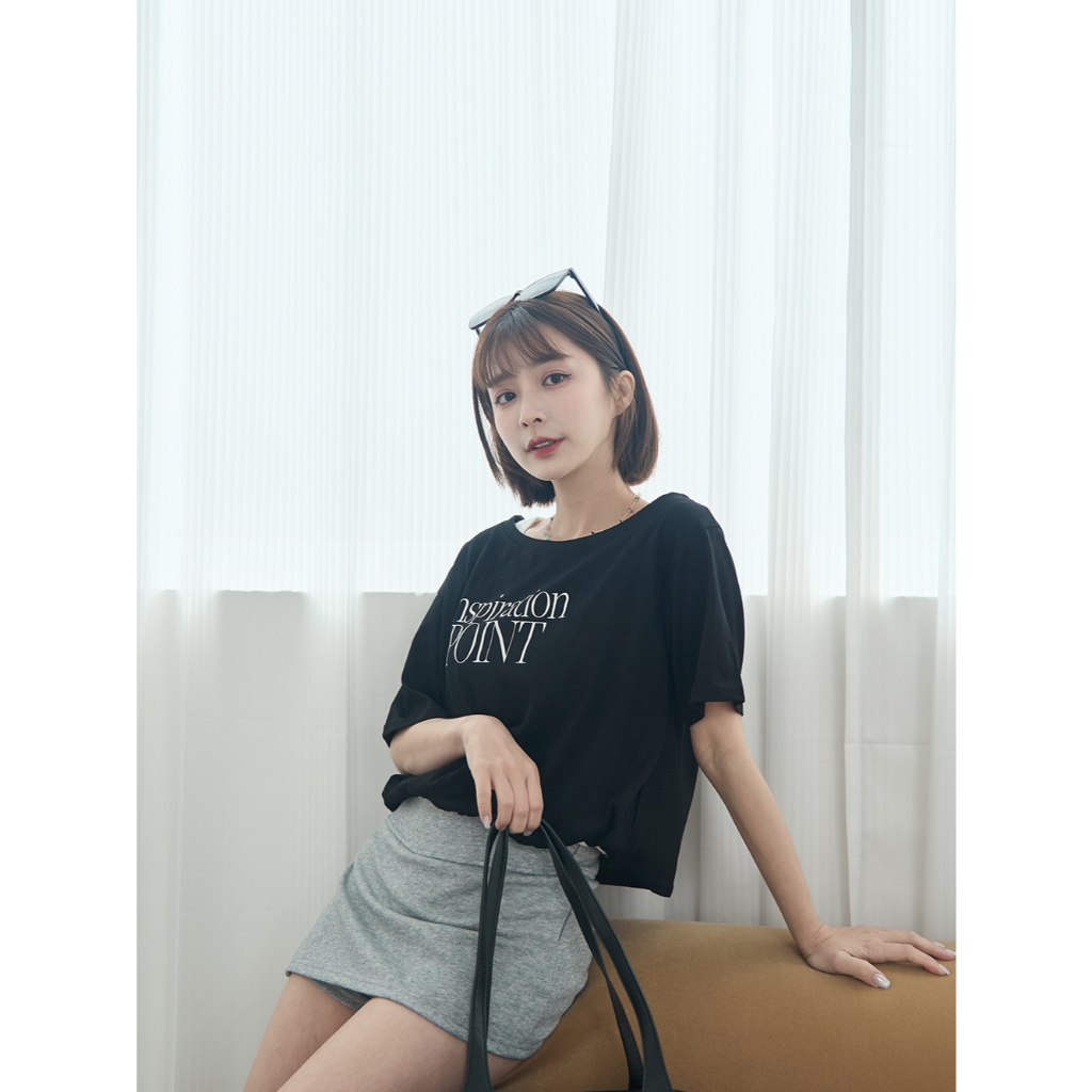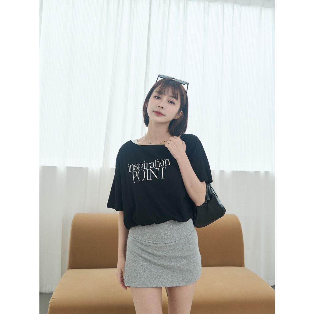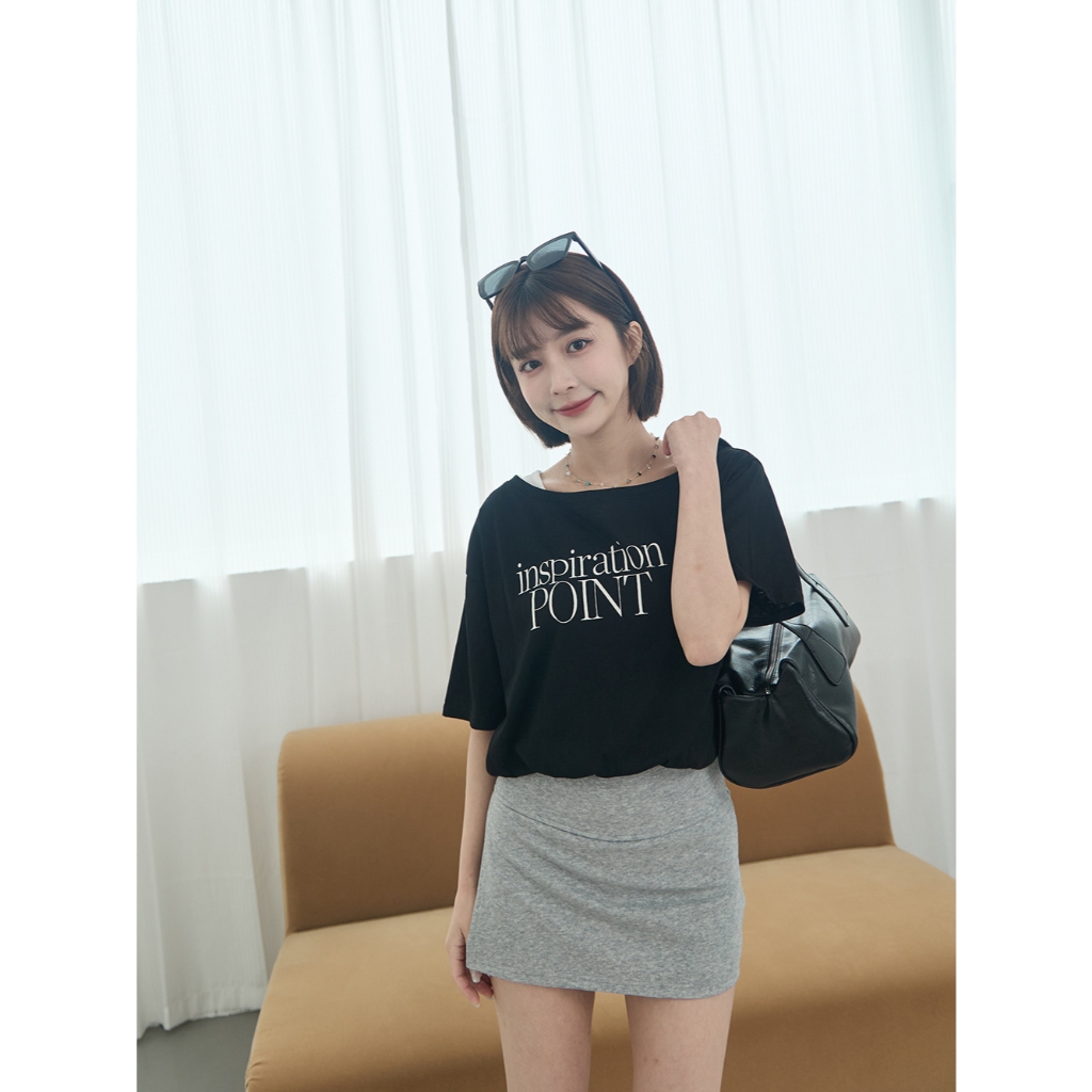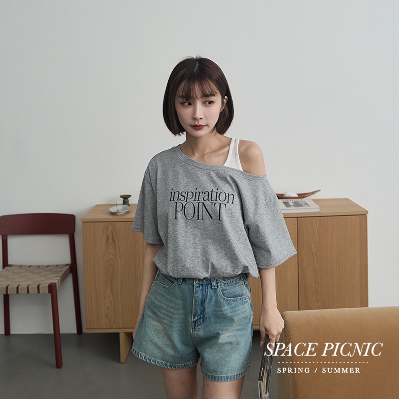 Space Picnic|字母鬆緊下擺假兩件上衣-3色【2505128】白|黑|灰T-shirtsSpace Picnic