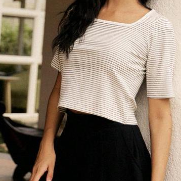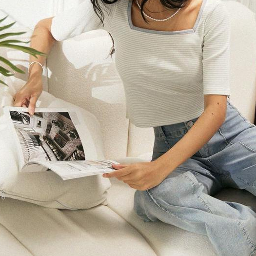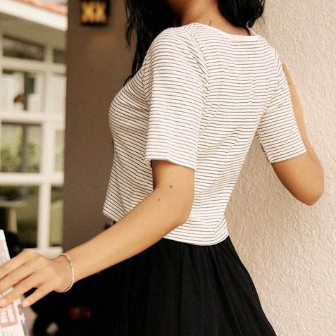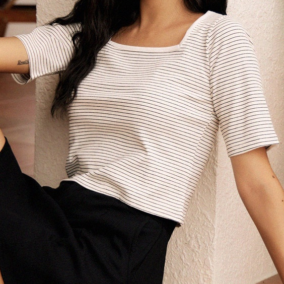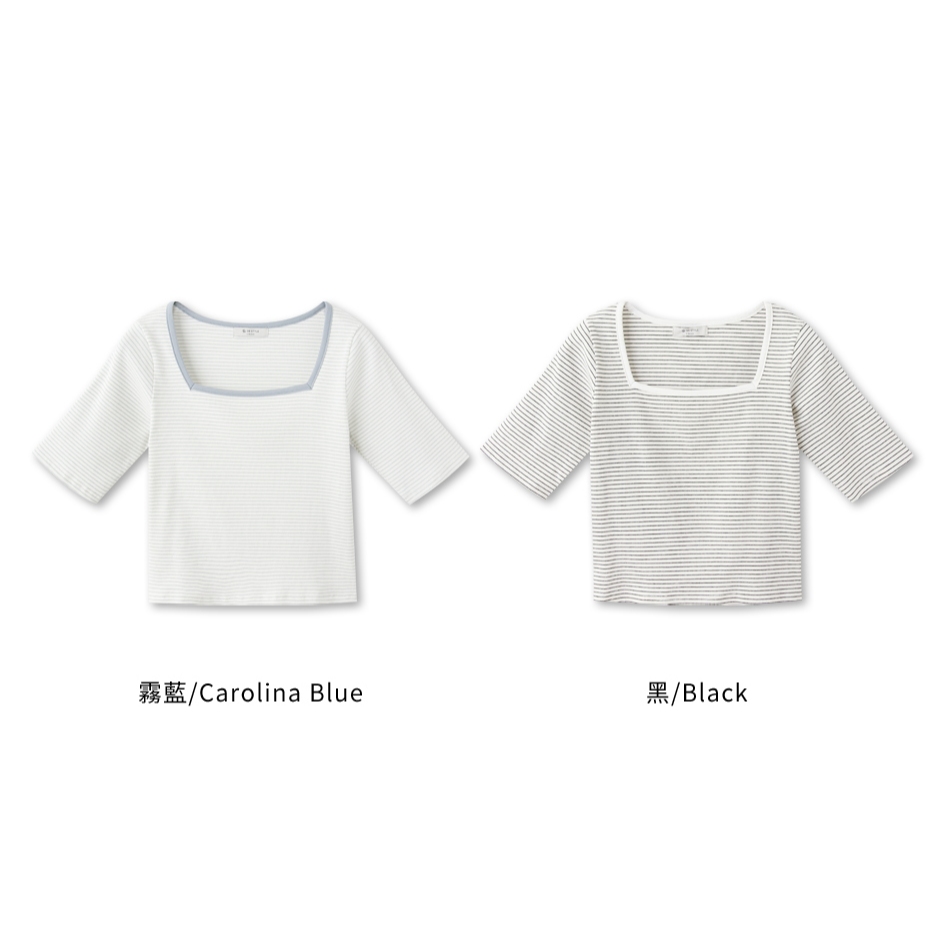OB嚴選 小V臉.棉質針織條紋方領五分袖短版上衣 《AB18507》現貨/女裝/時髦黑,3L|霧藍,XL|霧藍,3L|霧藍,L|黑,XL|霧藍,XS|霧藍,M|黑,S|黑,M|黑,L|霧藍,2L|黑,XS|黑,2L|霧藍,ST-shirtsOB嚴選官方旗艦店