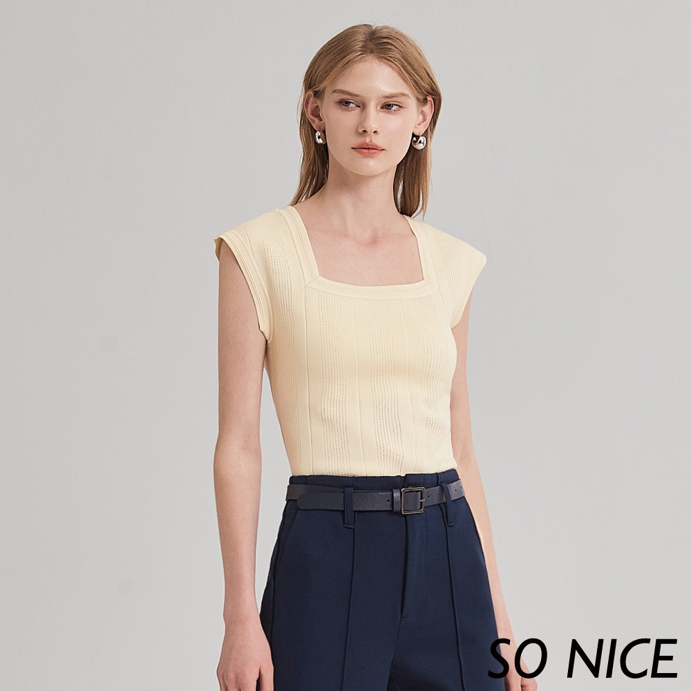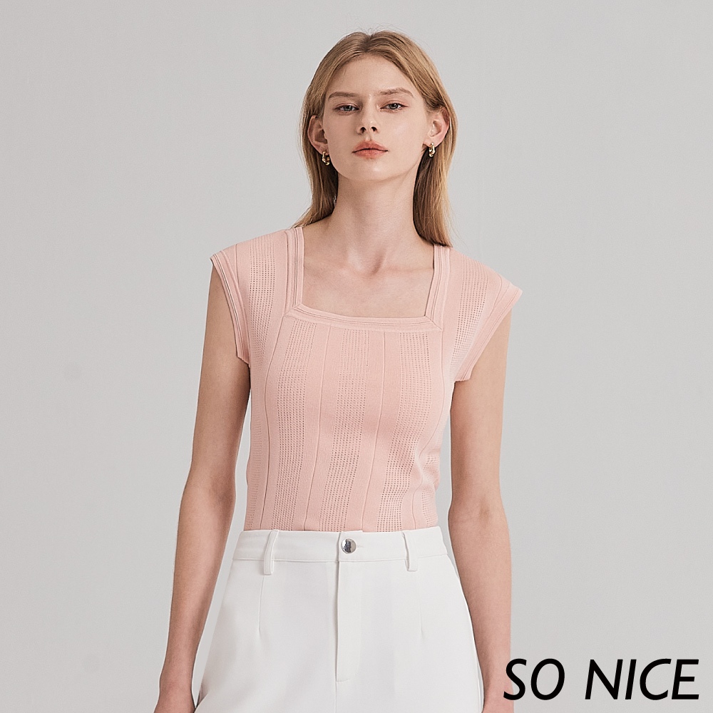 SO NICE【特惠】方領緹織小蓋袖合身針織上衣|都會時尚女裝 【58430052】粉,34(XS)|粉,40(L)|粉,42(XL)|米,36(S)|米,40(L)|米,42(XL)|粉,38(M)|米,34(XS)|米,38(M)|粉,36(S)SO NICE 官方旗艦店