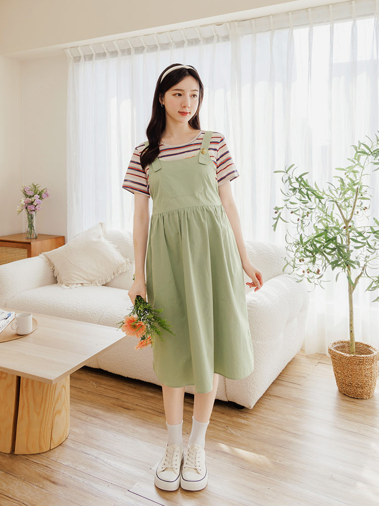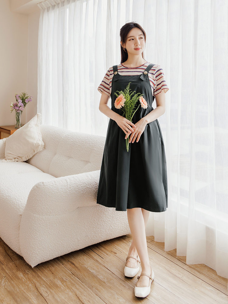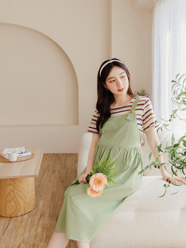 OB嚴選 純棉條紋假兩件吊帶哺乳孕婦洋裝 《MD0016》大尺碼/女裝/現貨綠,S|綠,M|綠,L|綠,XL|綠,2L|綠,3L|深藍,S|深藍,M|深藍,L|深藍,XL|深藍,2L|深藍,3LMaternity SetsOB嚴選官方旗艦店