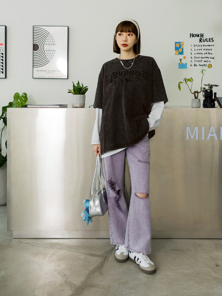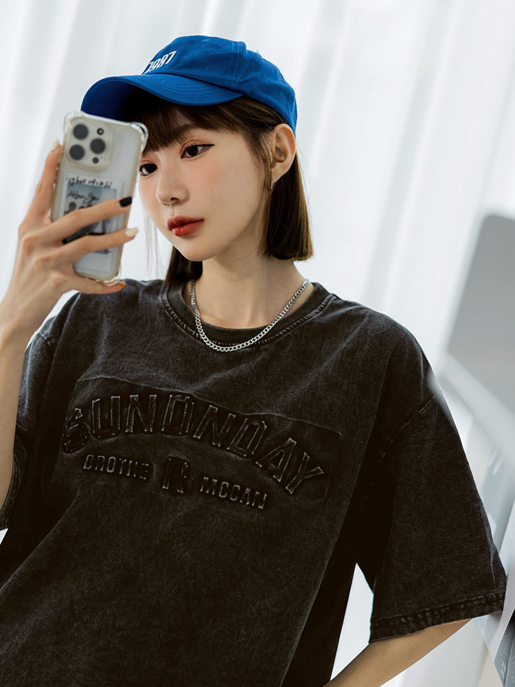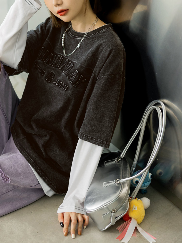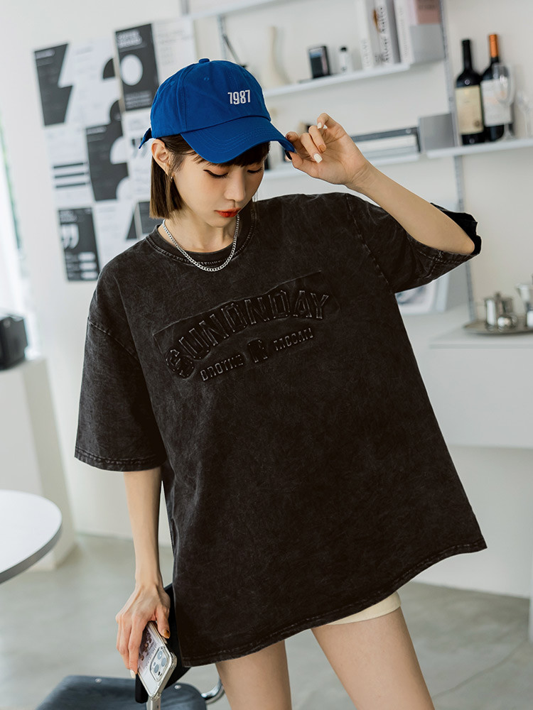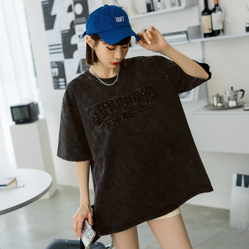 OB嚴選 純棉水洗字母鋼印落肩寬版T 《AB19762》女裝/現貨黑,XLT-shirtsOB嚴選官方旗艦店