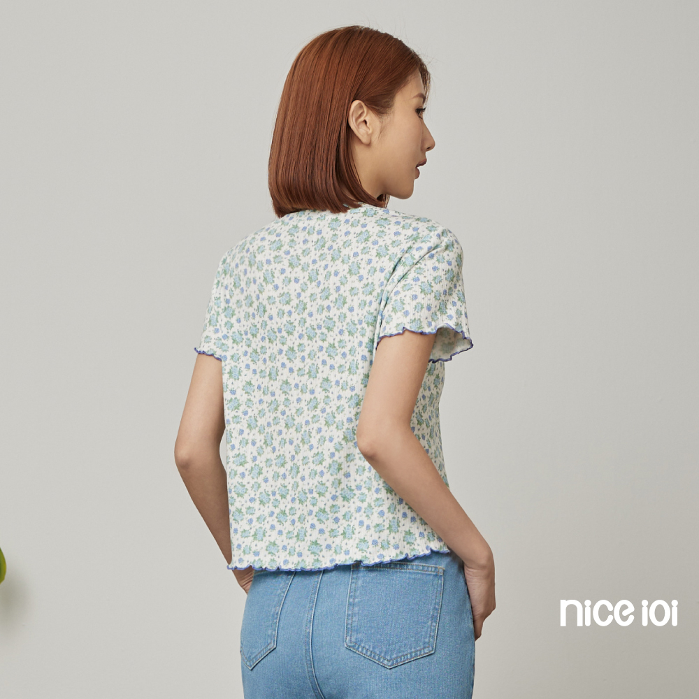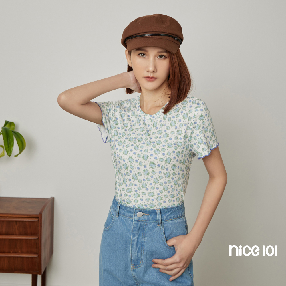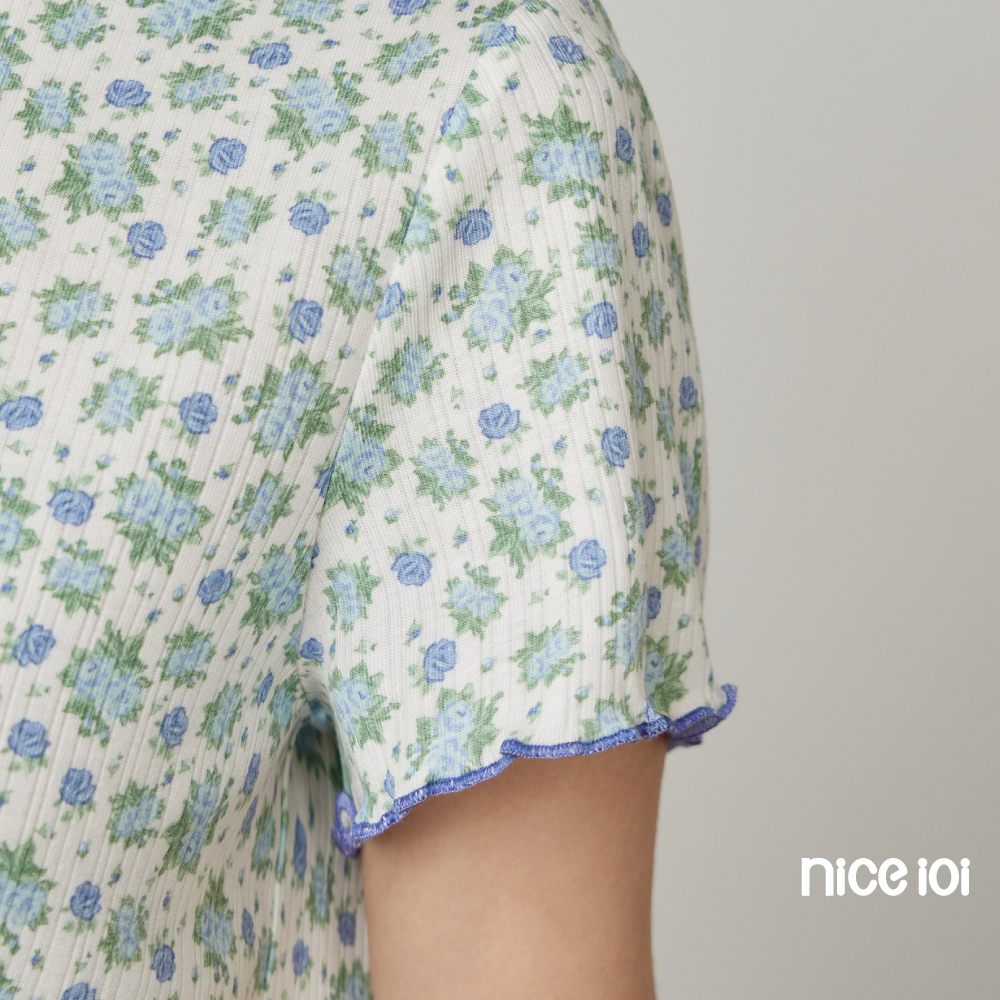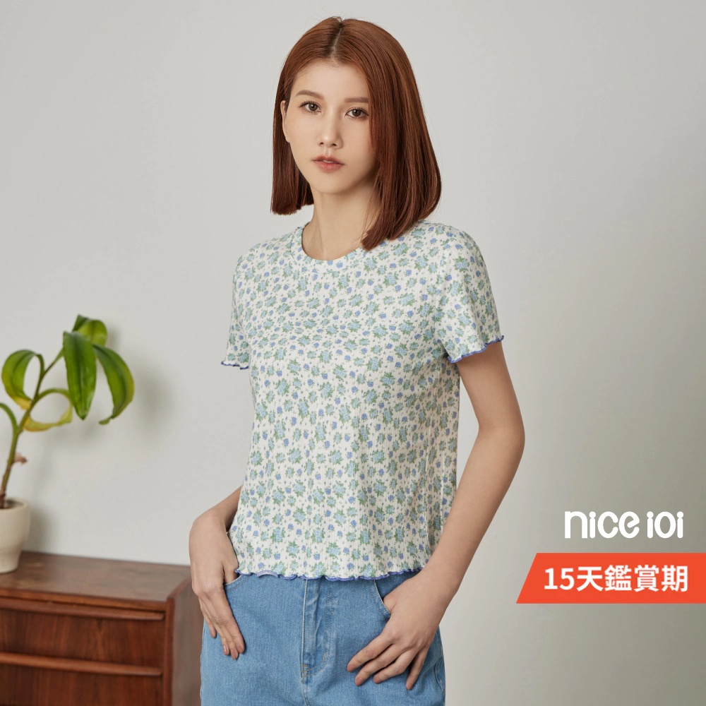 niceioi【特惠】田園風小碎花坑條彈性棉T 女裝藍,XS|藍,S|藍,M|藍,L|藍,XLT-shirtsniceioi 官方旗艦店