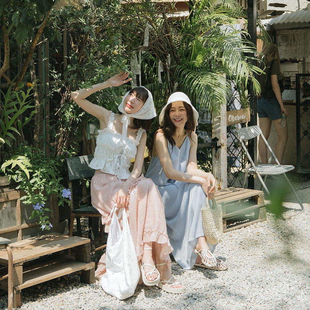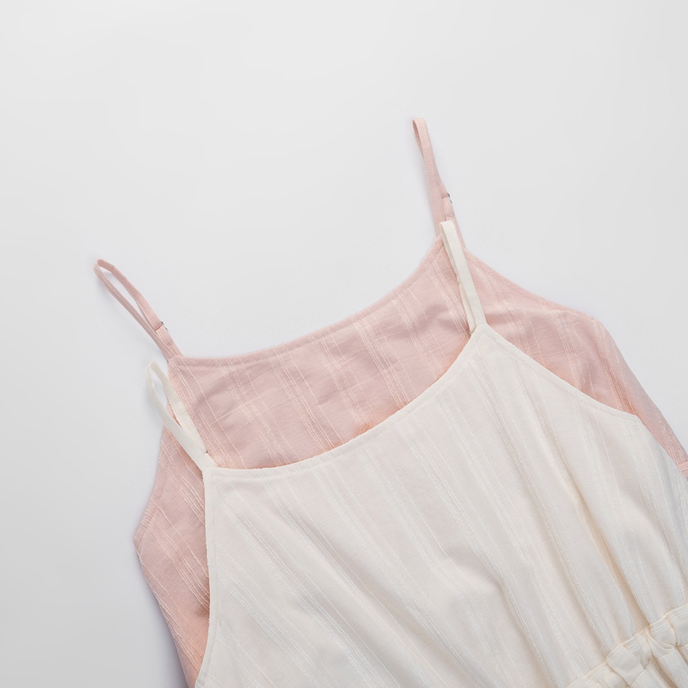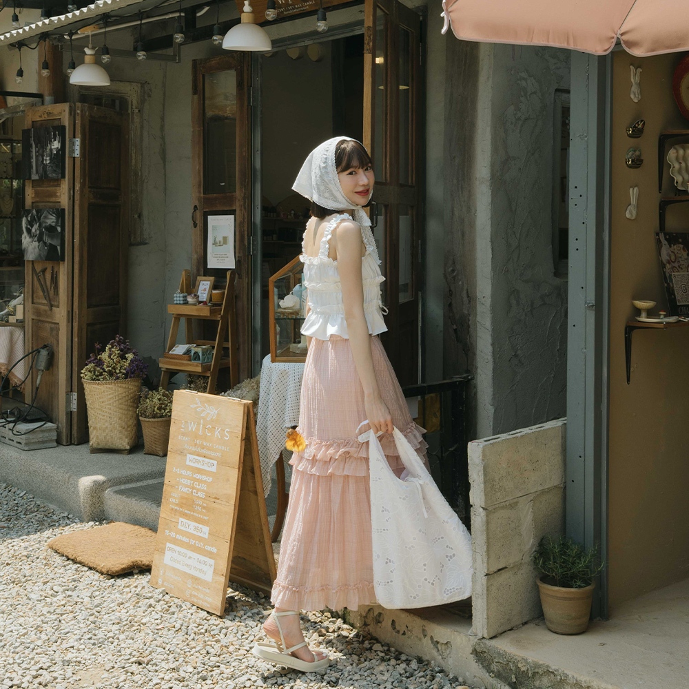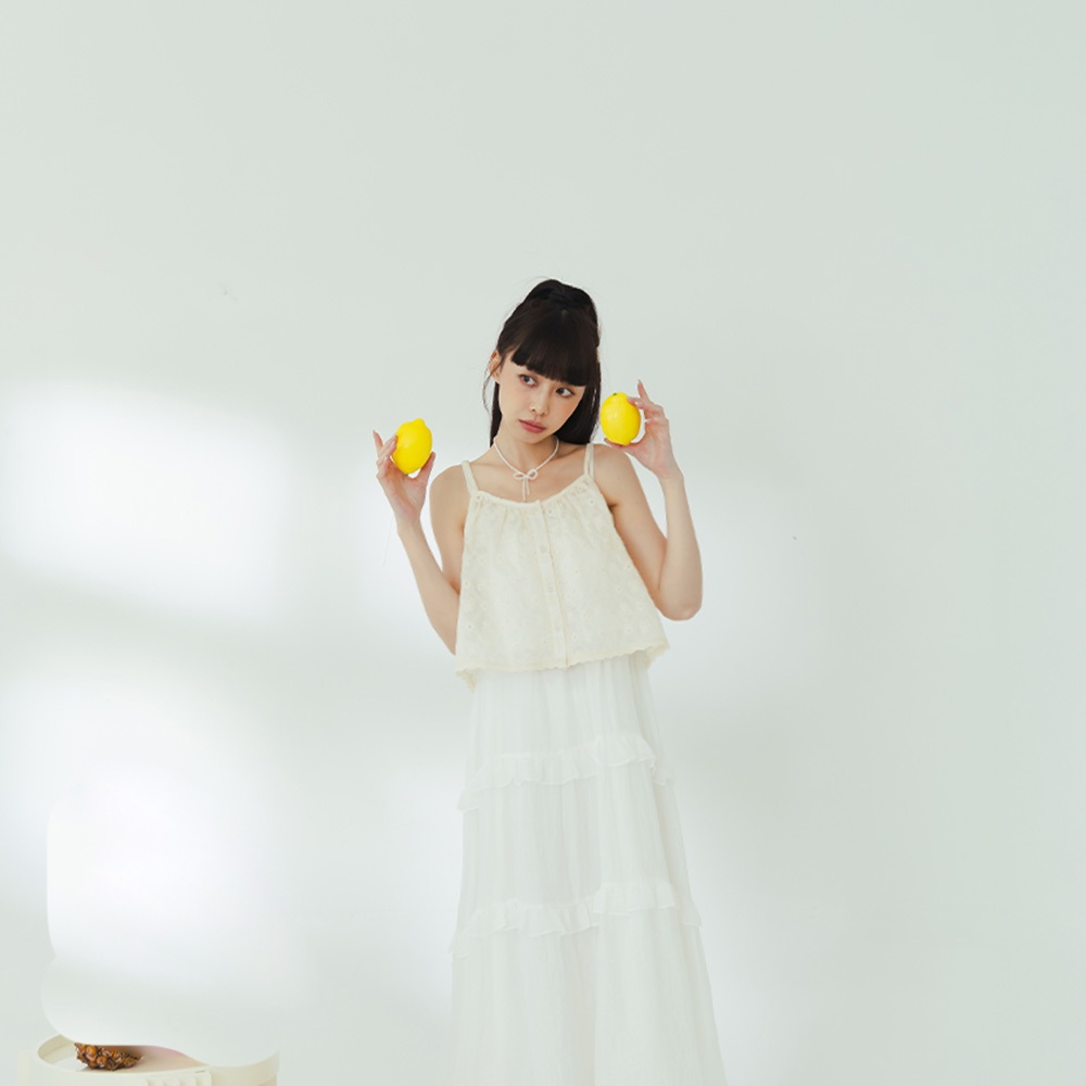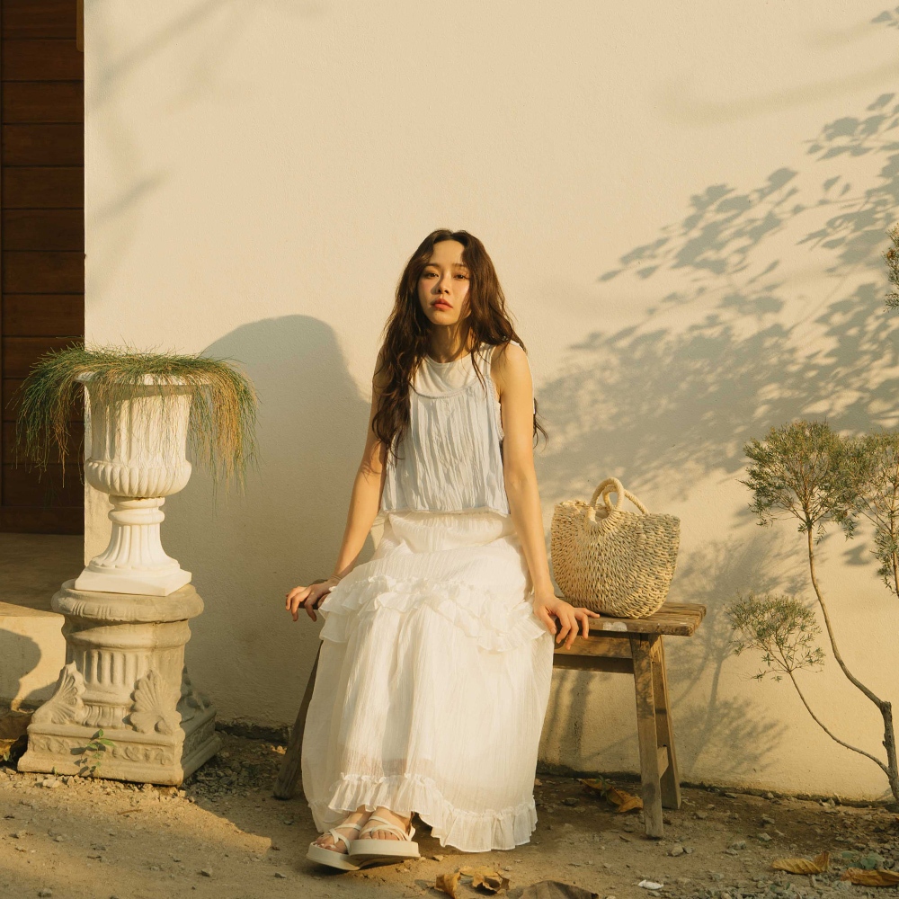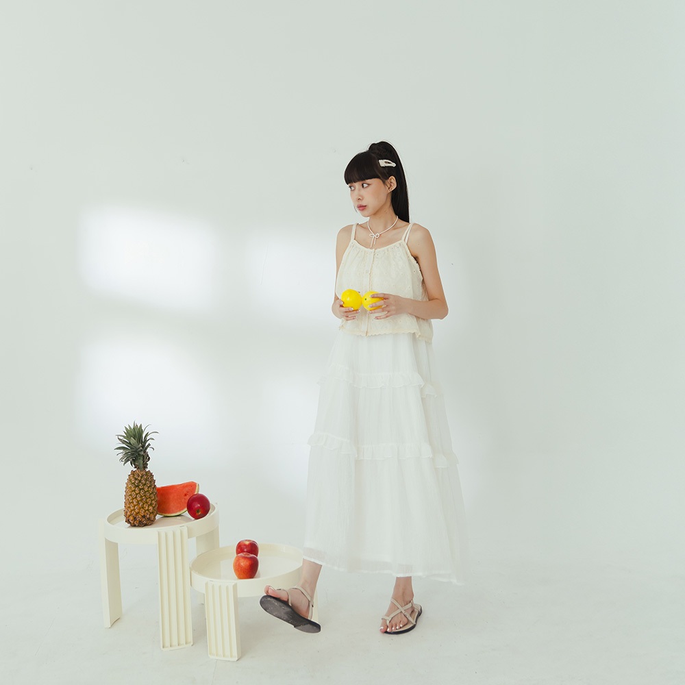 QUEENSHOP_ S 女裝 荷葉細褶蛋糕傘擺細肩長洋裝 兩色售 現+預 【01087097】白|咖啡QUEENSHOP