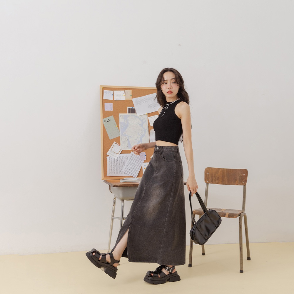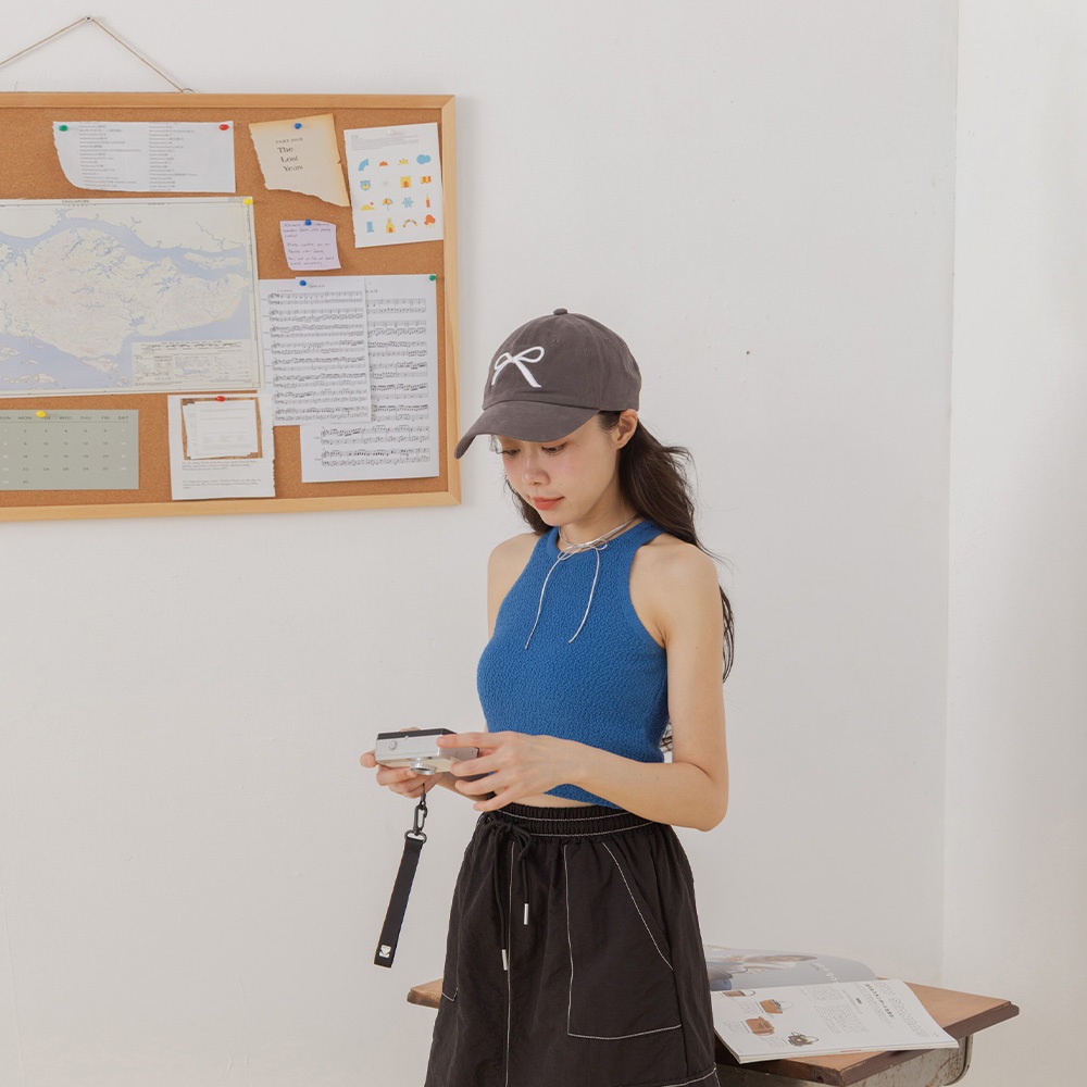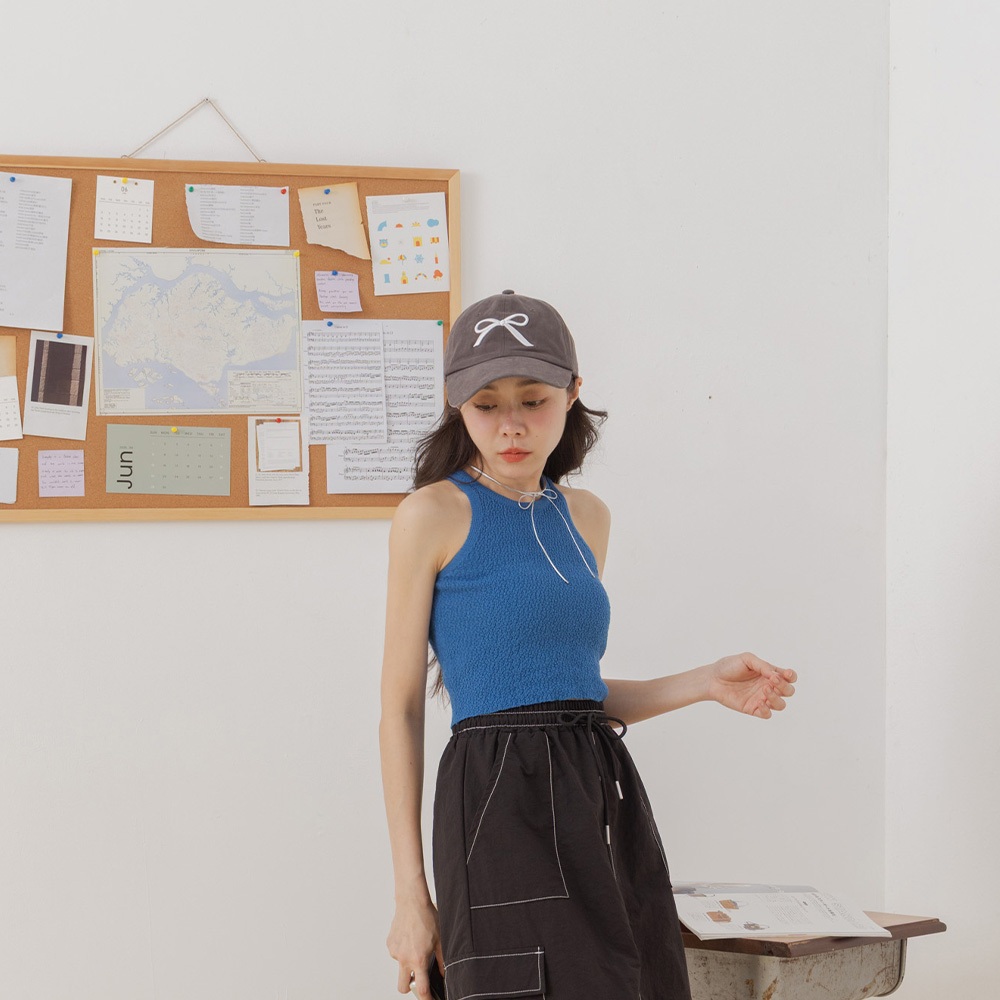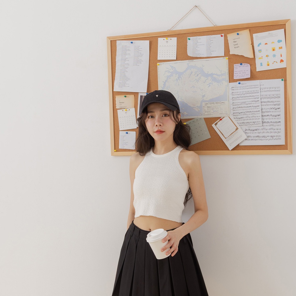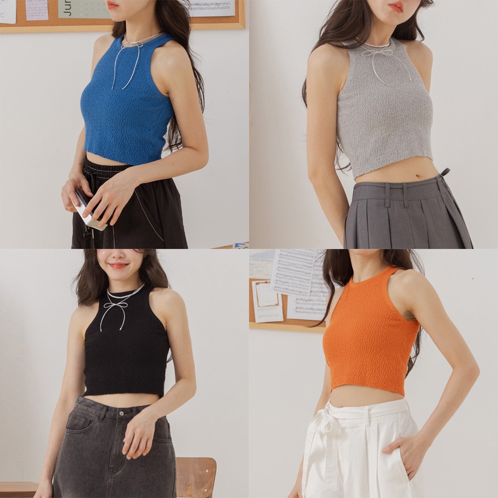 QUEENSHOP_ S 女裝 針織紋理設計削肩短版背心 五色售 現+預 【01150431】黑|灰|白|藍|橘Tanks & CamisolesQUEENSHOP