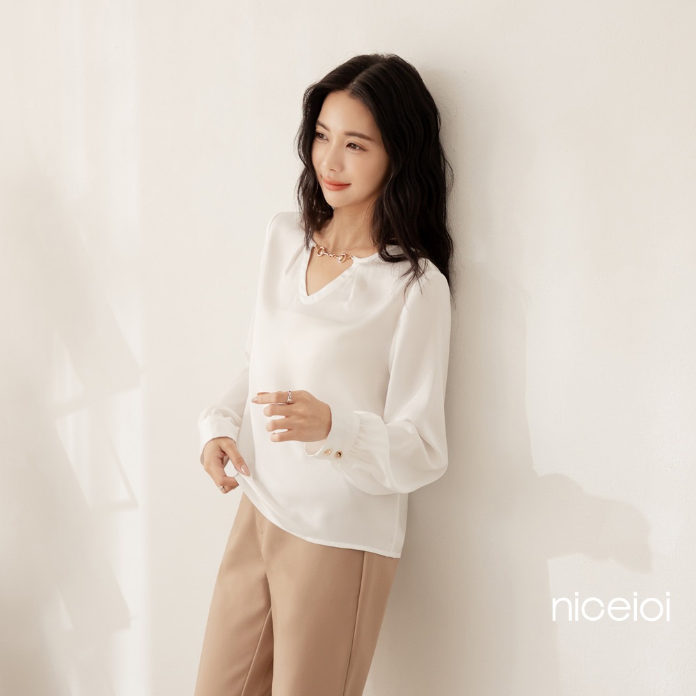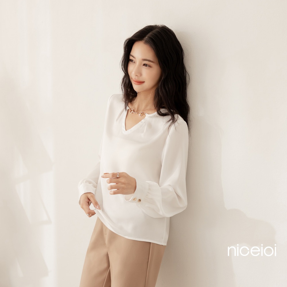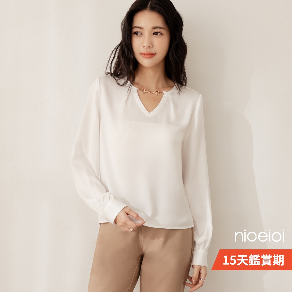 niceioi【特惠】優雅不失正式霧光感飾帶上衣 女裝白,S|白,M|白,L|白,XLShirts & Blousesniceioi 官方旗艦店