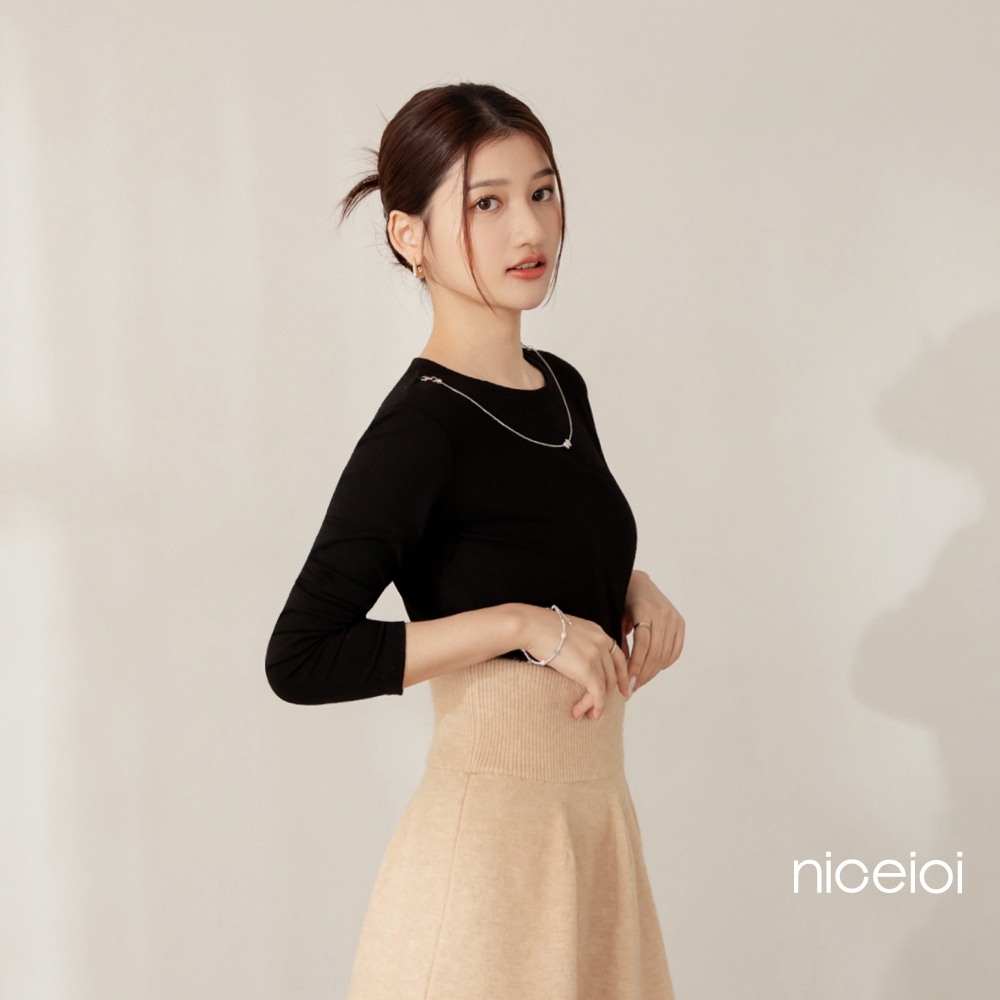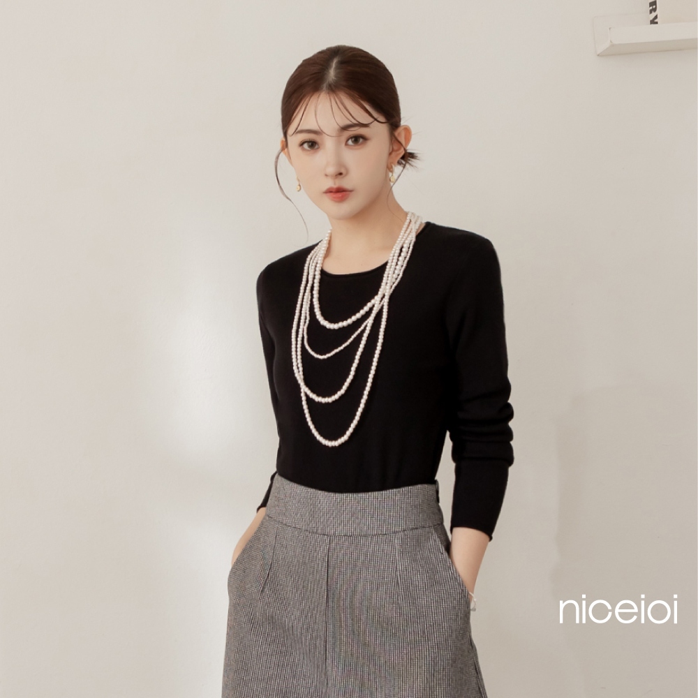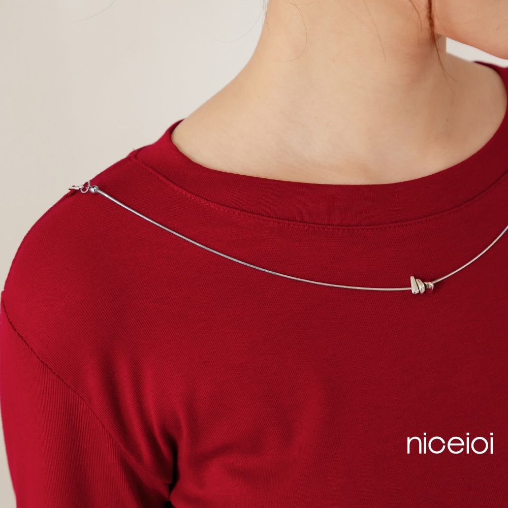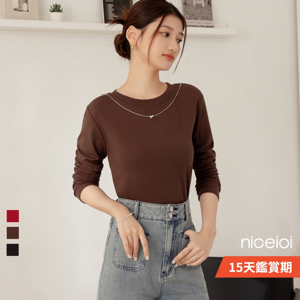 niceioi【特惠】小碎石項鍊側抓皺顯瘦上衣 (共3色) 女裝黑,F|紅,F|咖,FT-shirtsniceioi 官方旗艦店