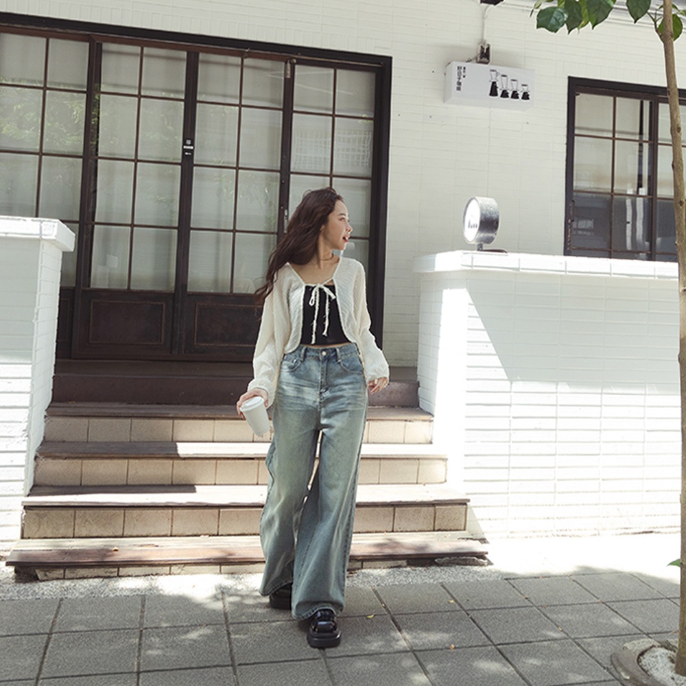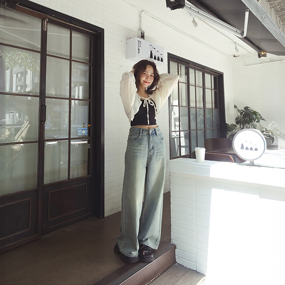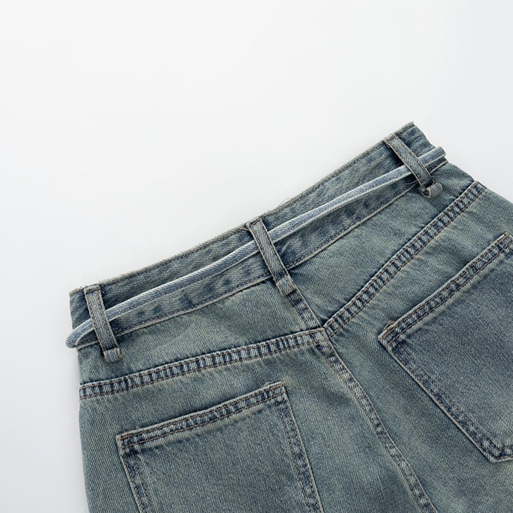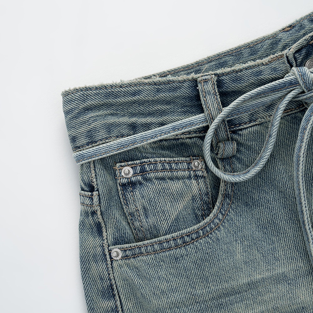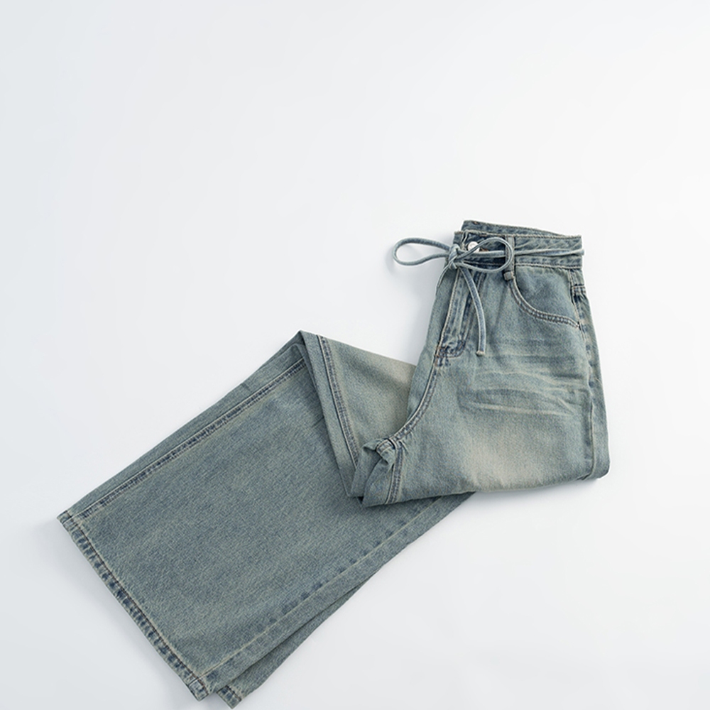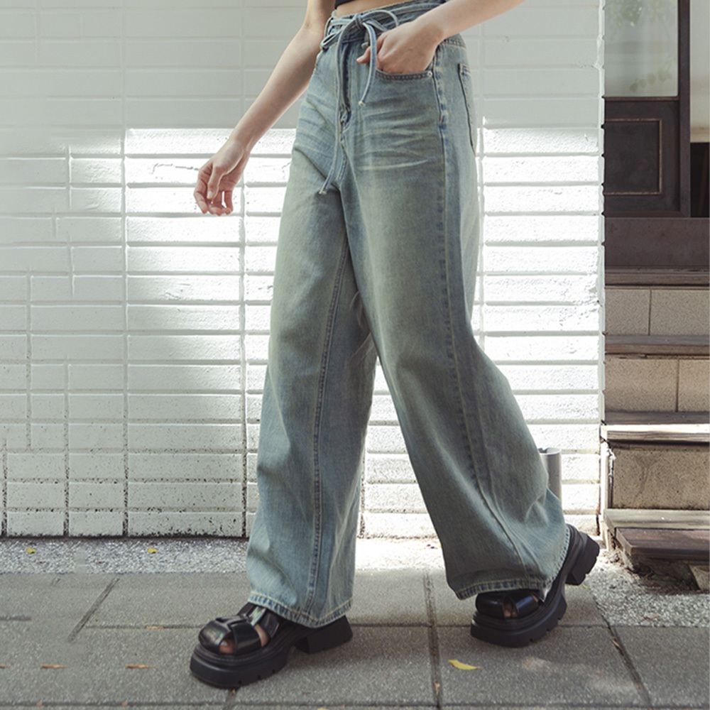 QUEENSHOP_ S 女裝 附抽繩綁帶水洗牛仔褲褲 S/M/L 現+預 【04011825】S|M|LQUEENSHOP