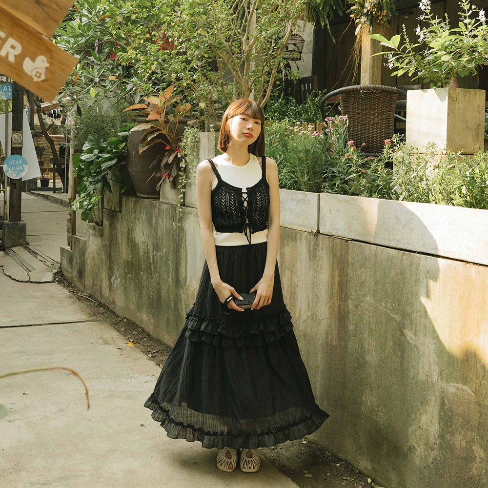 QUEENSHOP_ S 女裝 皺皺細褶荷葉造型蛋糕長裙 三色售 現+預【03021596】黑|白|粉QUEENSHOP