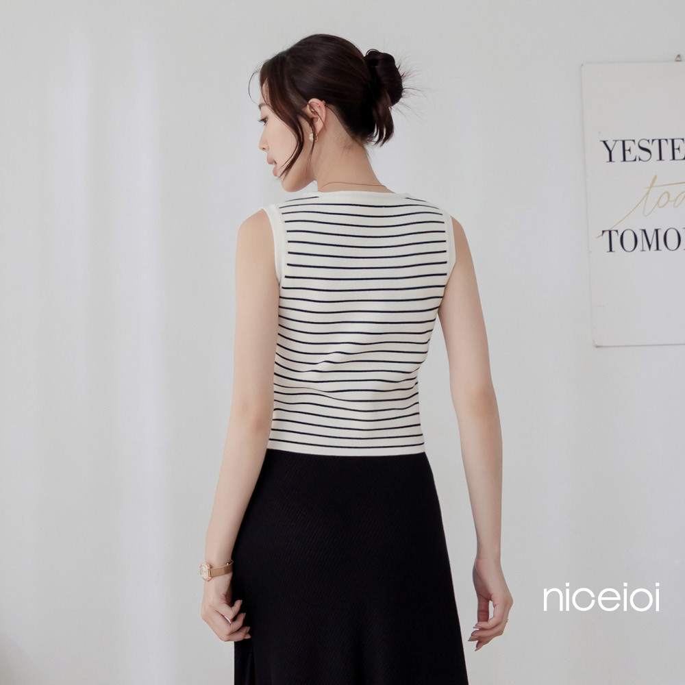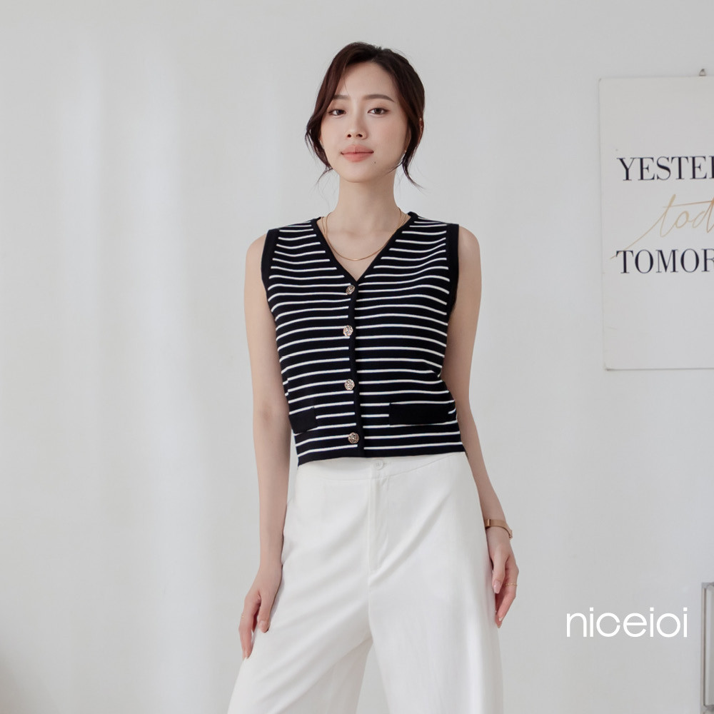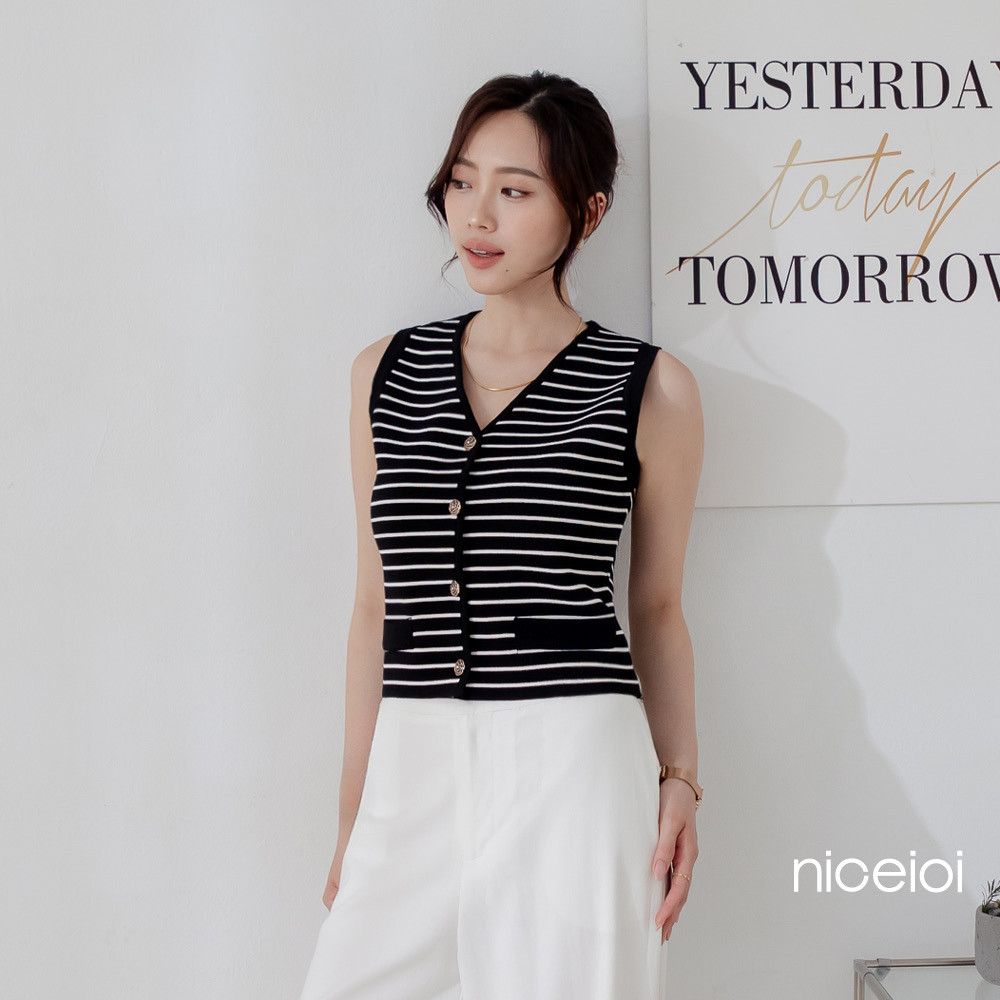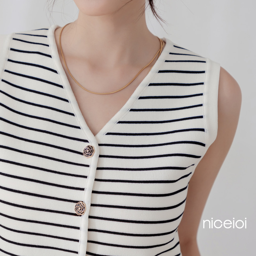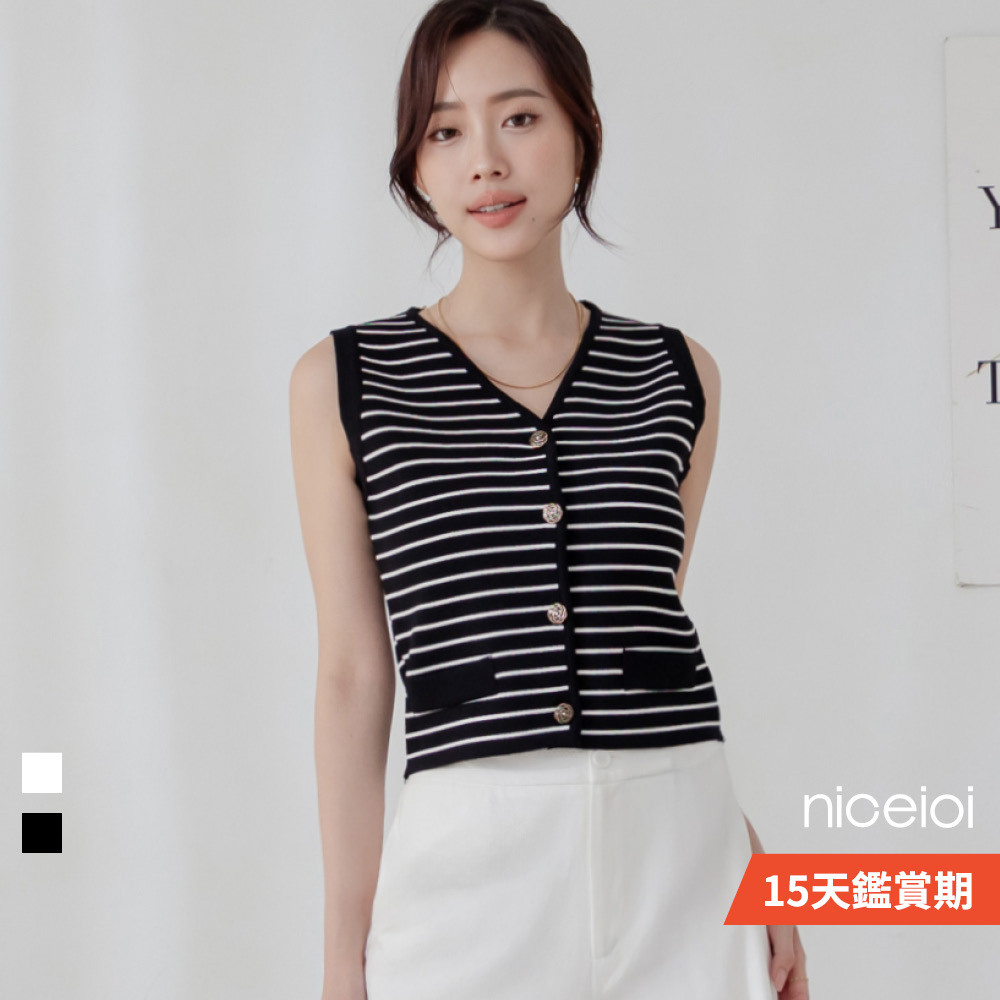niceioi 夏日輕熟山茶花扣針織背心 (共2色) 女裝黑,F|白,FOthersniceioi 官方旗艦店