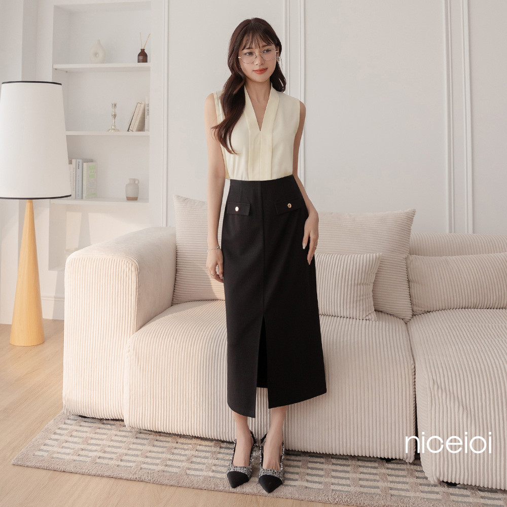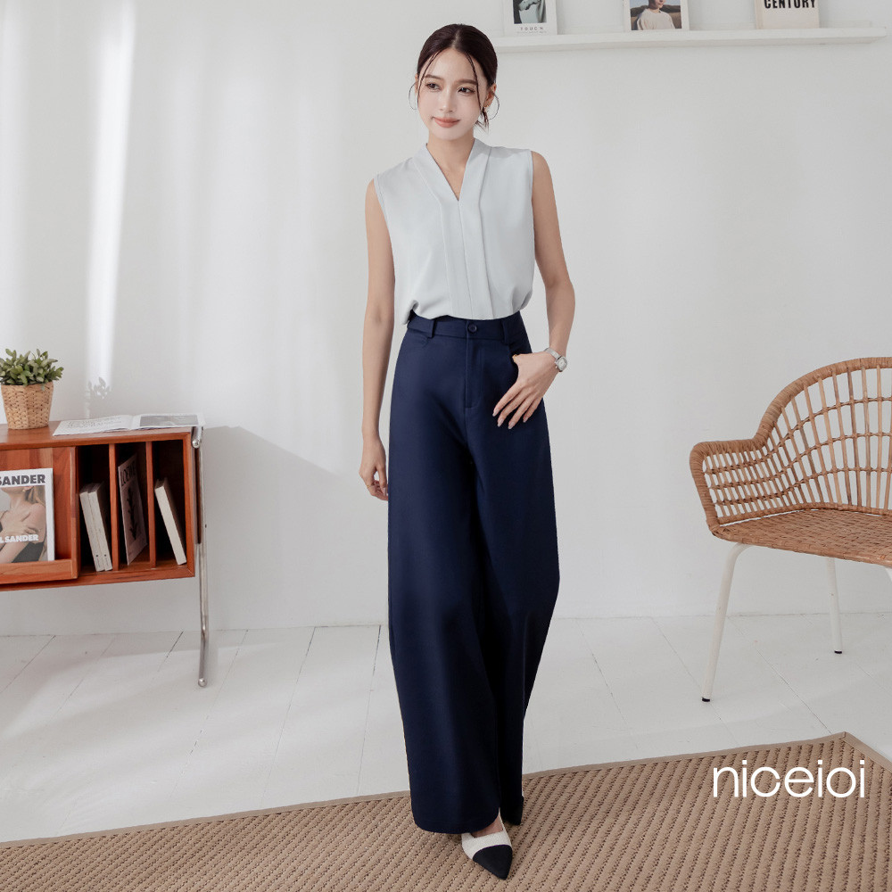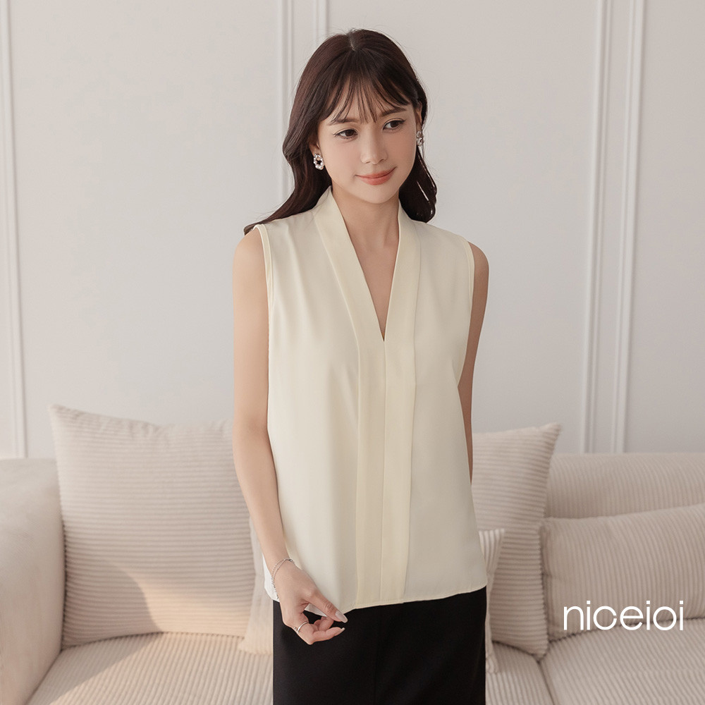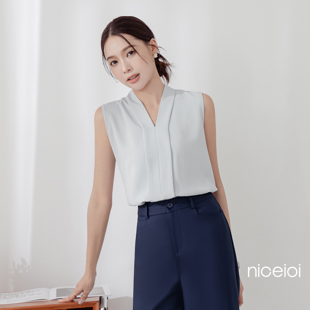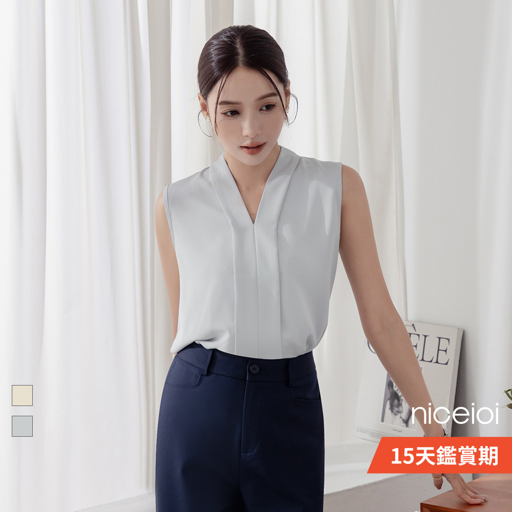 niceioi 巴黎知性美V領雪紡背心 (共2色) 女裝米,F|藍,FOthersniceioi 官方旗艦店