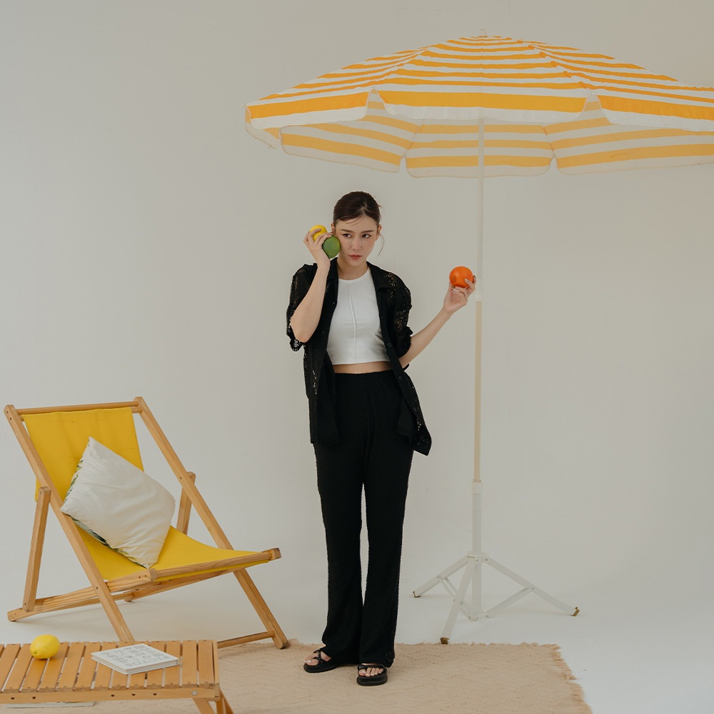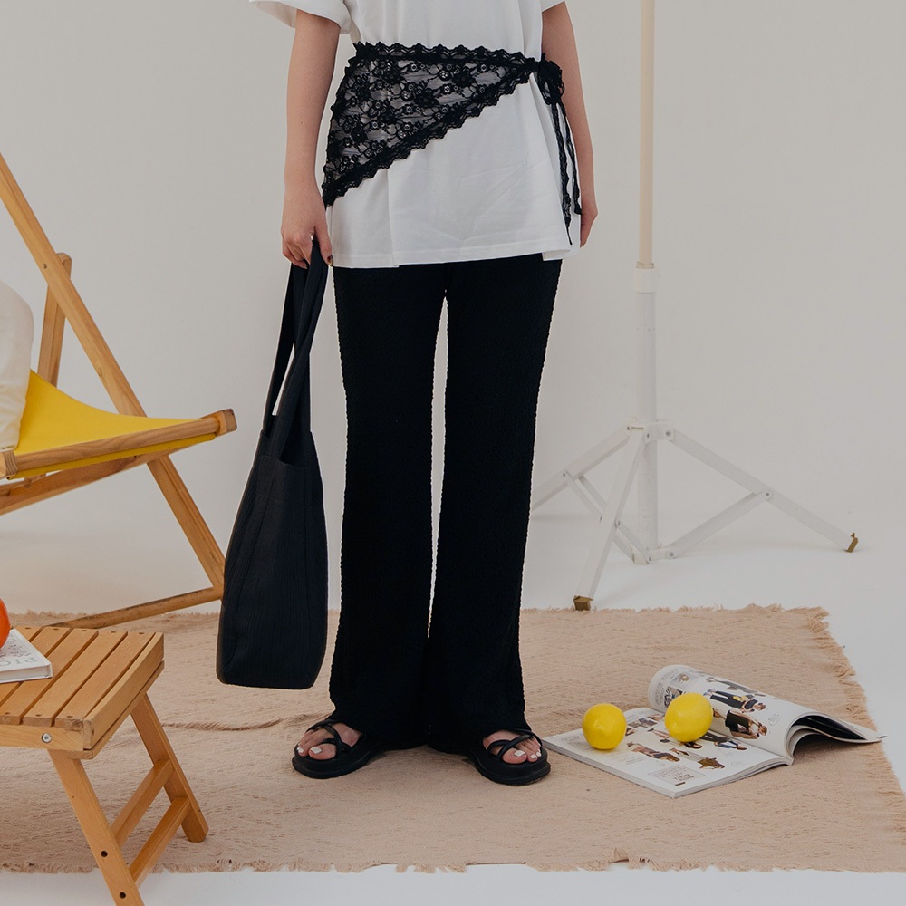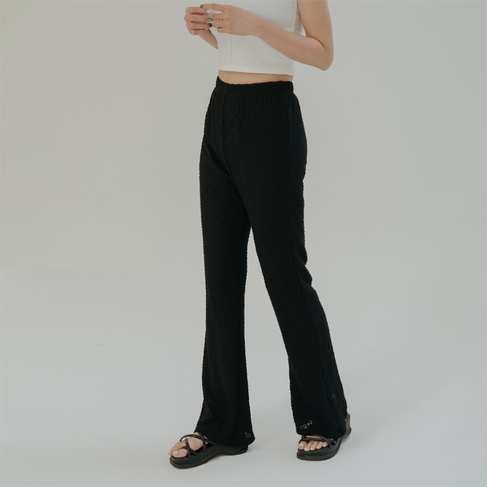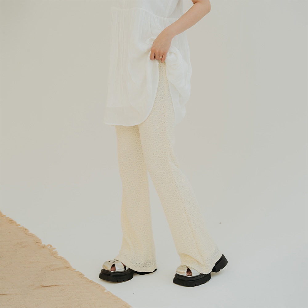 QUEENSHOP_ S 女裝 立體緹花造型喇叭長褲 兩色售 現+預 【04101902】黑|杏PantsQUEENSHOP