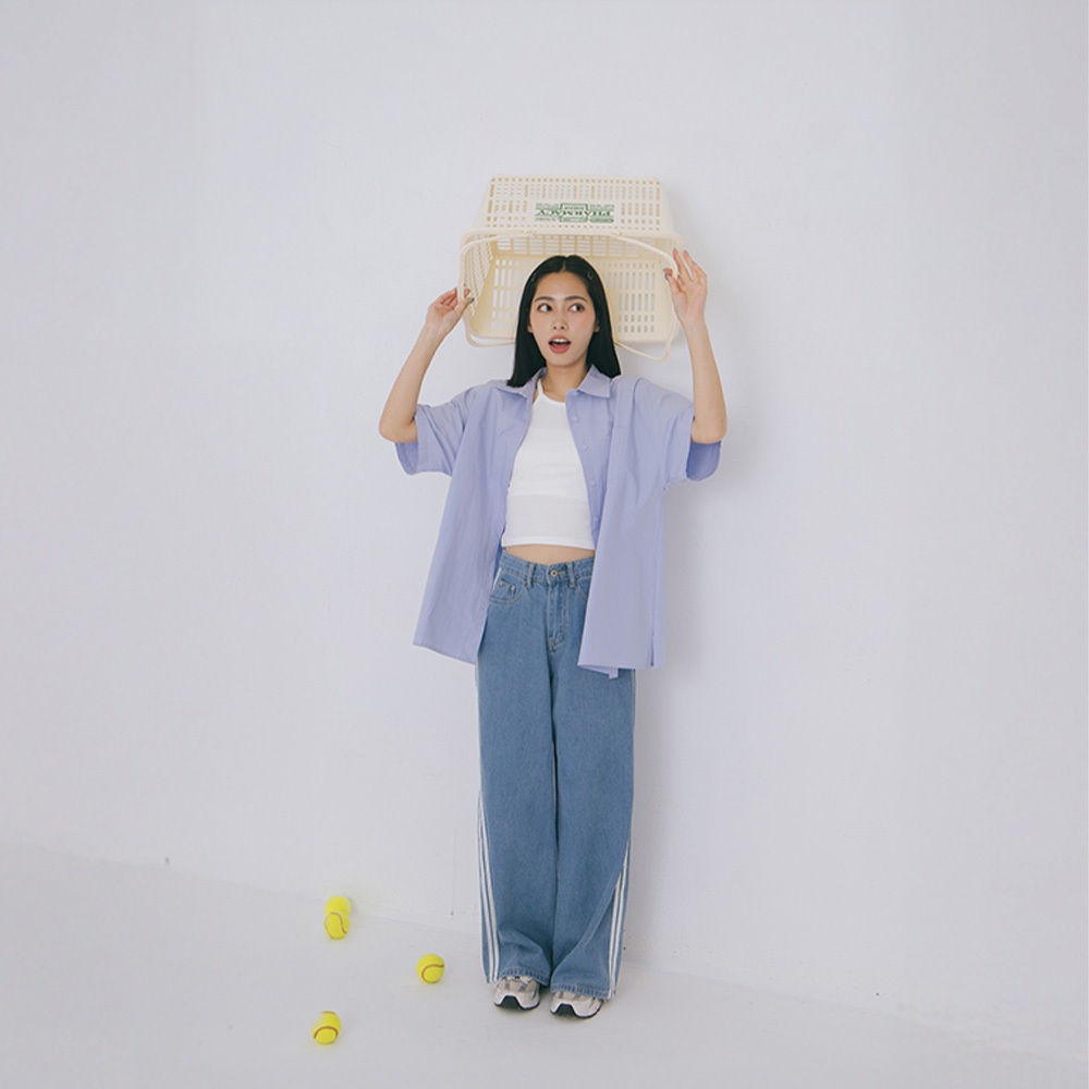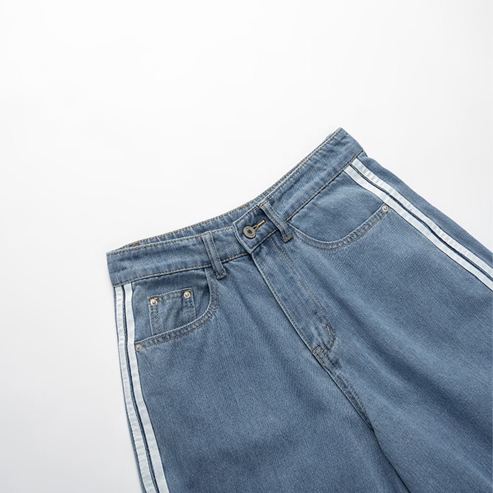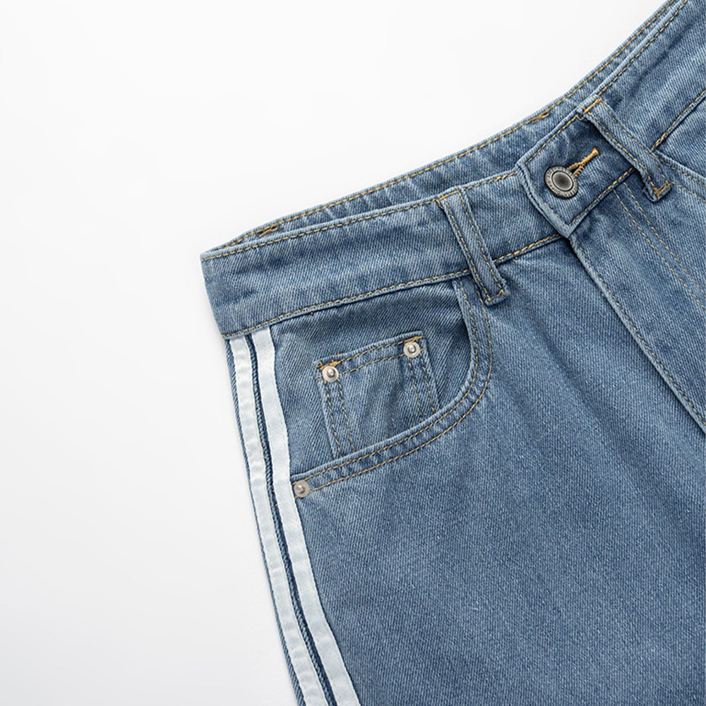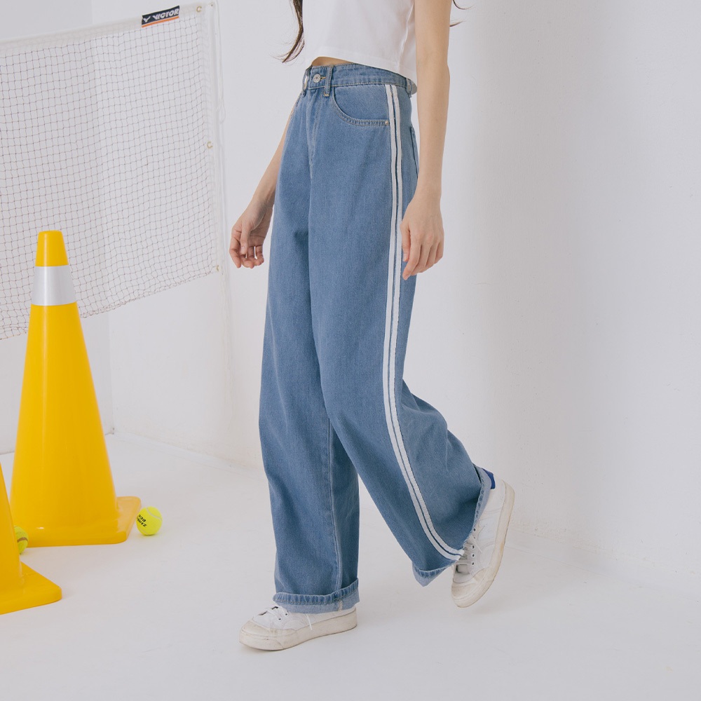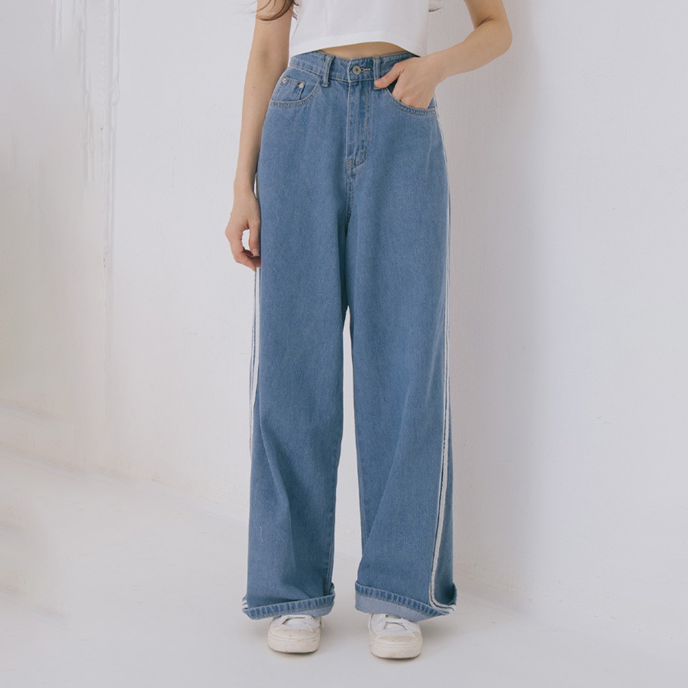 QUEENSHOP_ S 女裝 側撞色織帶設計牛仔長褲 S/M/L 現+預 【04011808】S|M|LQUEENSHOP
