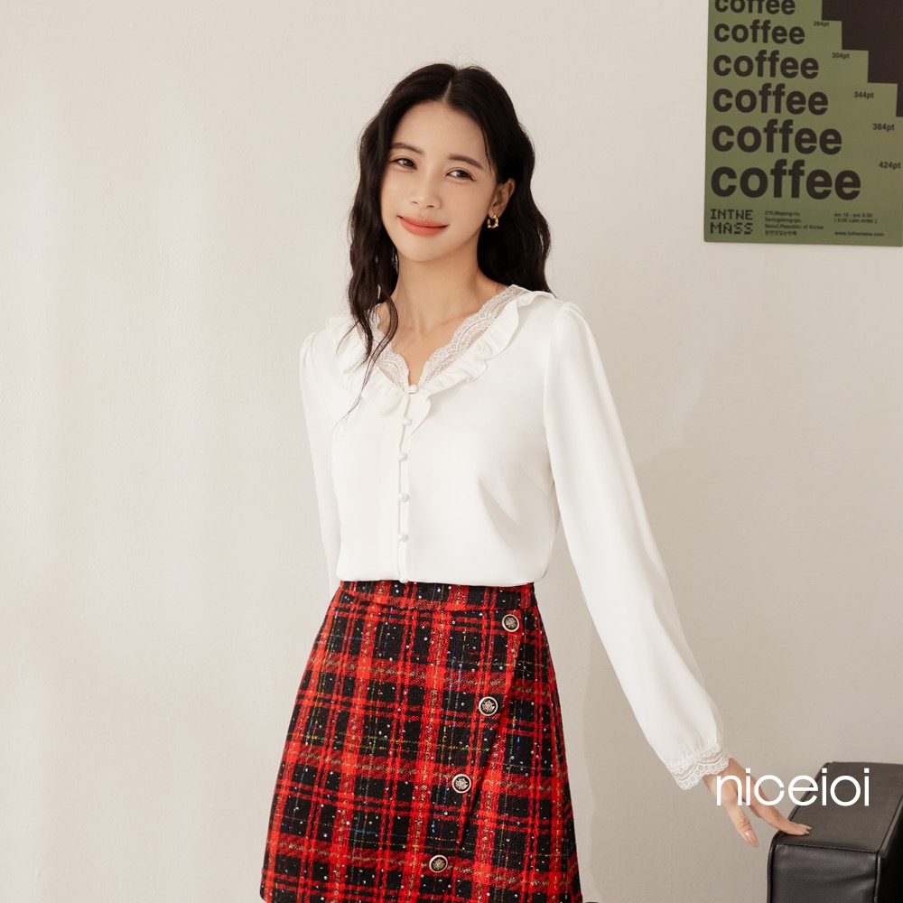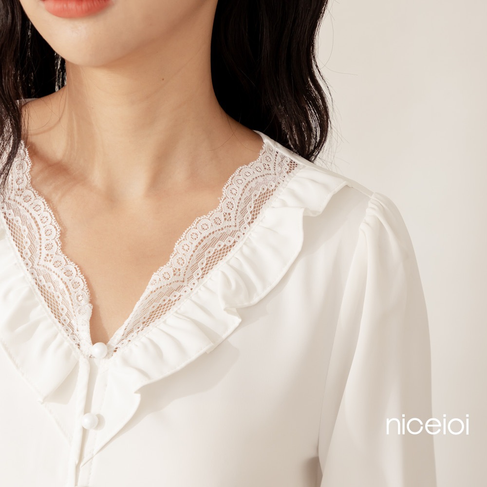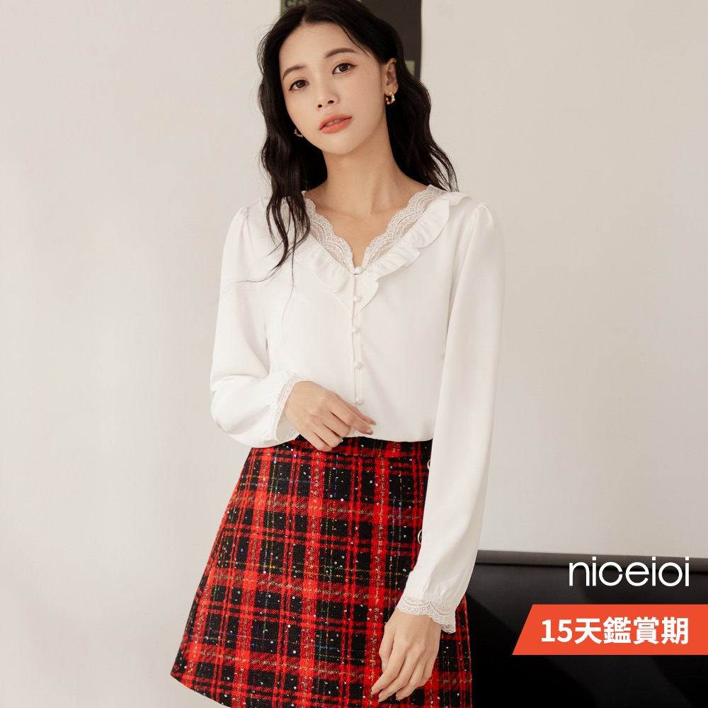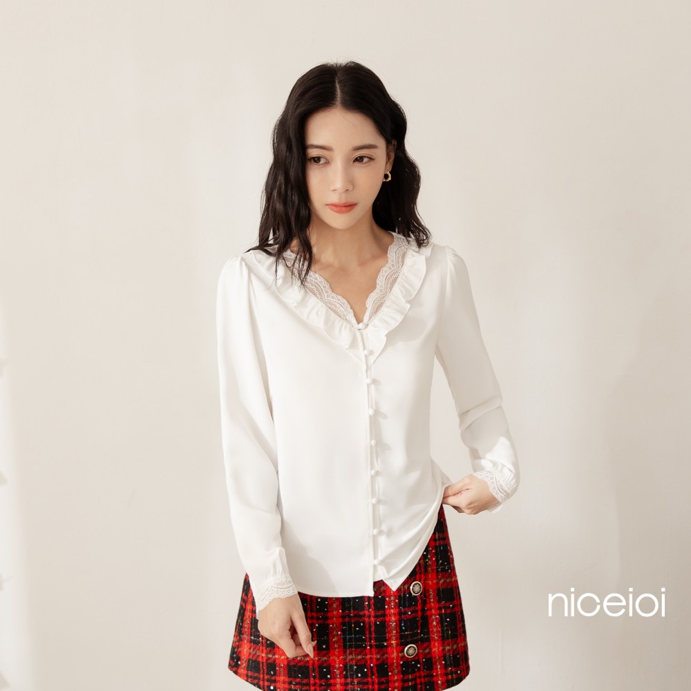 niceioi【特惠】御姊風荷葉領波浪蕾絲排釦襯衫上衣 女裝白,S|白,M|白,L|白,XLShirts & Blousesniceioi 官方旗艦店