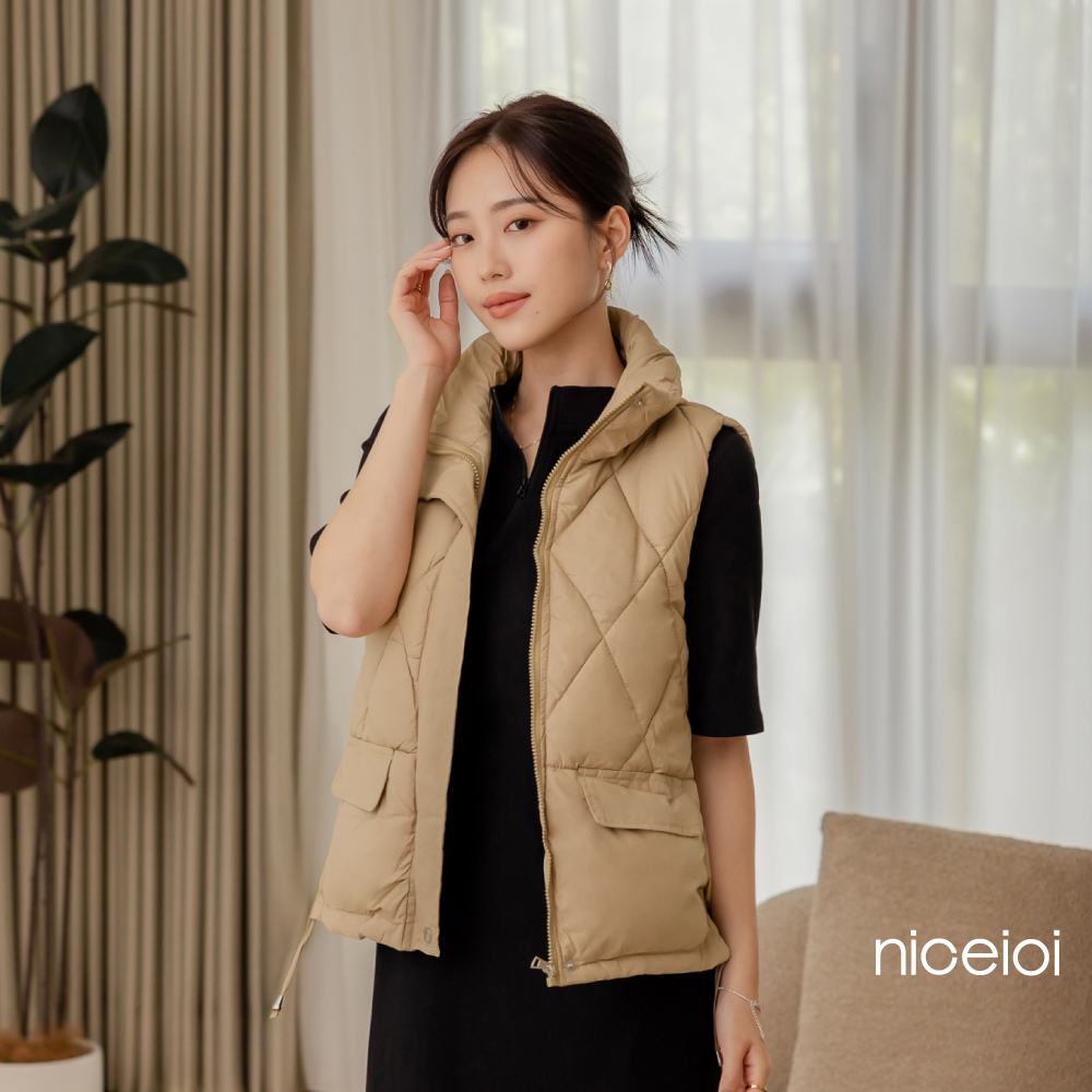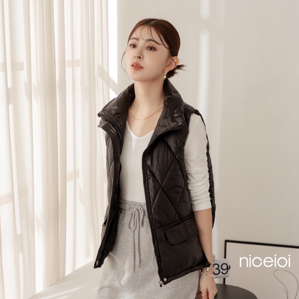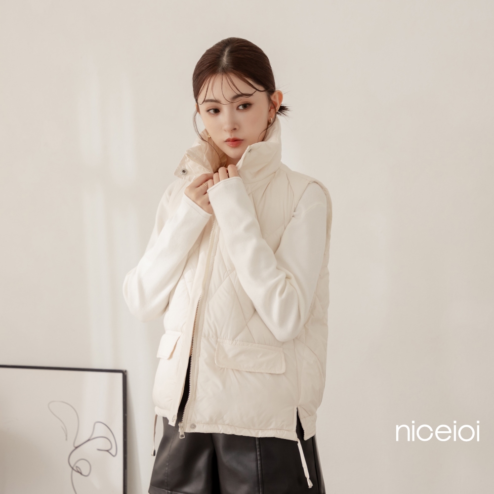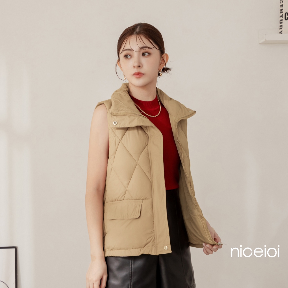 niceioi【特惠】鋪棉背心 無袖 立領背心 黑色 [暖呼呼菱格紋立領拉鍊鋪棉背心] 女裝立領鋪棉背心-白色,S|立領鋪棉背心-白色,M|立領鋪棉背心-黑色,S|立領鋪棉背心-黑色,M|立領鋪棉背心-卡其色,S|立領鋪棉背心-卡其色,MVestsniceioi 官方旗艦店