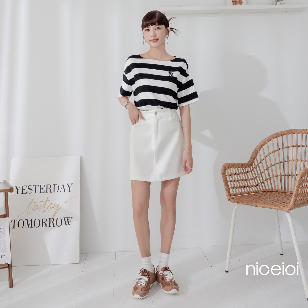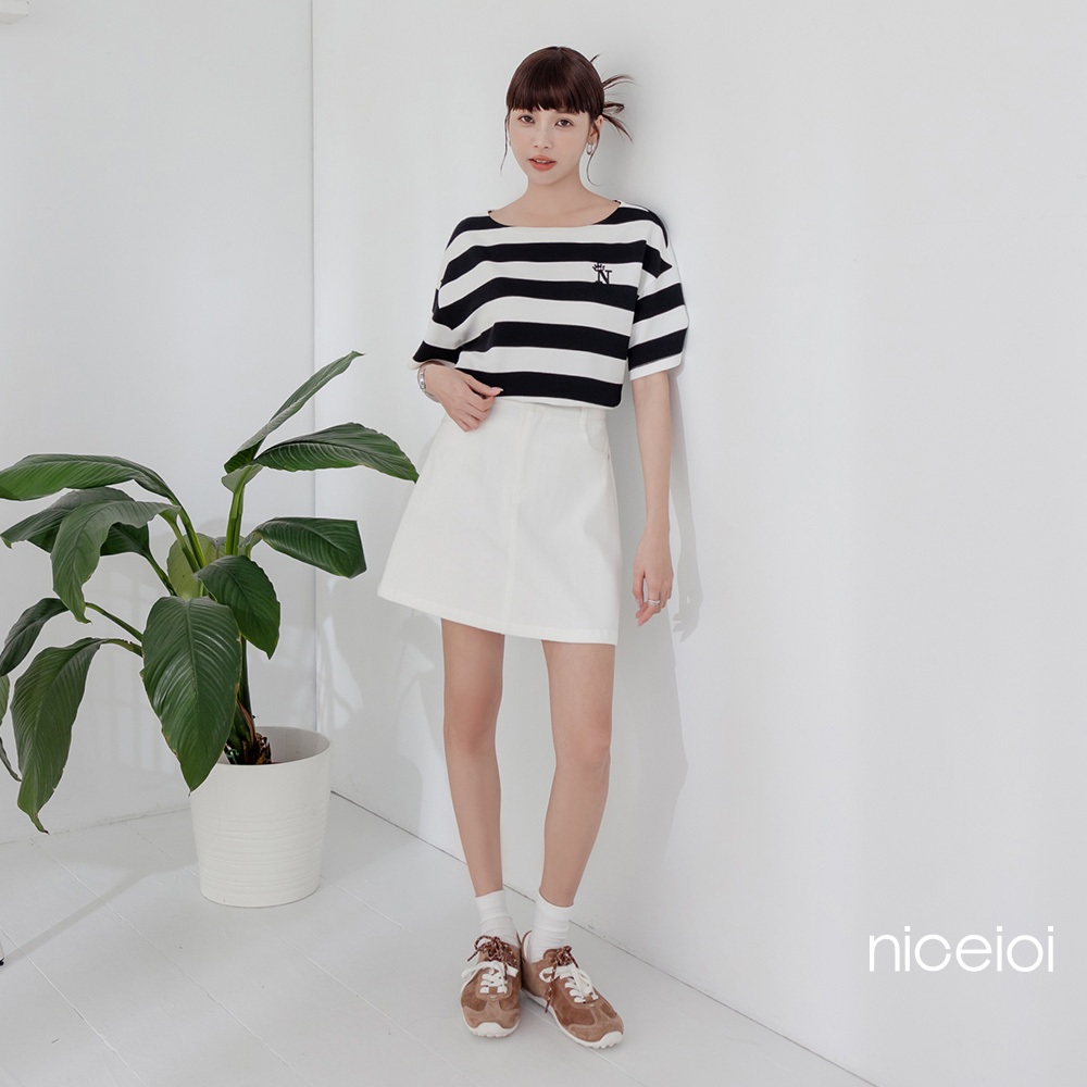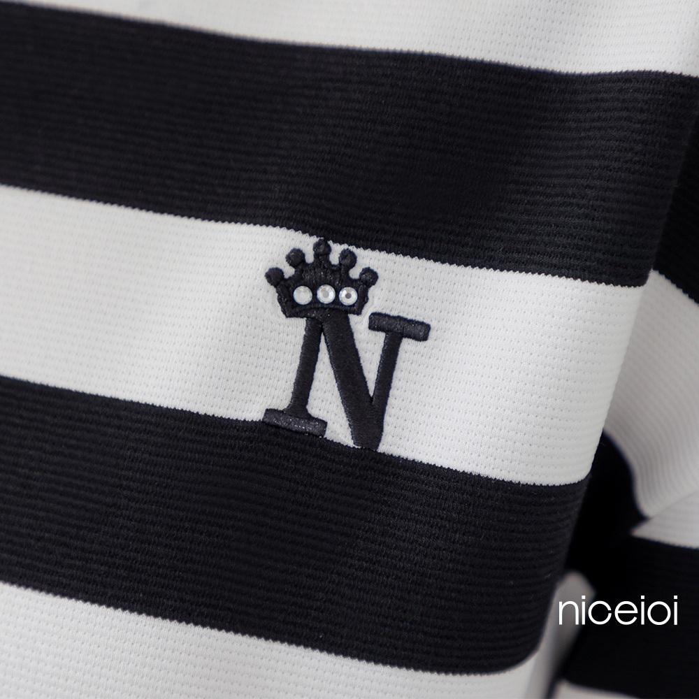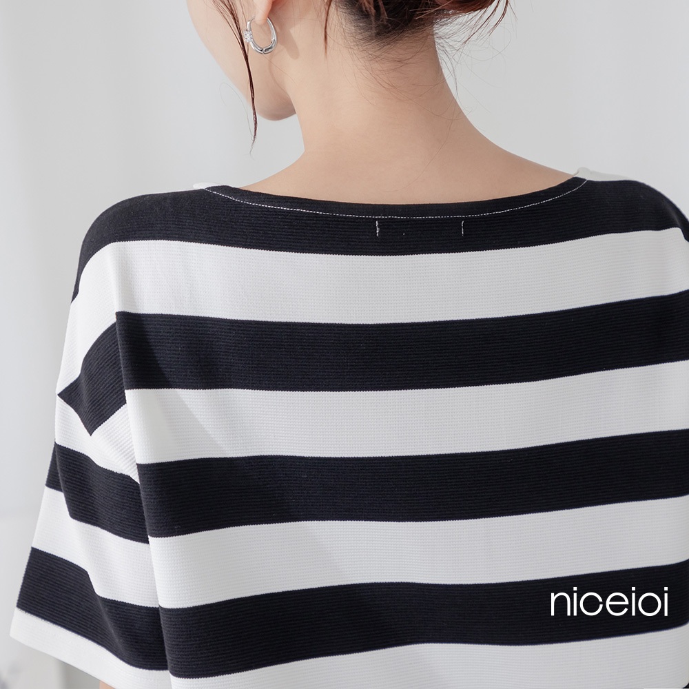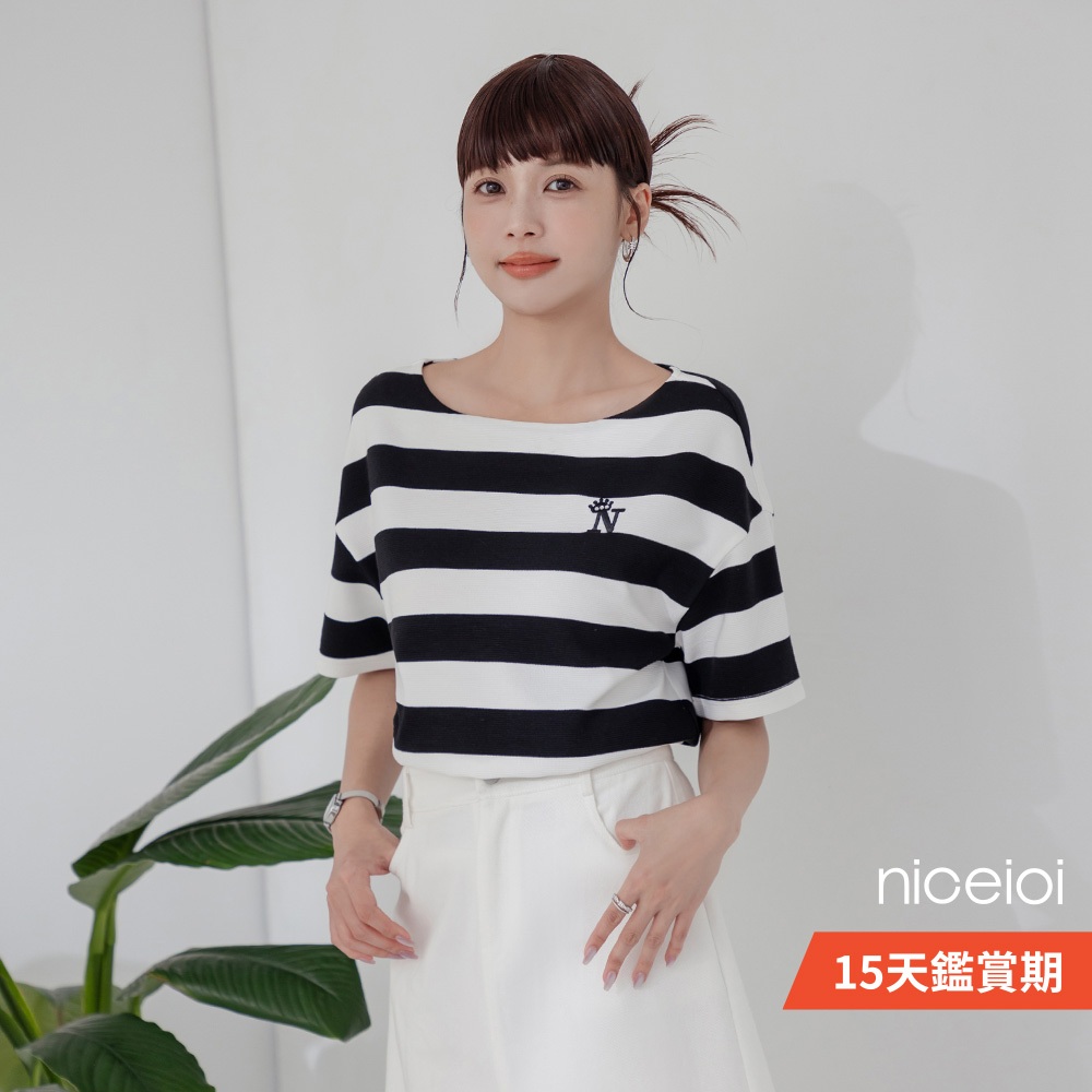 niceioi 巴黎漫步黑白條紋立體刺繡字母華夫格上衣 女裝條紋,S|條紋,M|條紋,L|條紋,XLT-shirtsniceioi 官方旗艦店