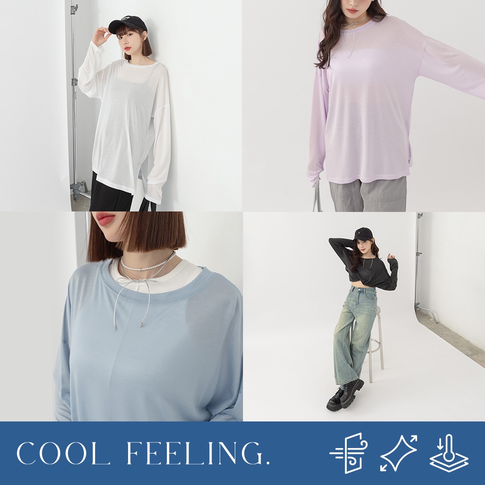 QUEENSHOP_ S 女裝 涼感微透膚防曬長袖上衣 五色售 現+預 【01098993】白|藍|綠|紫|深灰T-shirtsQUEENSHOP