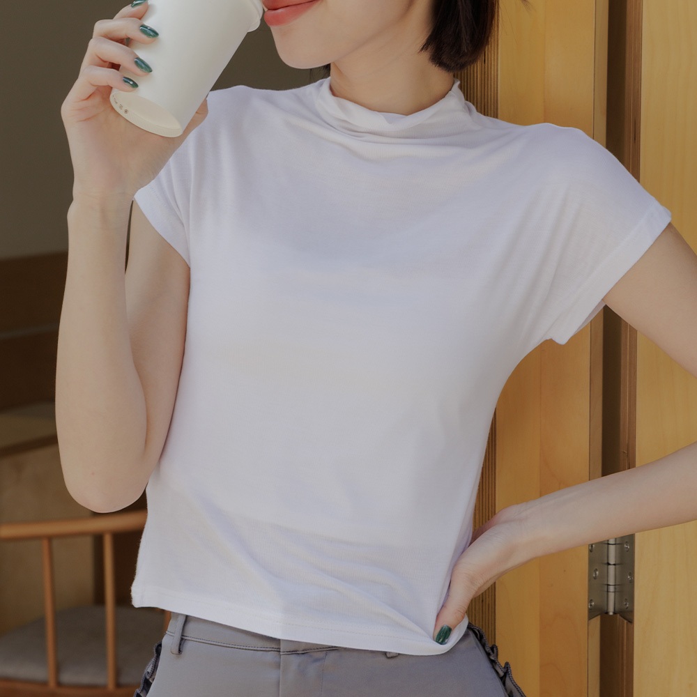 QUEENSHOP_ S 女裝 微高領設計素面短袖上衣 三色售 現+預 【01098970】黑|灰|白OthersQUEENSHOP