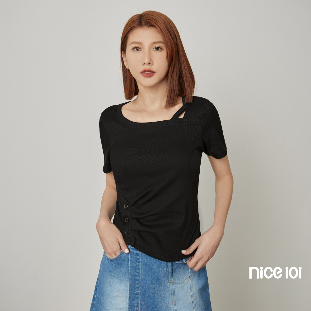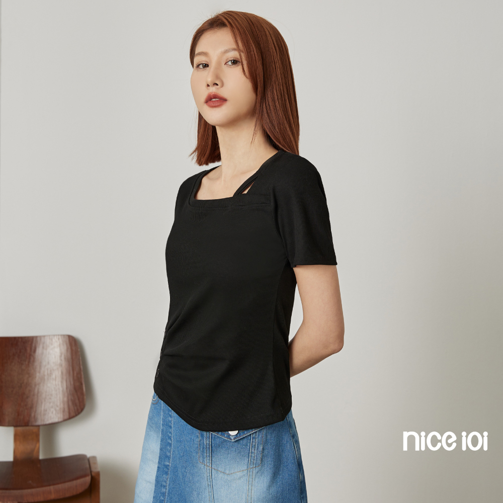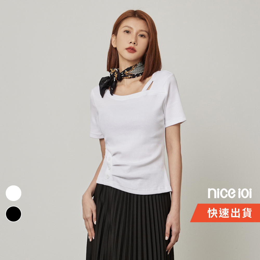 niceioi【特惠】彈性坑條造型領口棉質上衣 (共2色) U領上衣 短袖上衣 衣服 t恤 棉t 女裝白,S|白,M|黑,S|黑,MT-shirtsniceioi 官方旗艦店