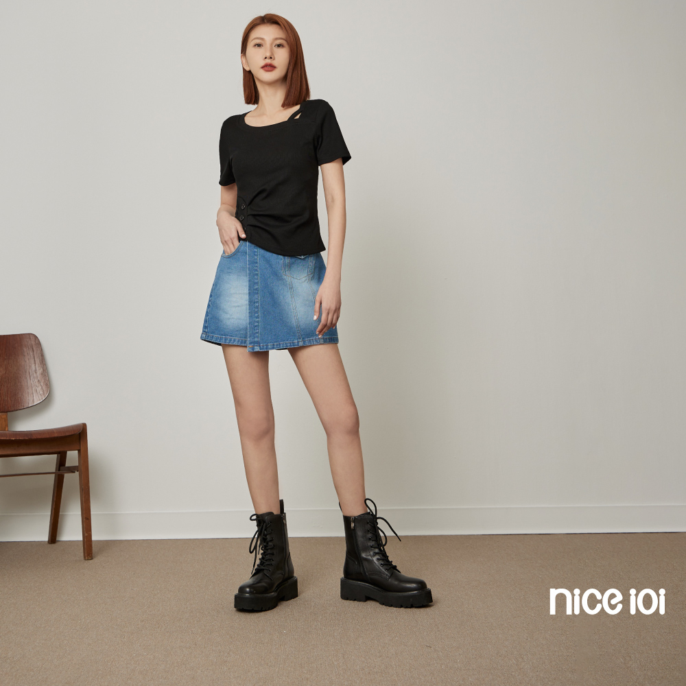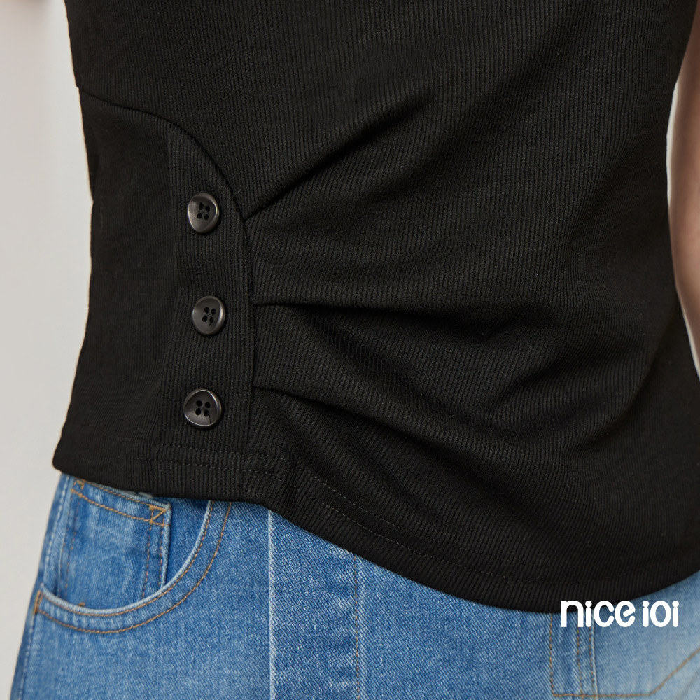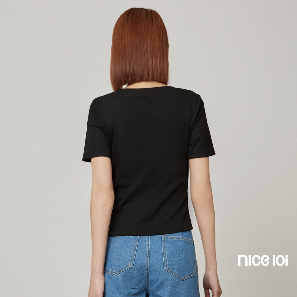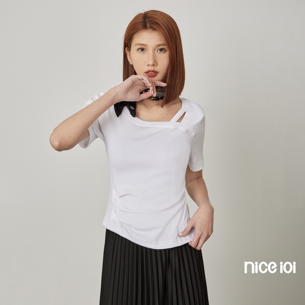 niceioi【特惠】彈性坑條造型領口棉質上衣 (共2色) U領上衣 短袖上衣 衣服 t恤 棉t 女裝白,S|白,M|黑,S|黑,MT-shirtsniceioi 官方旗艦店