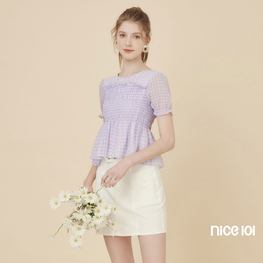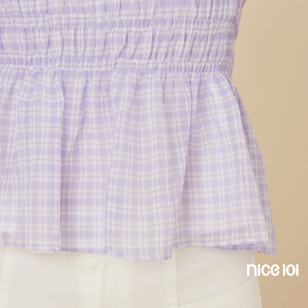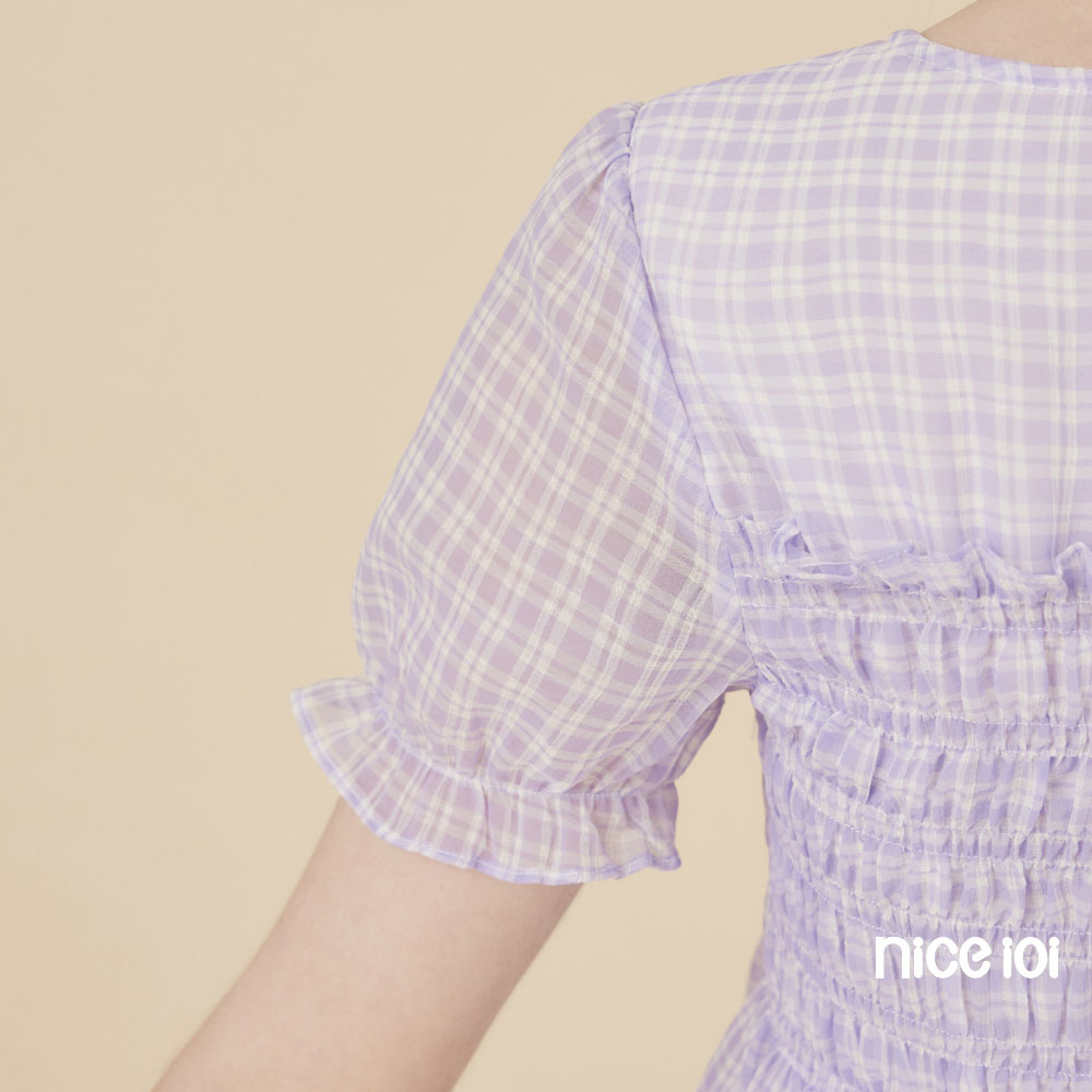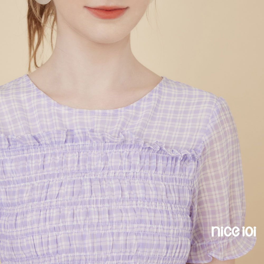 niceioi【特惠】甜美格紋荷葉雪紡上衣 女裝紫,S|紫,M|紫,L|紫,XLT-shirtsniceioi 官方旗艦店