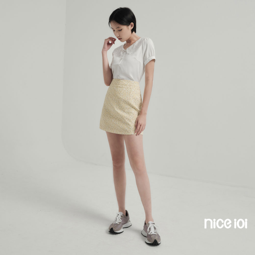 niceioi【特惠】輕甜花卉短裙 女裝黃,L|黃,S|黃,Mniceioi 官方旗艦店